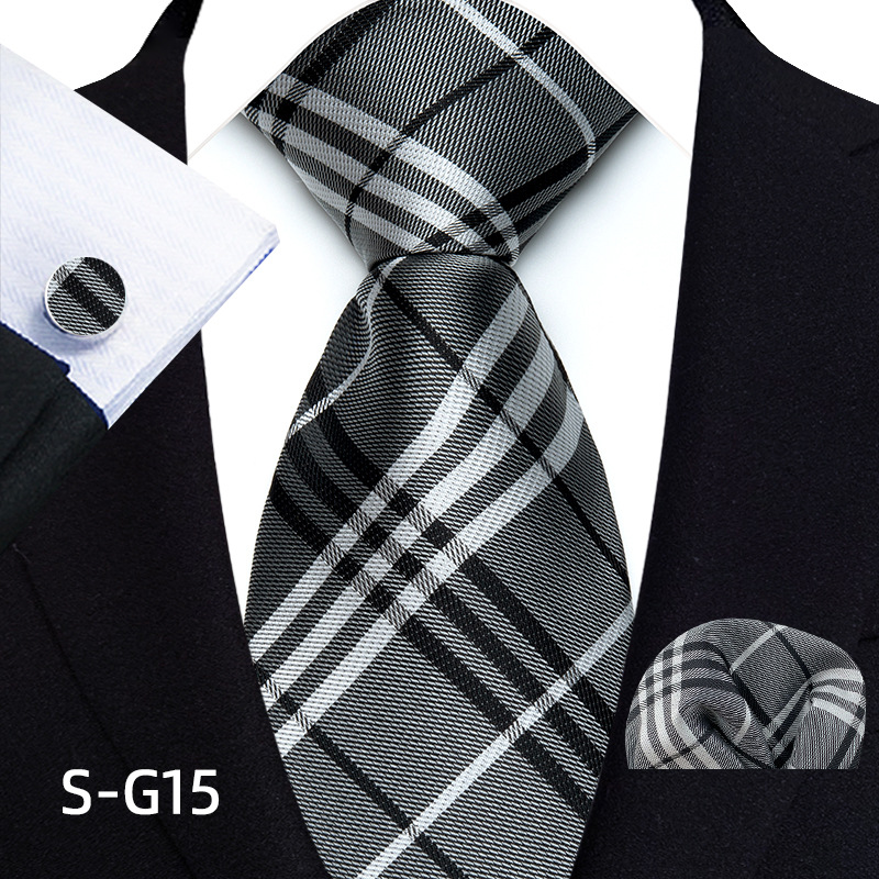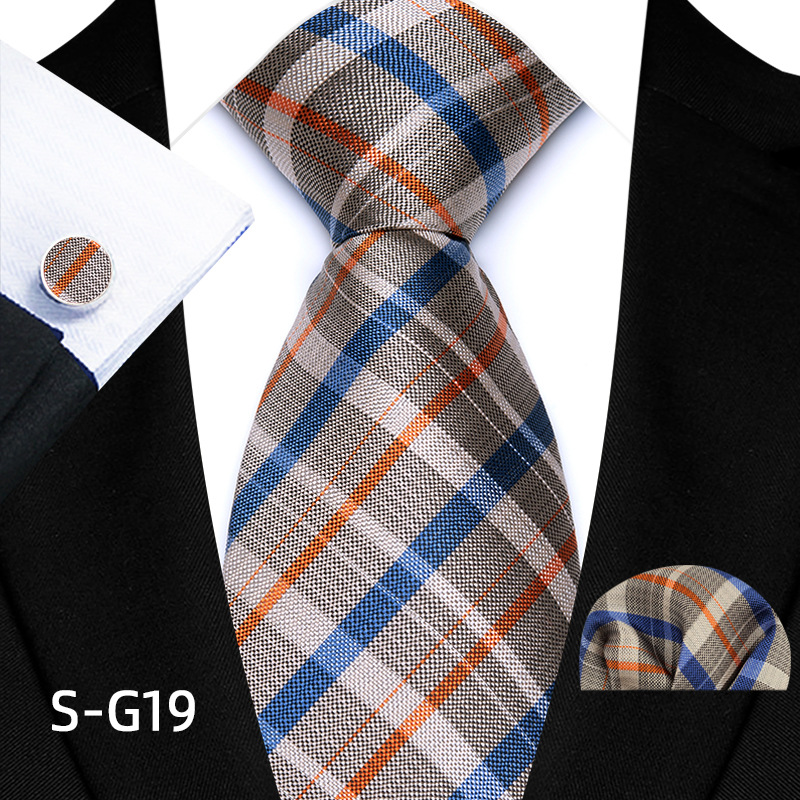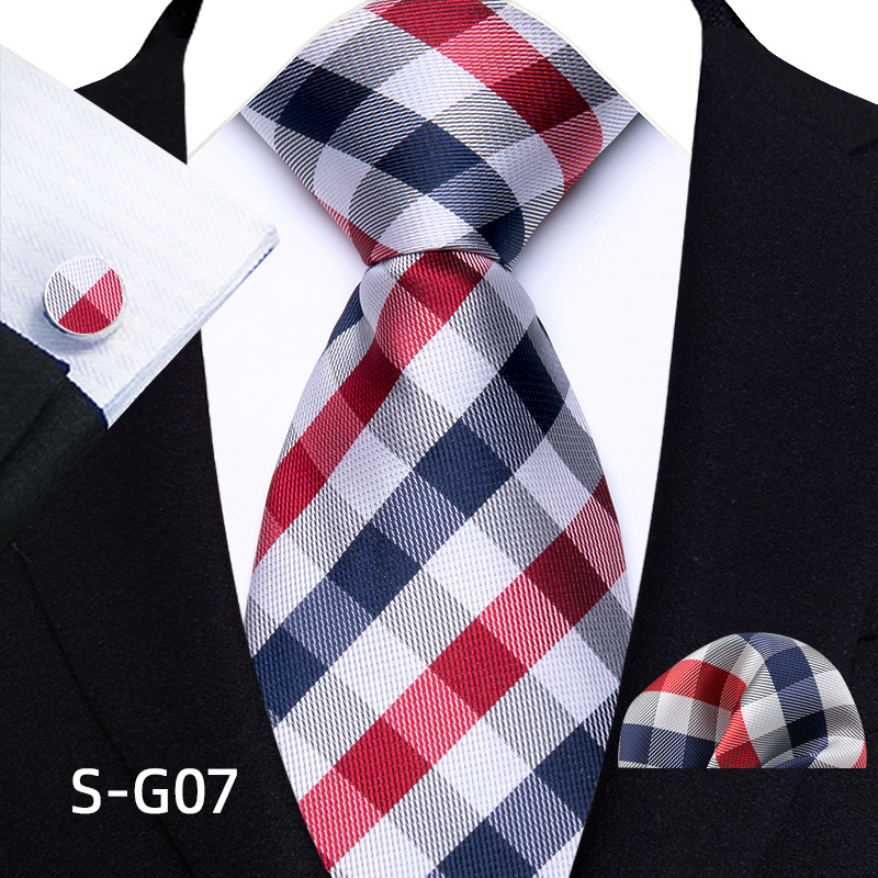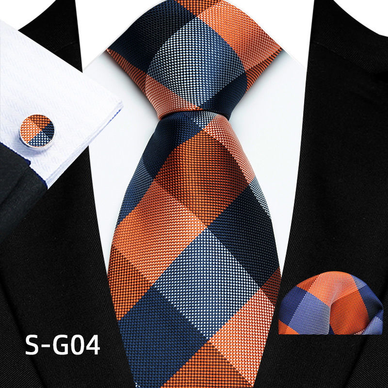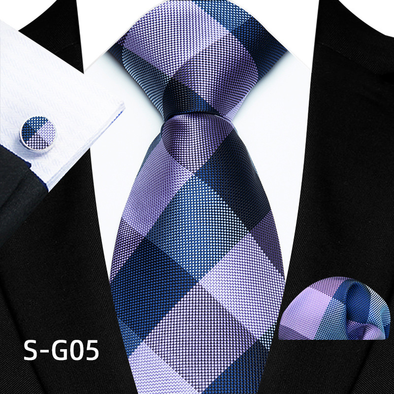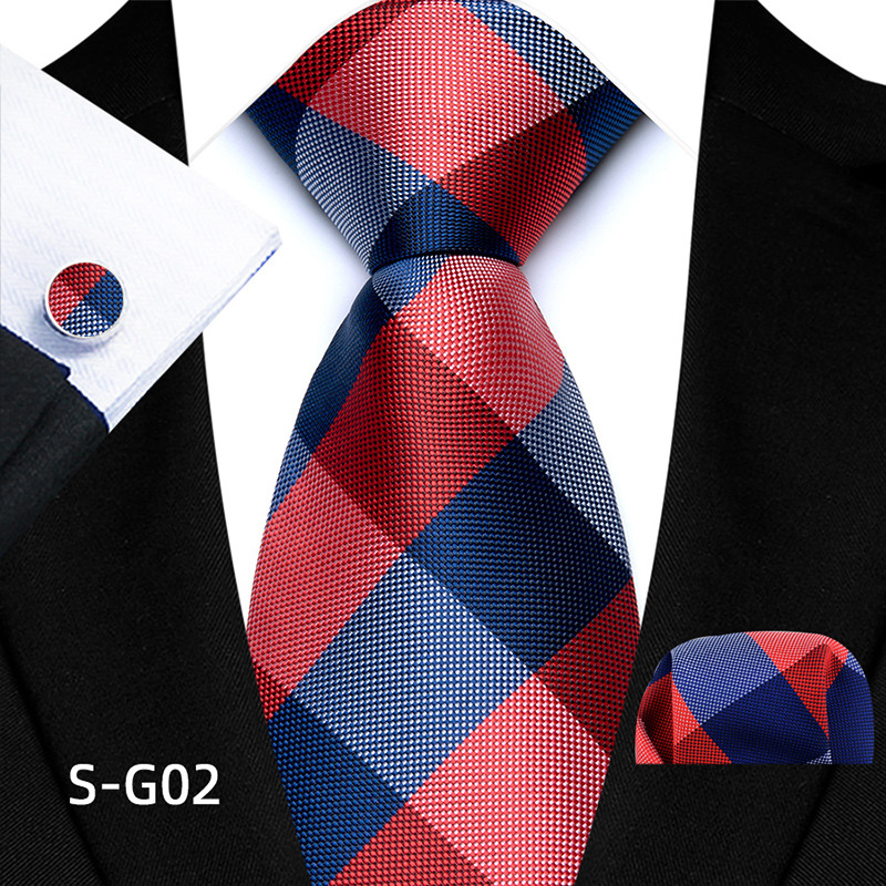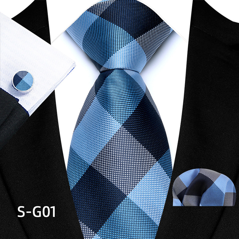 공장 현장 직접 공급 남성용 폴리에스터 8cm 패션 체크 무늬 영국식 넥타이 스퀘어 스카프 커프스 3피스 세트