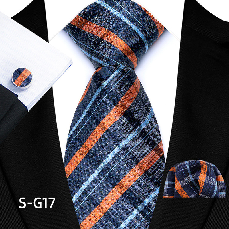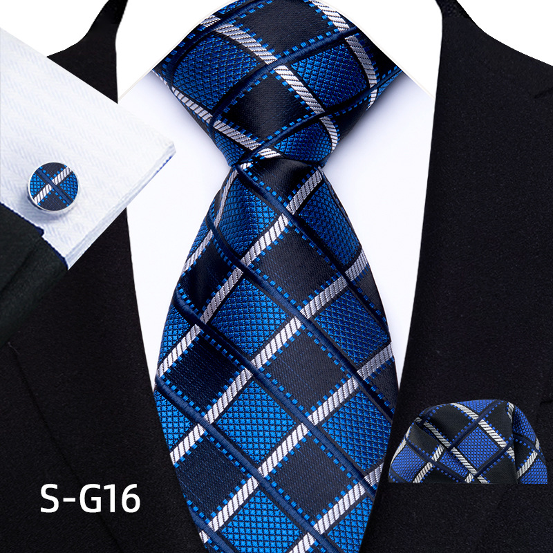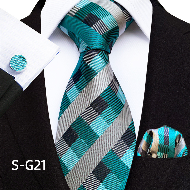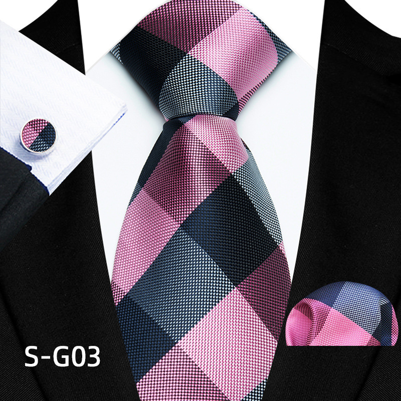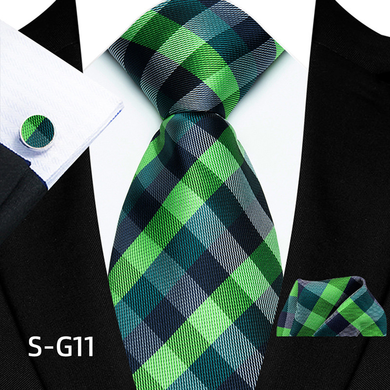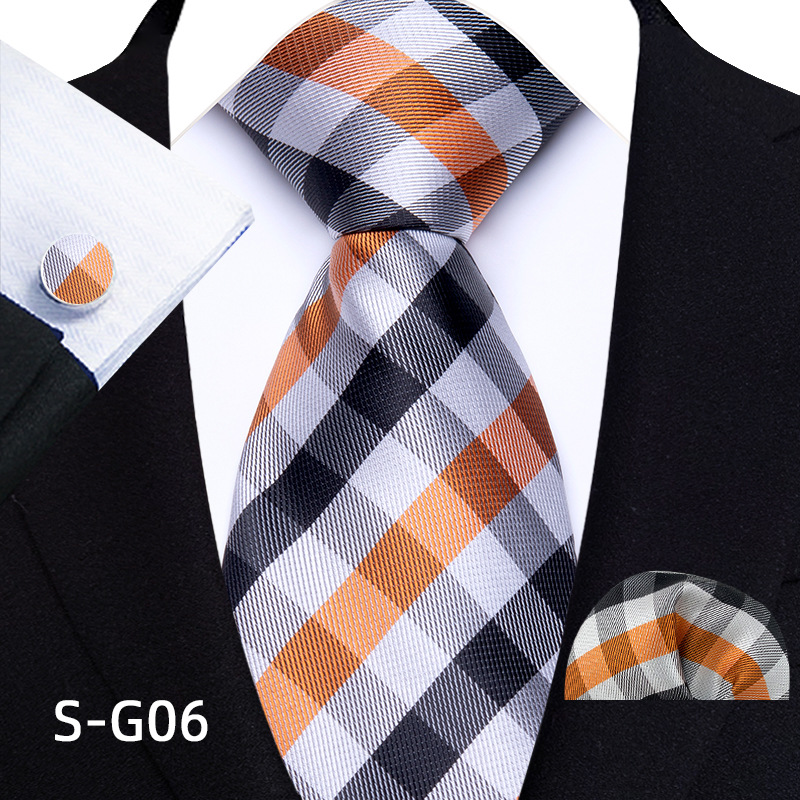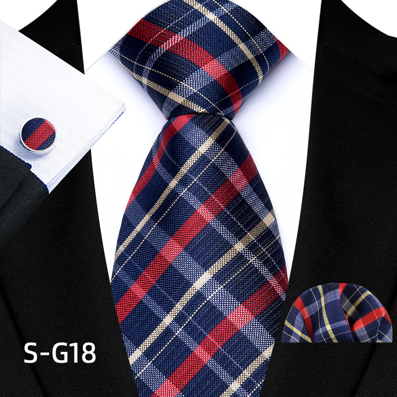 공장 현장 직접 공급 남성용 폴리에스터 8cm 패션 체크 무늬 영국식 넥타이 스퀘어 스카프 커프스 3피스 세트