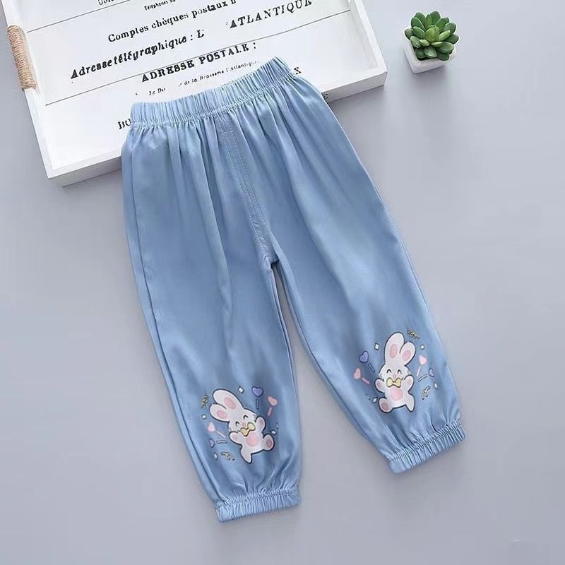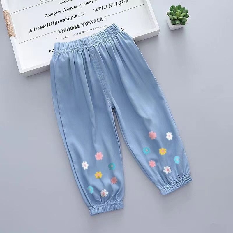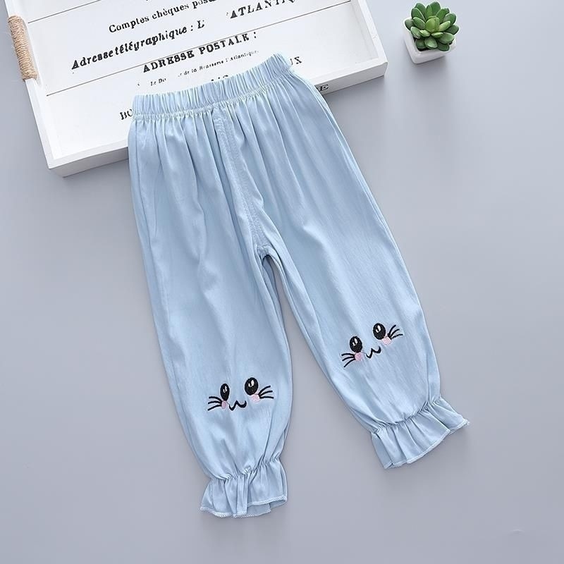 어린이 모기 방지 바지 여름 얇은 소녀의 새로운 중소형 아동 의류 아기 여름 데님 얼음 실크 랜턴 긴 바지