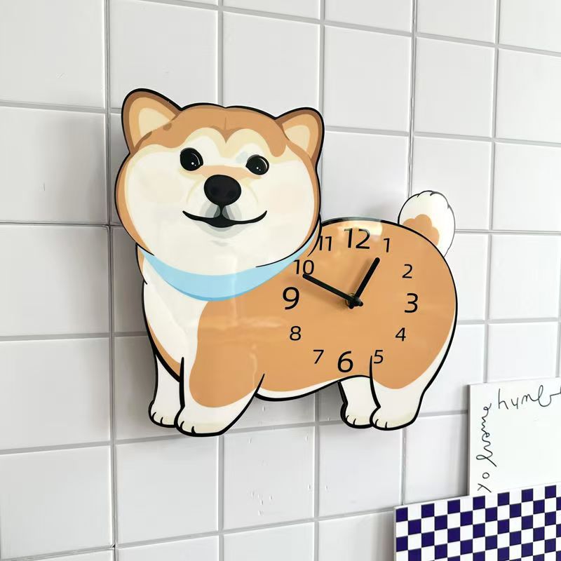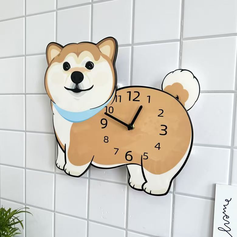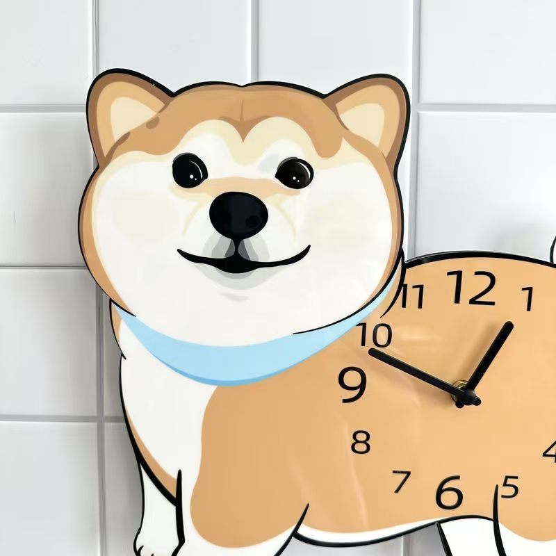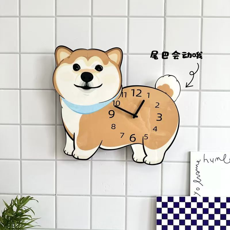 Shiba Inu 강아지 귀여운 크리 에이 티브 벽시계 만화 꼬리 흔들기 성격 거실 시계 벽시계 홈 장식 장식품스토어 가기