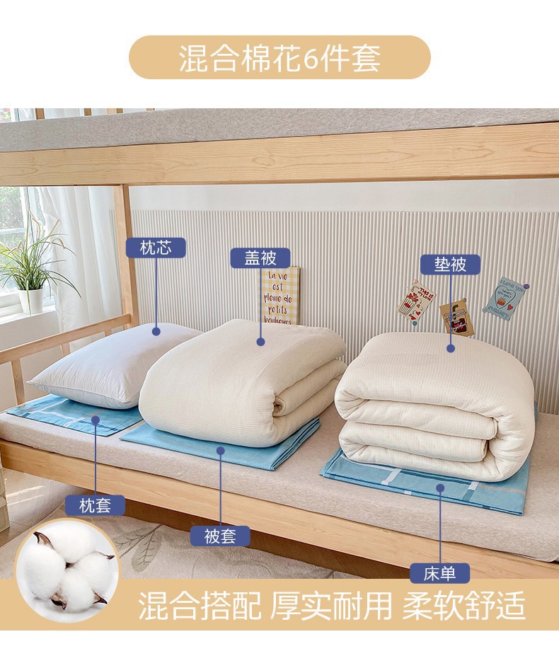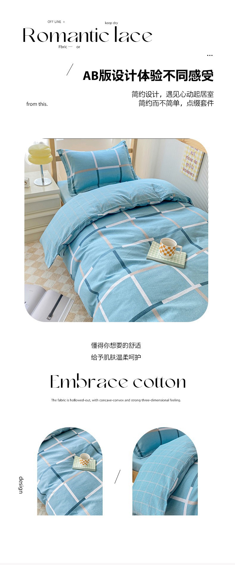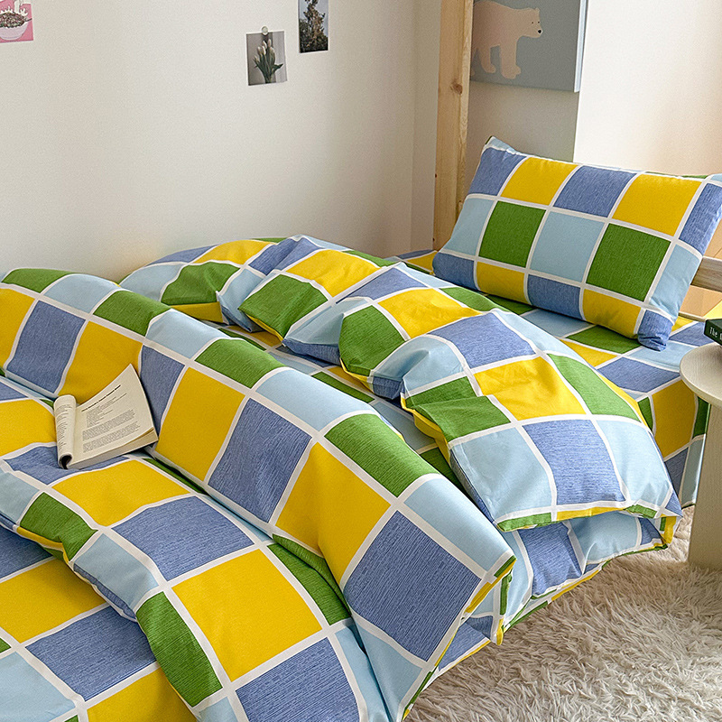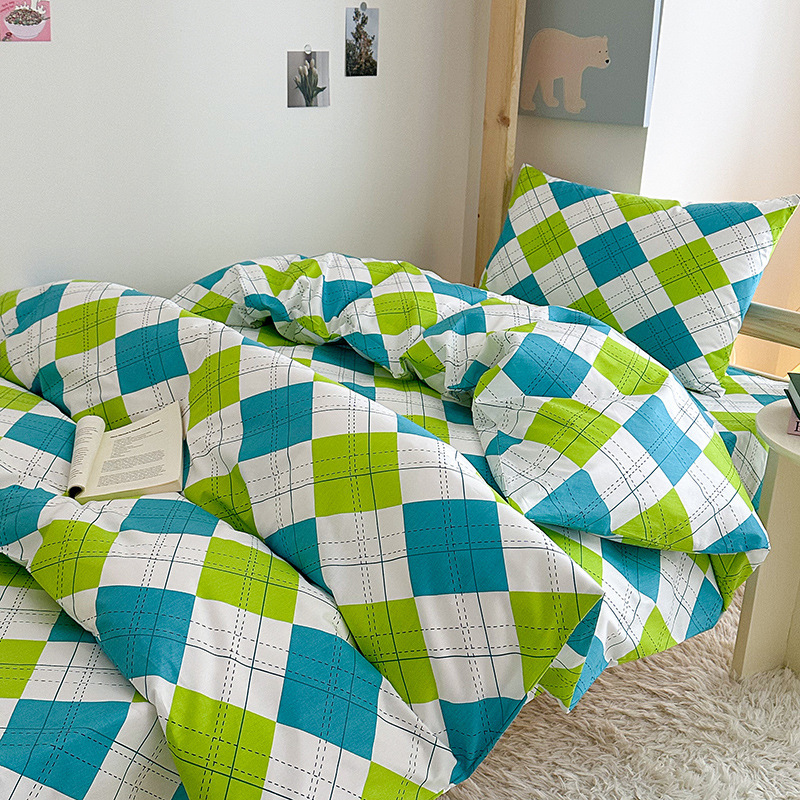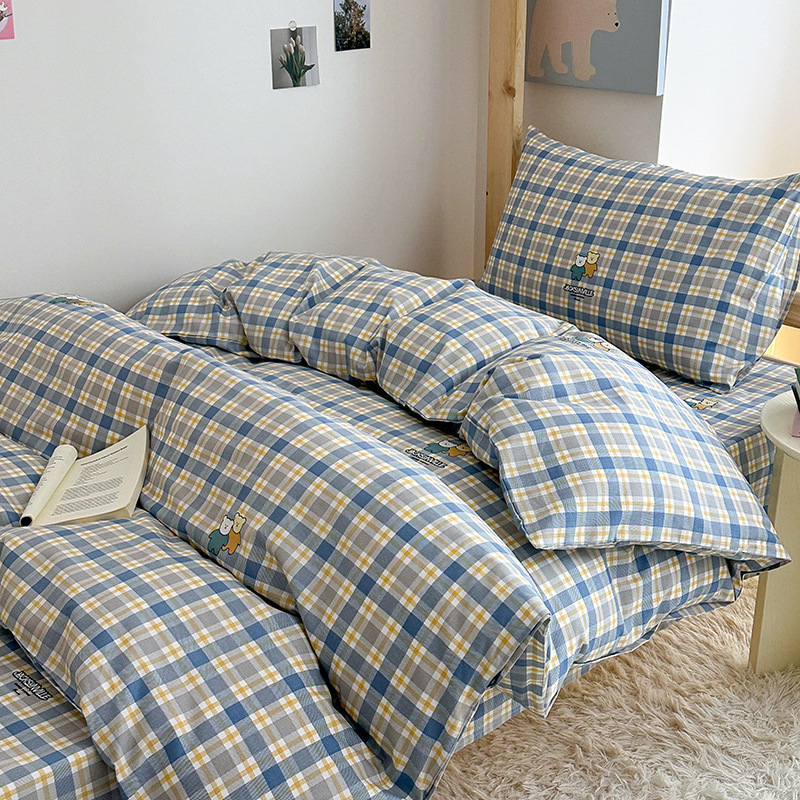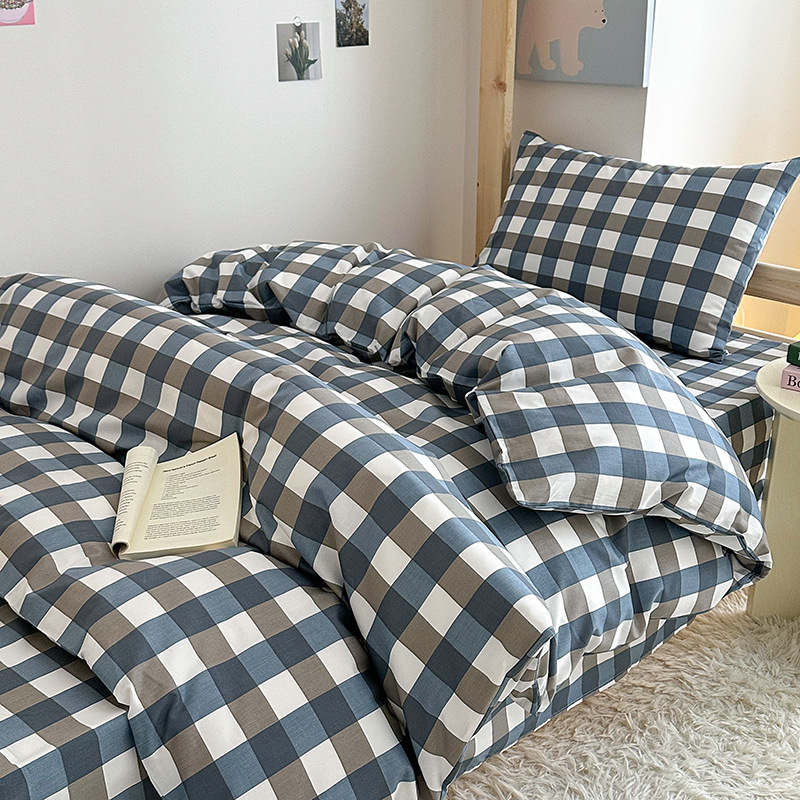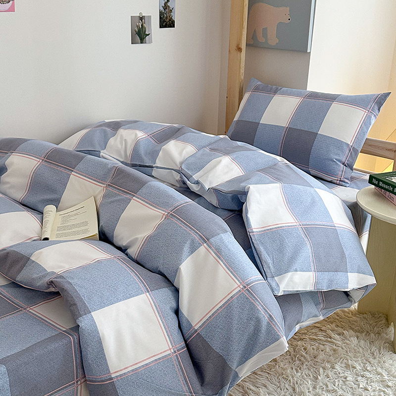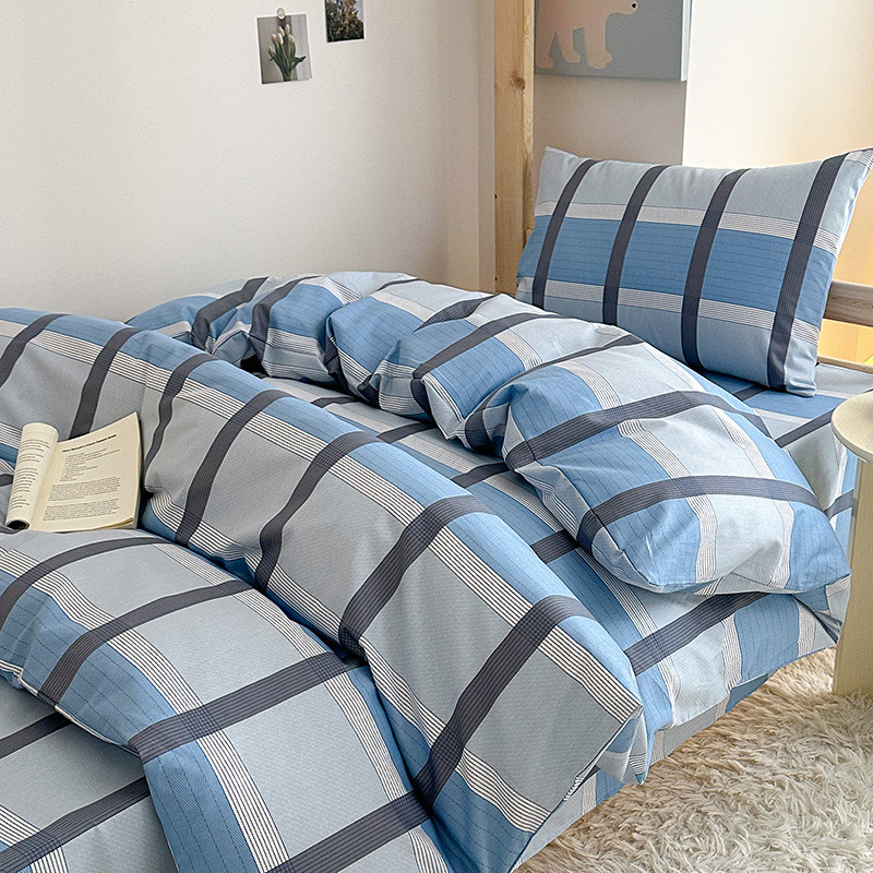 격자무늬 면 기숙사 3종 세트 학생 기숙사 유닛 침구 침구 이불 직원 기숙사 침대 6종 세트