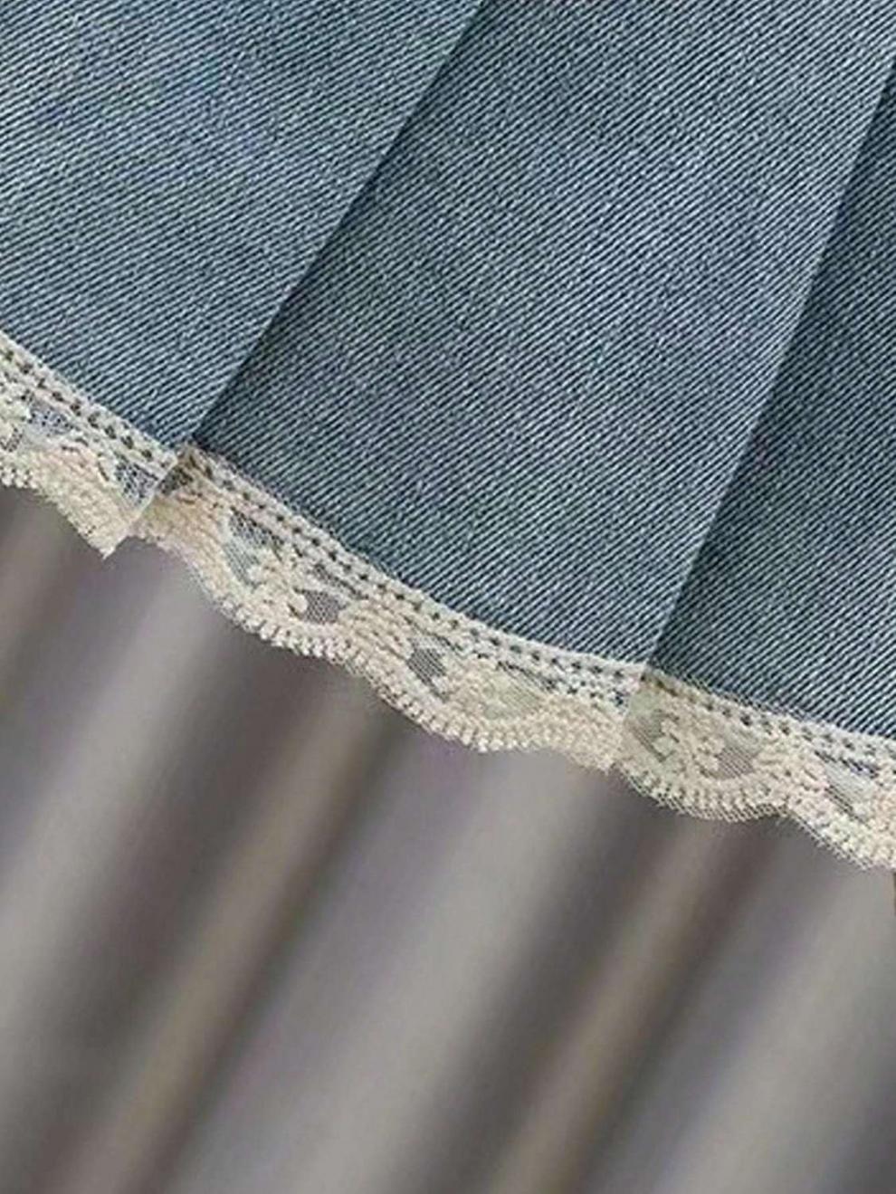 여아 데님 스커트 봄, 여름, 가을 새로운 스타일 중대형 어린이 인터넷 연예인 스타일 케이크 스커트 어린이 짧은 스커트 레이스