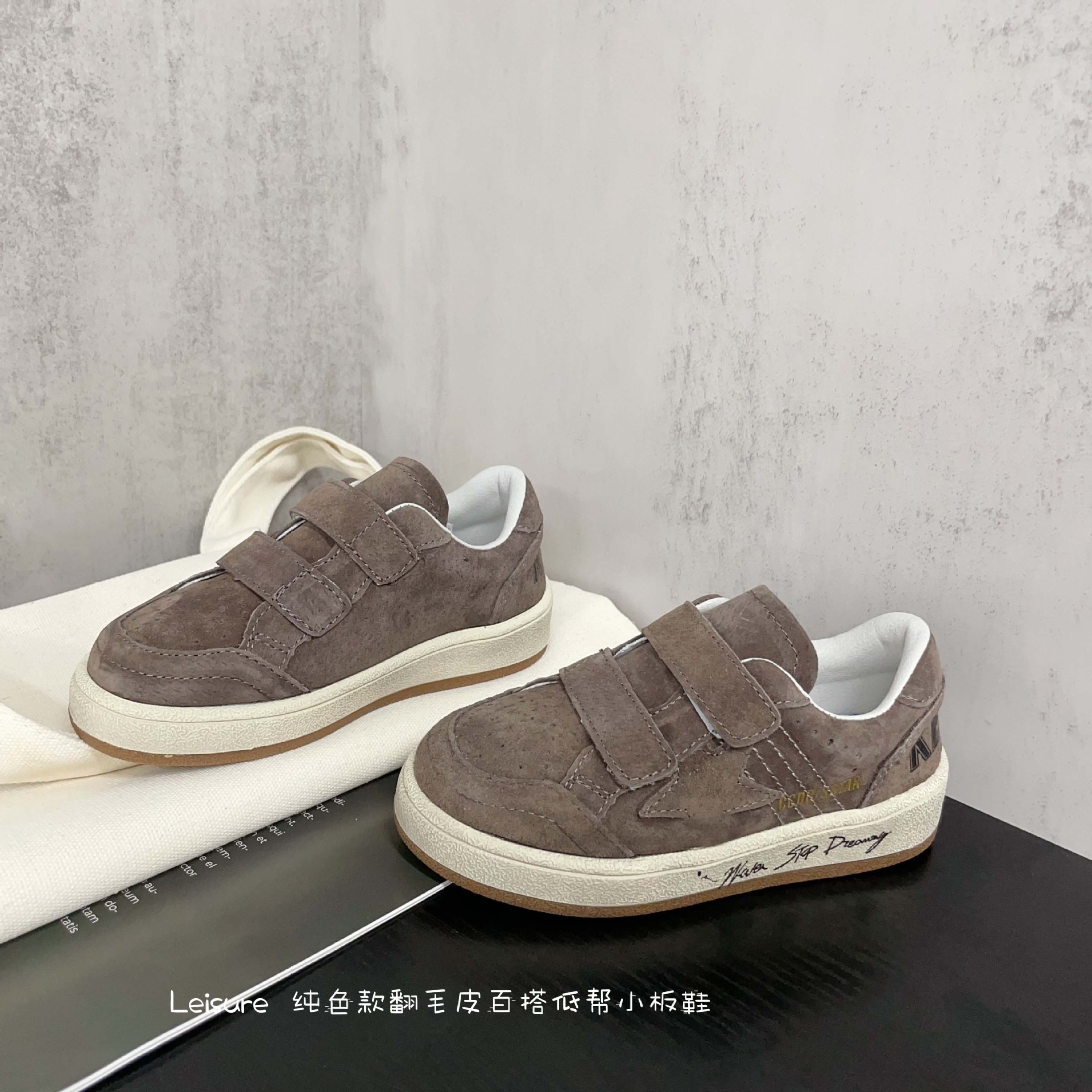 어린이 간단한 단색 캐주얼 스타일 복고풍 스웨이드 로우 탑 소형 운동화 2025 초가을 소년과 소녀 신발스토어 가기