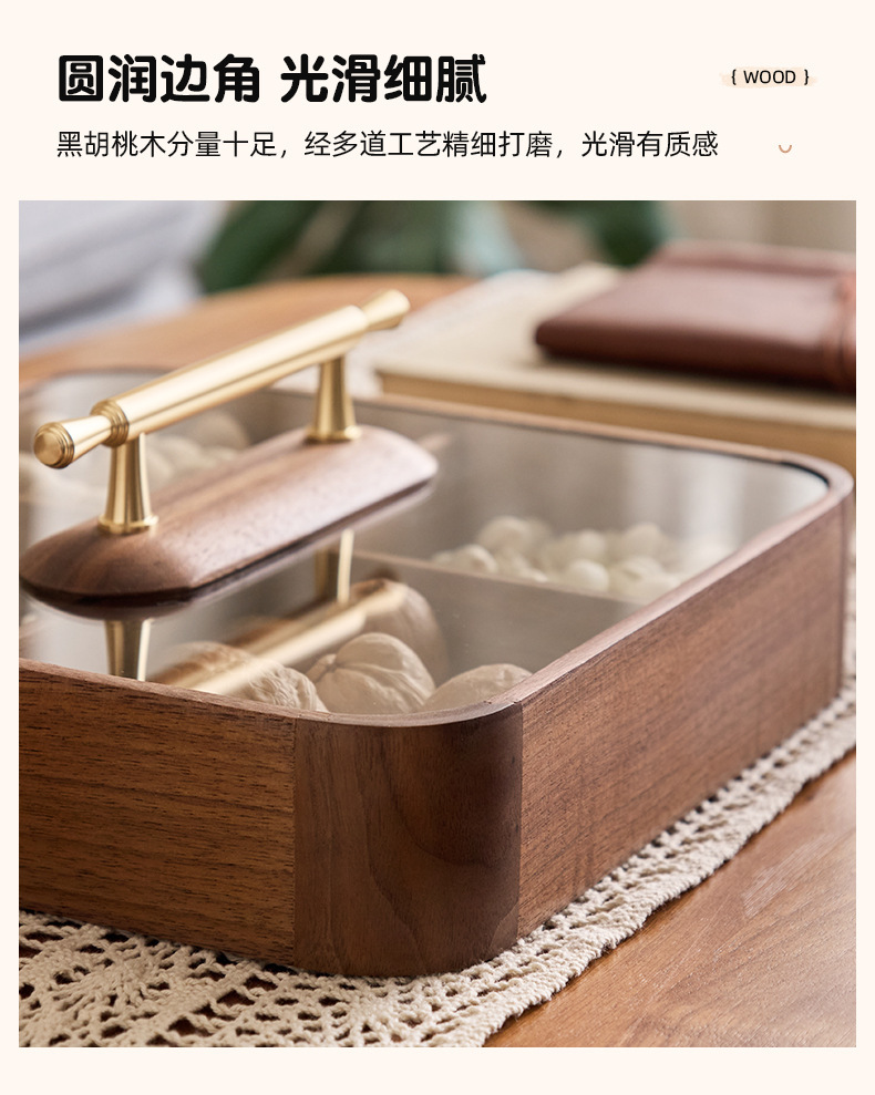 단단한 나무 말린 과일 접시 새로운 중국 스타일의 거실 가정용 새해 과일 상자 뚜껑이있는 견과류 사탕 보관 상자 과일 접시