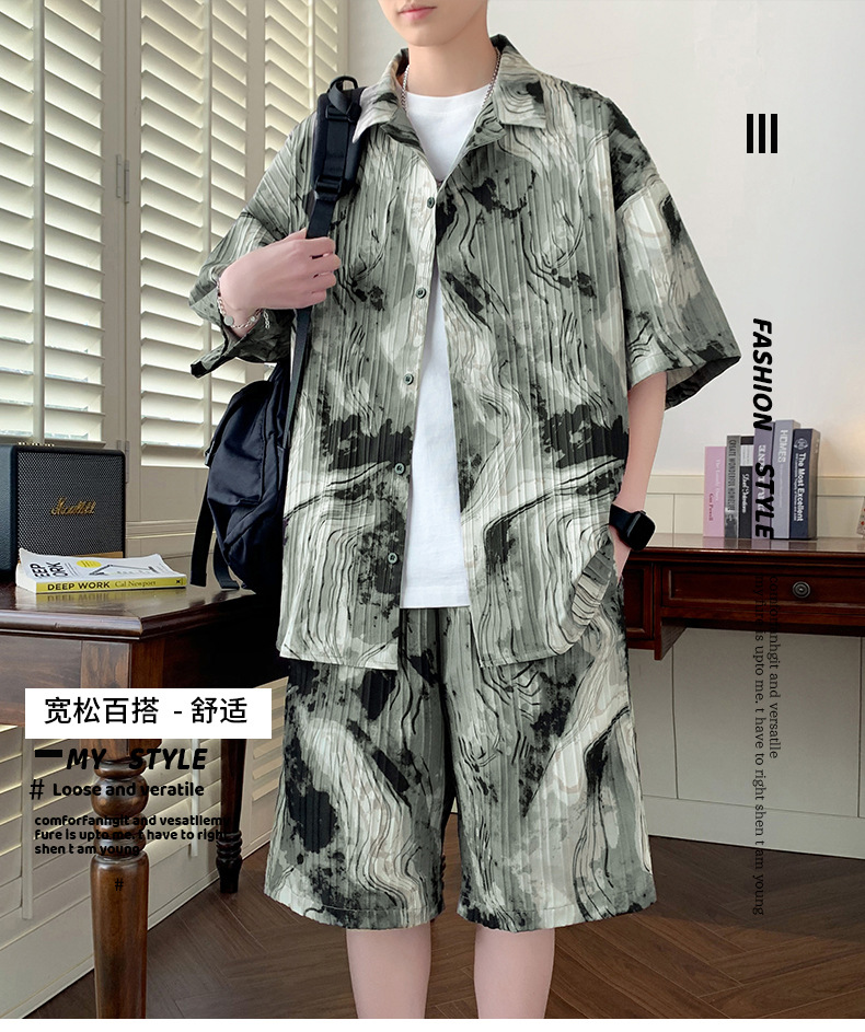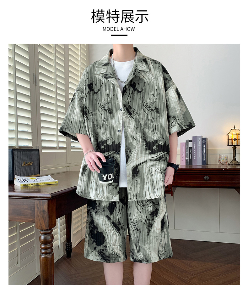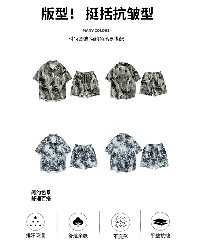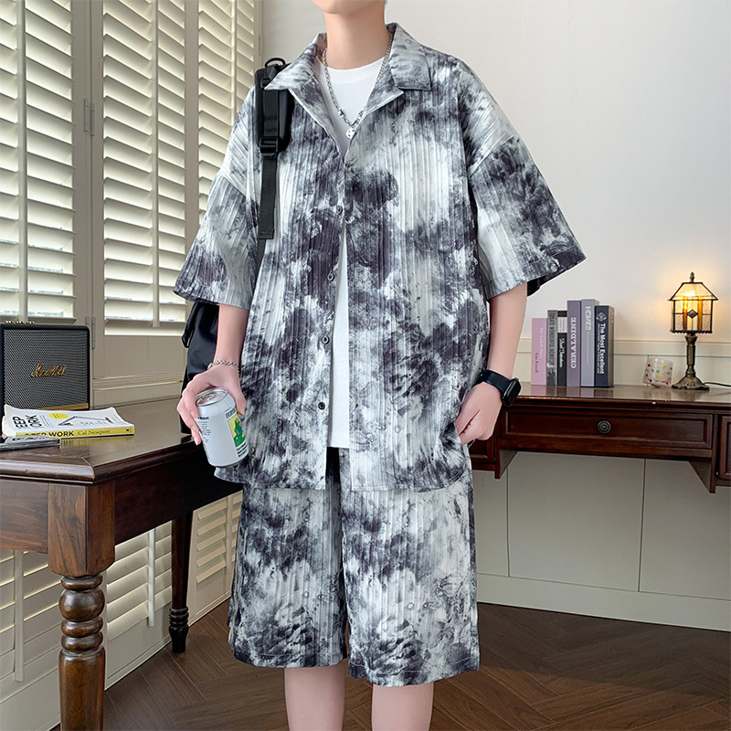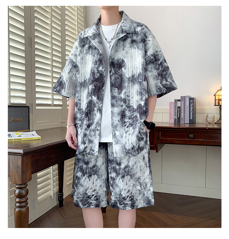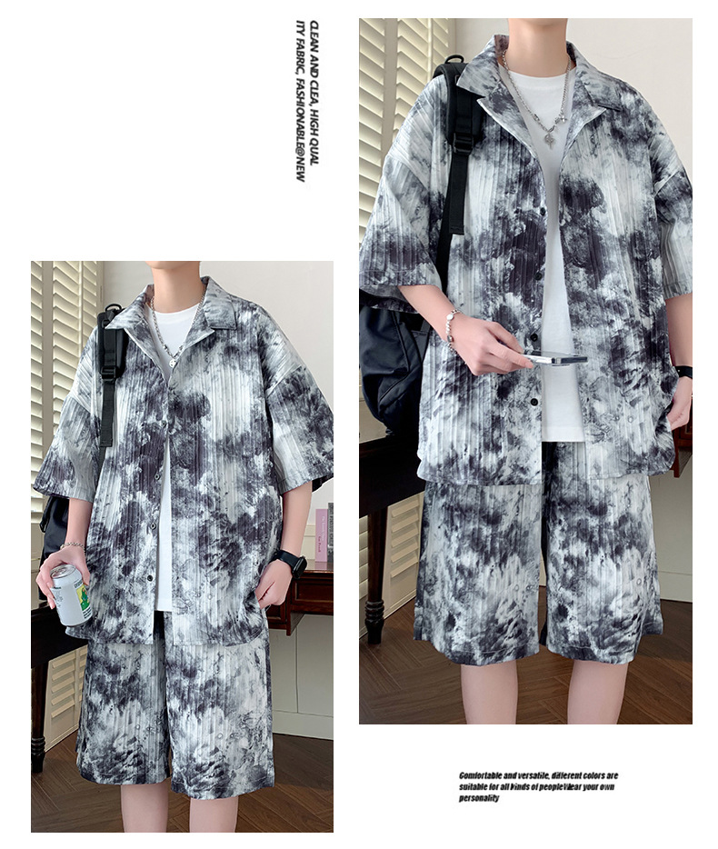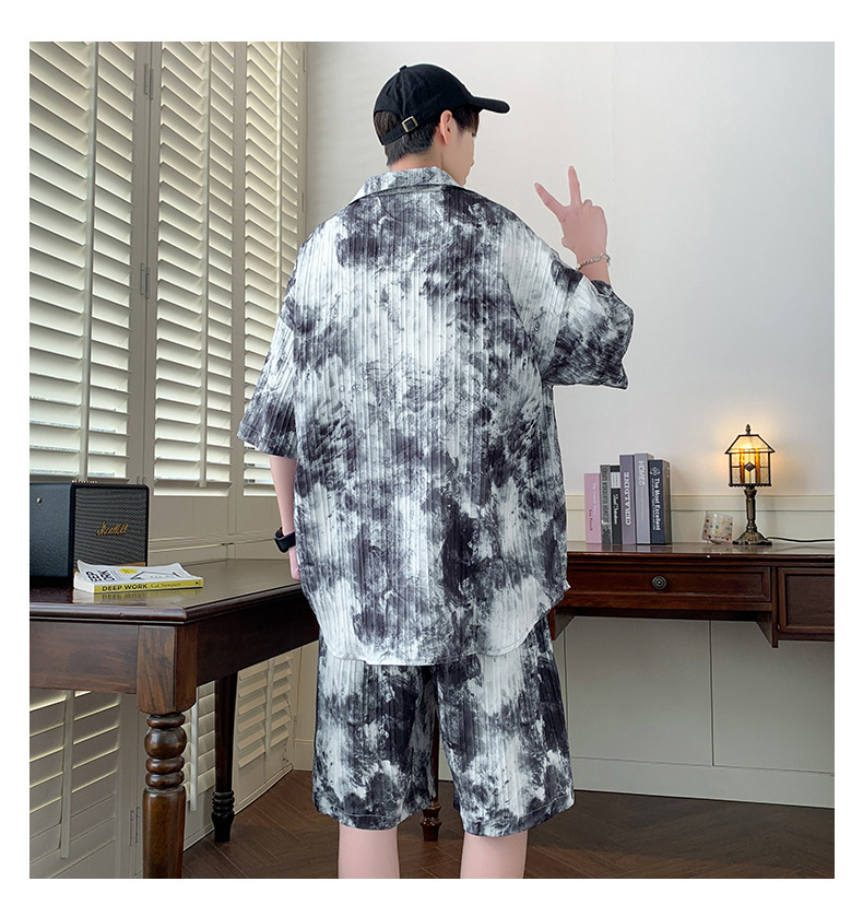 인기 있는 여름 타이 염색 아이스 실크 셔츠 반바지 정장 남성 스포츠 비치 남성 남성 패션 브랜드 전체 세트스토어 가기