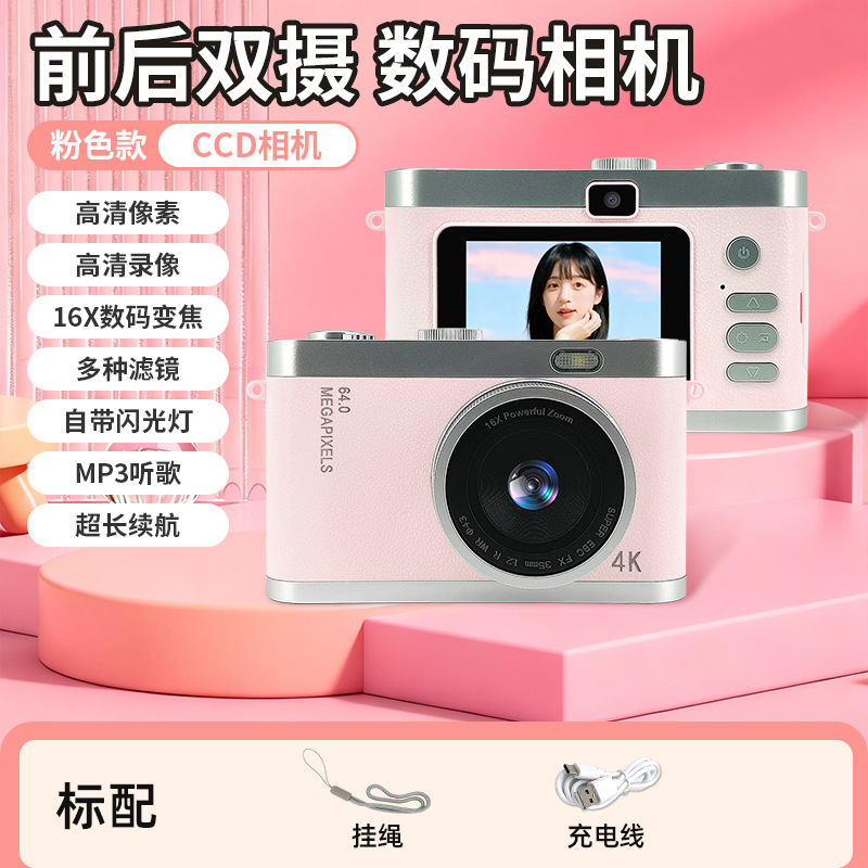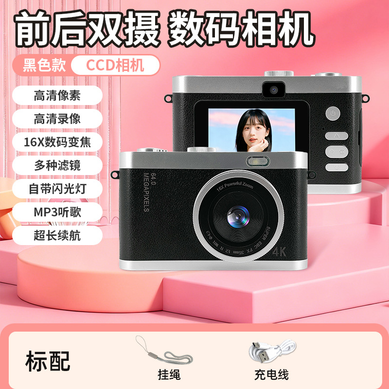 학생용 카메라 CCD 필터 디지털 카메라 HD 전후면 듀얼 카메라 레트로 어린이용 카드형 사진 및 비디오 레코더
