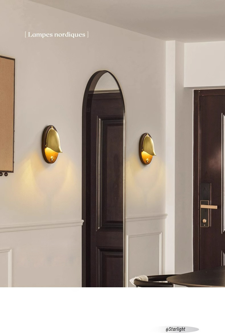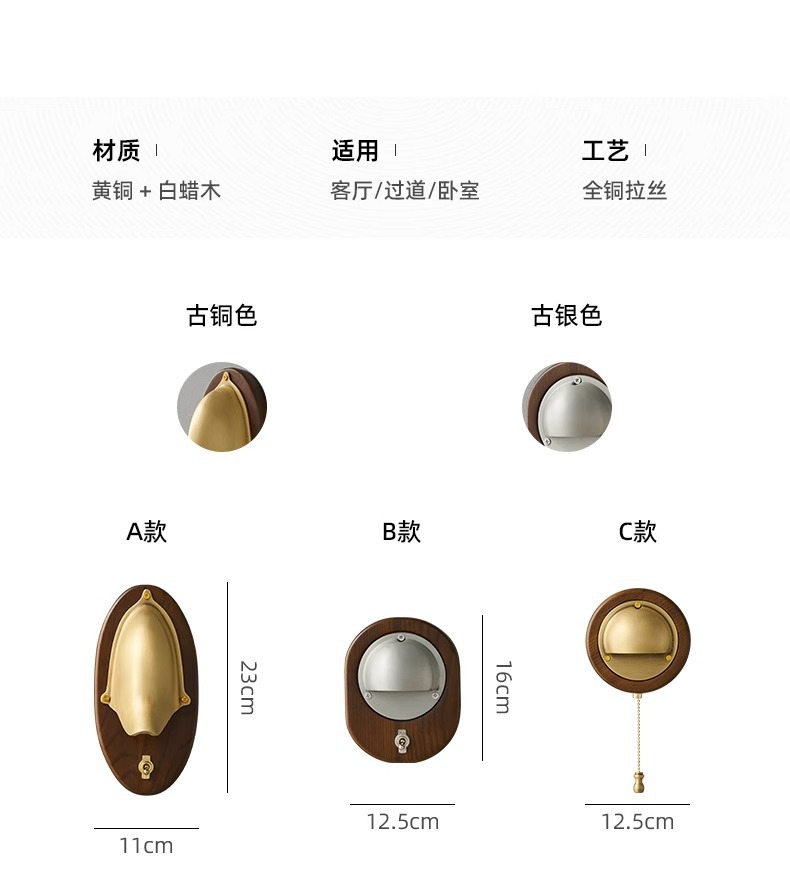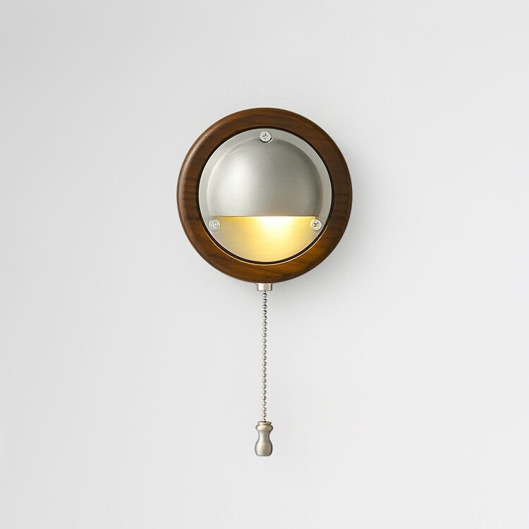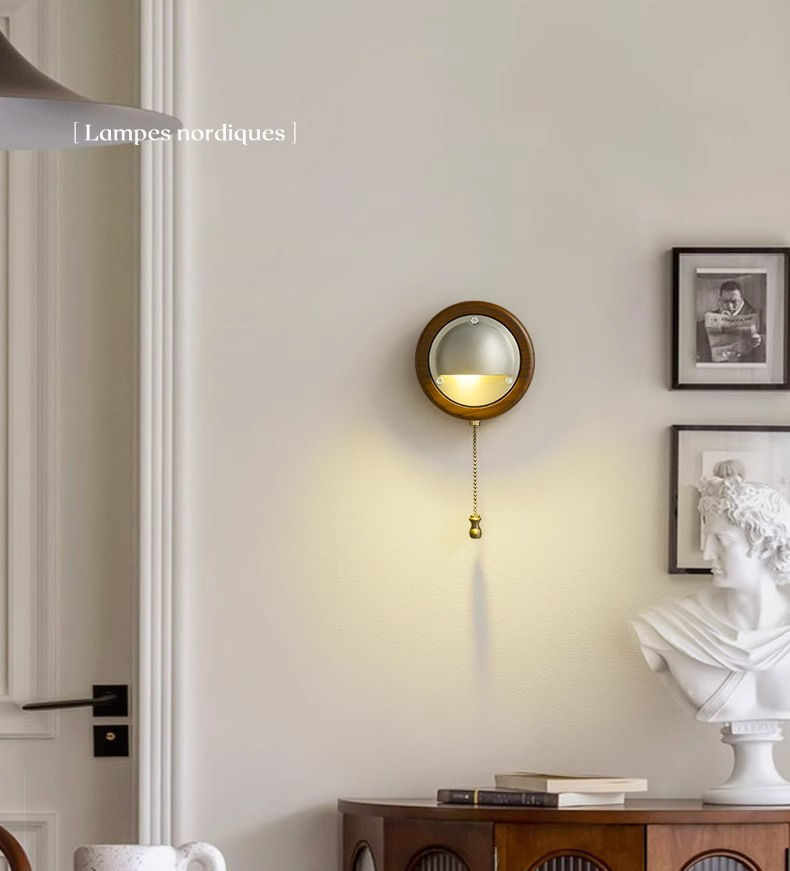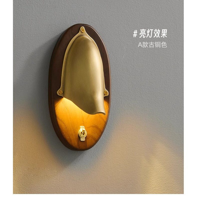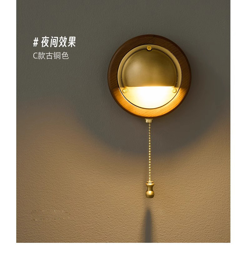 당김 코드가있는 북유럽 전체 구리 벽 램프 침실 계단 복도 램프 예술적 분위기 거실 배경 벽 단단한 나무 램프