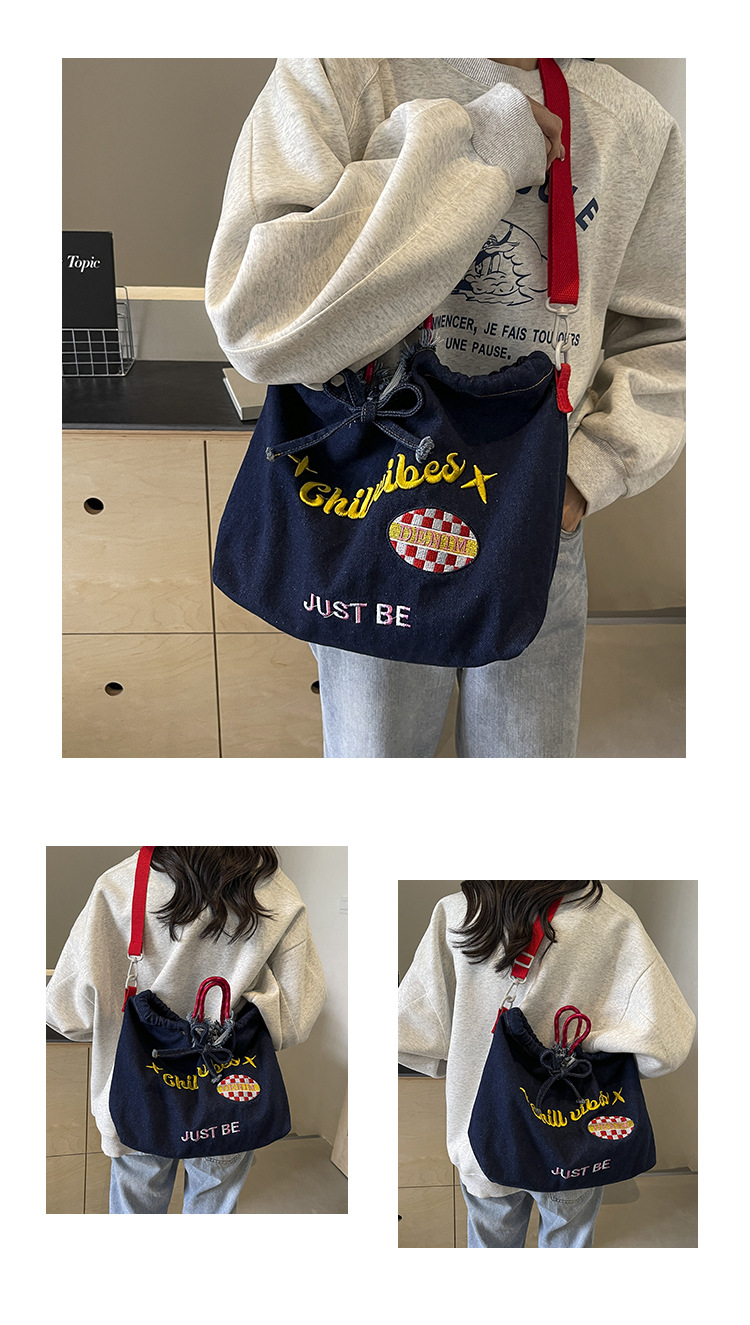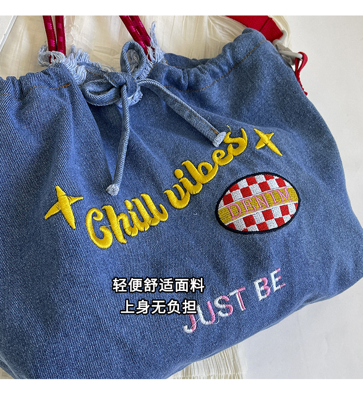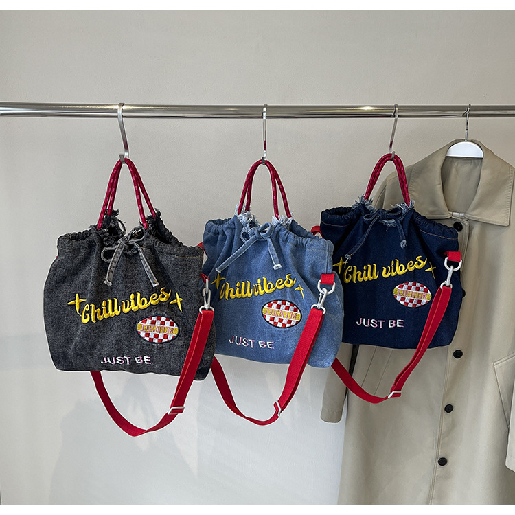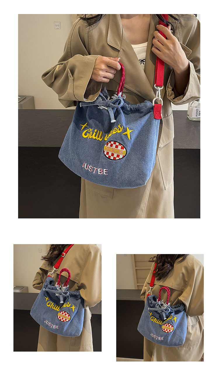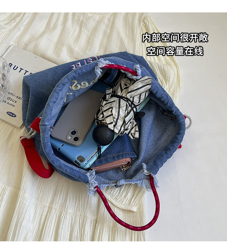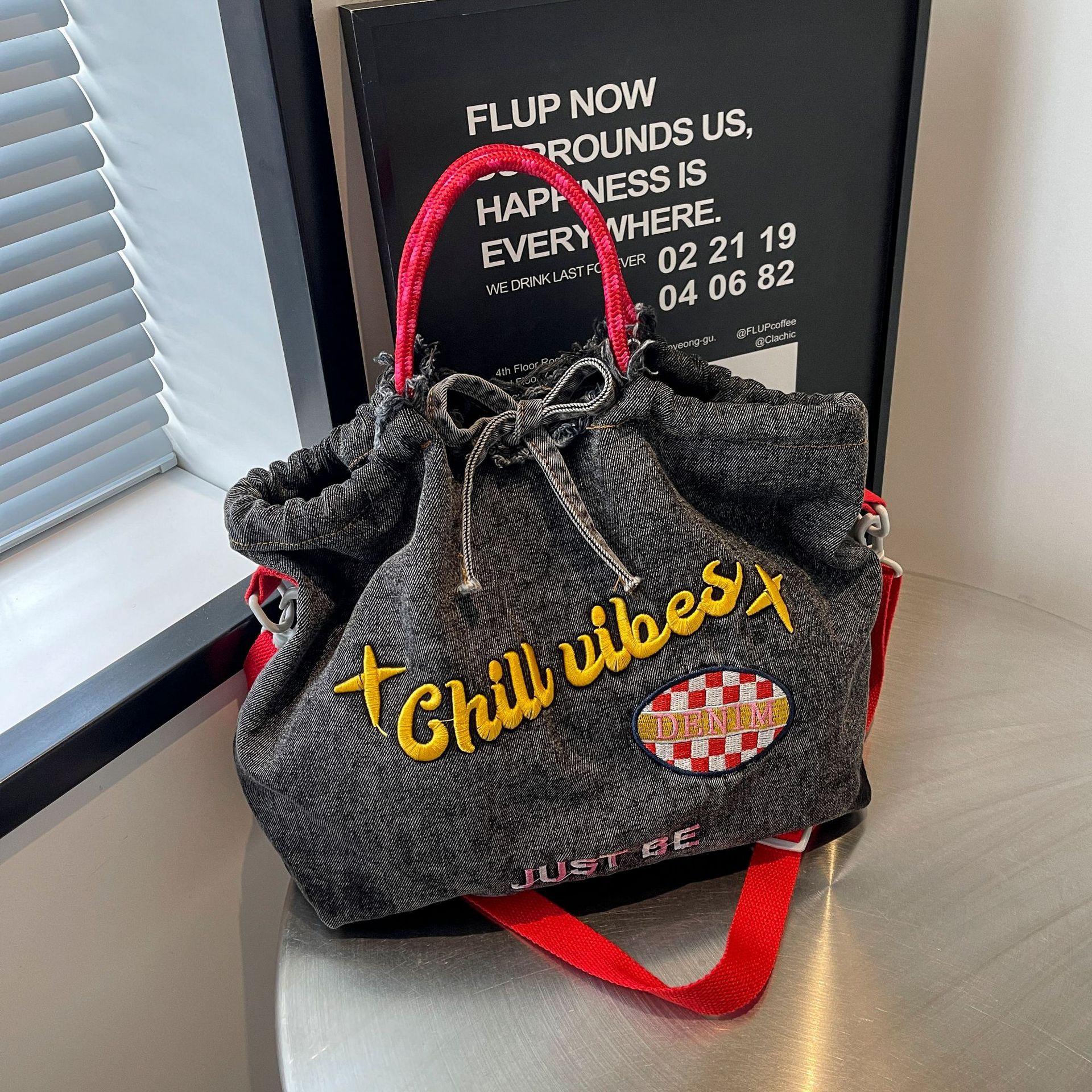 일본과 한국 데님 자수 볼체인 휴대용 토트 백 대용량 숄더백 캐주얼 통근 크로스 바디 백스토어 가기