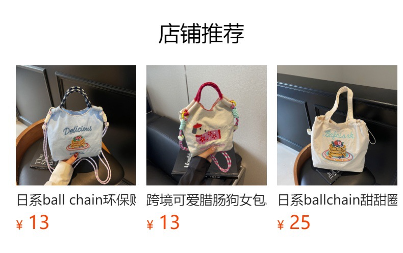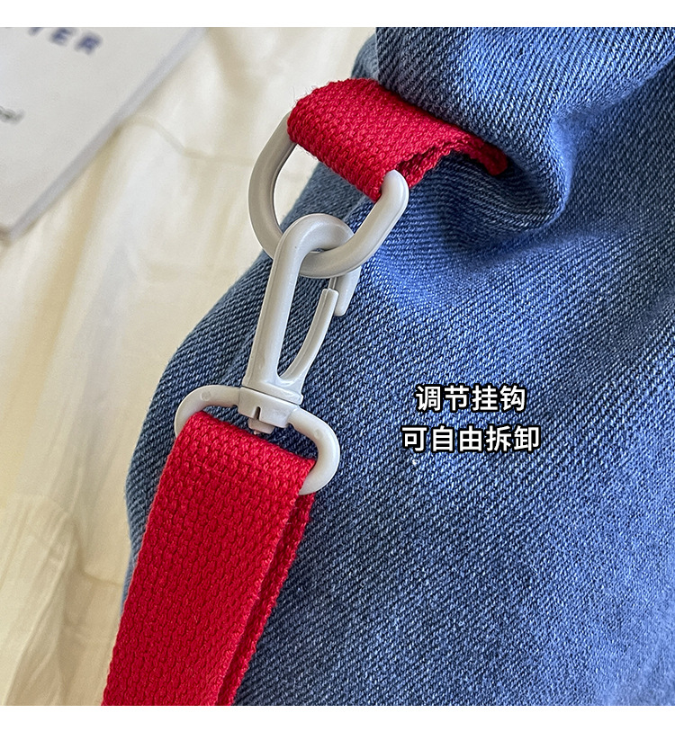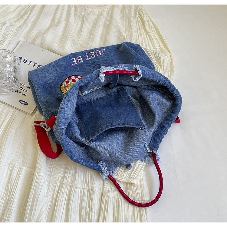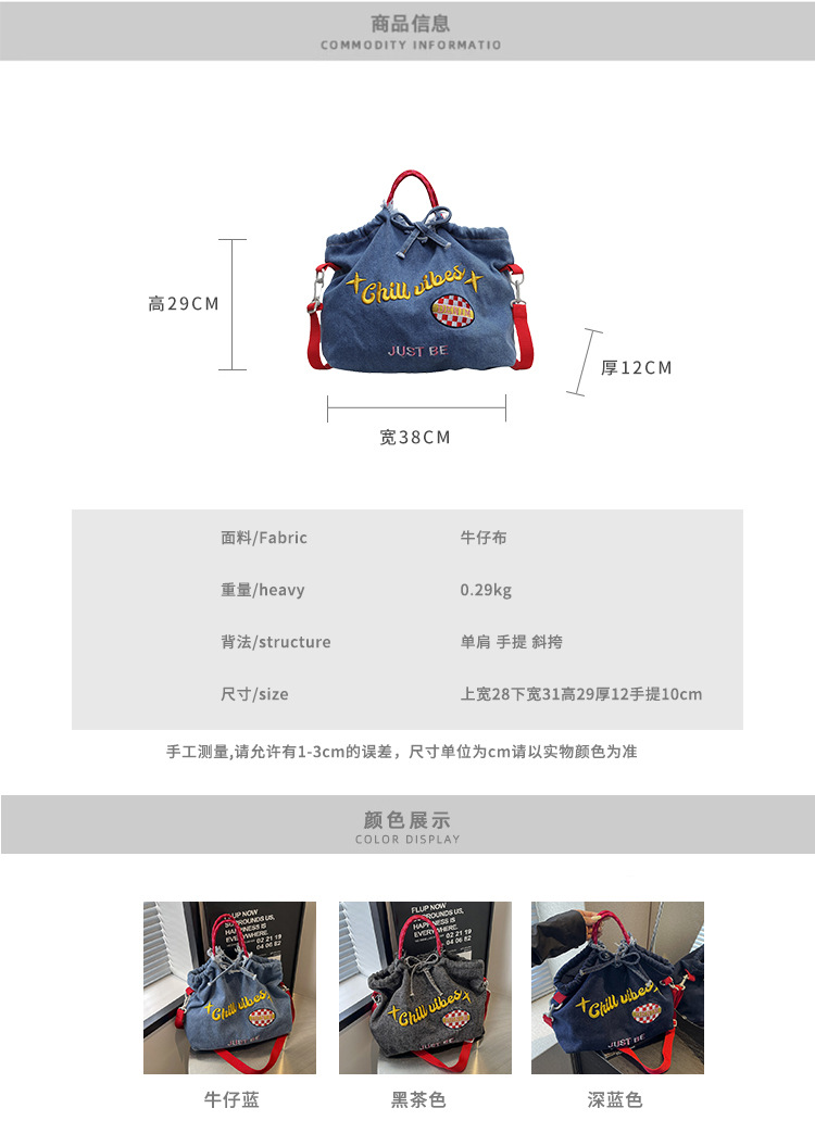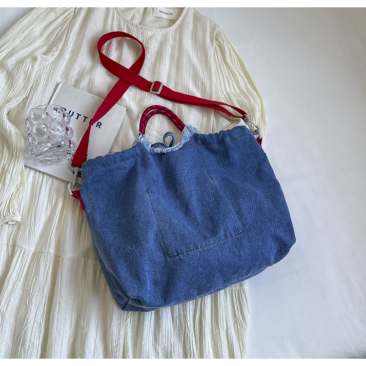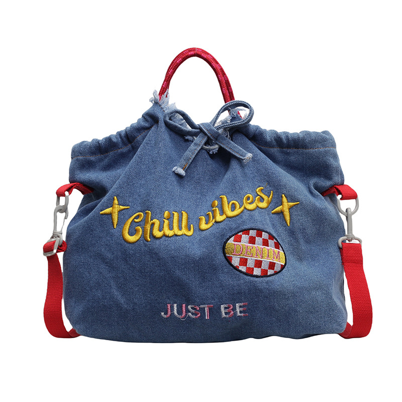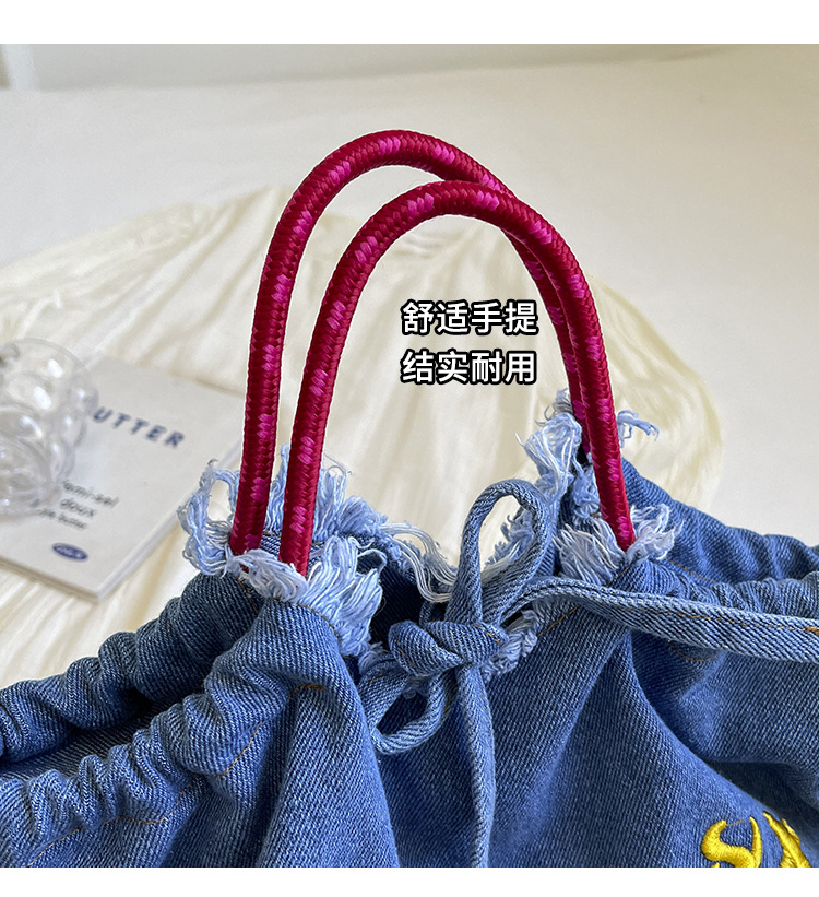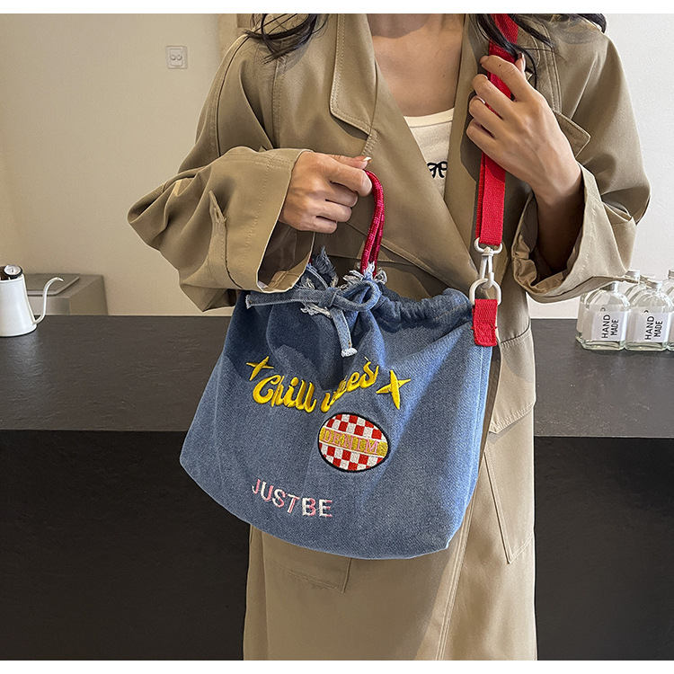 일본과 한국 데님 자수 볼체인 휴대용 토트 백 대용량 숄더백 캐주얼 통근 크로스 바디 백스토어 가기