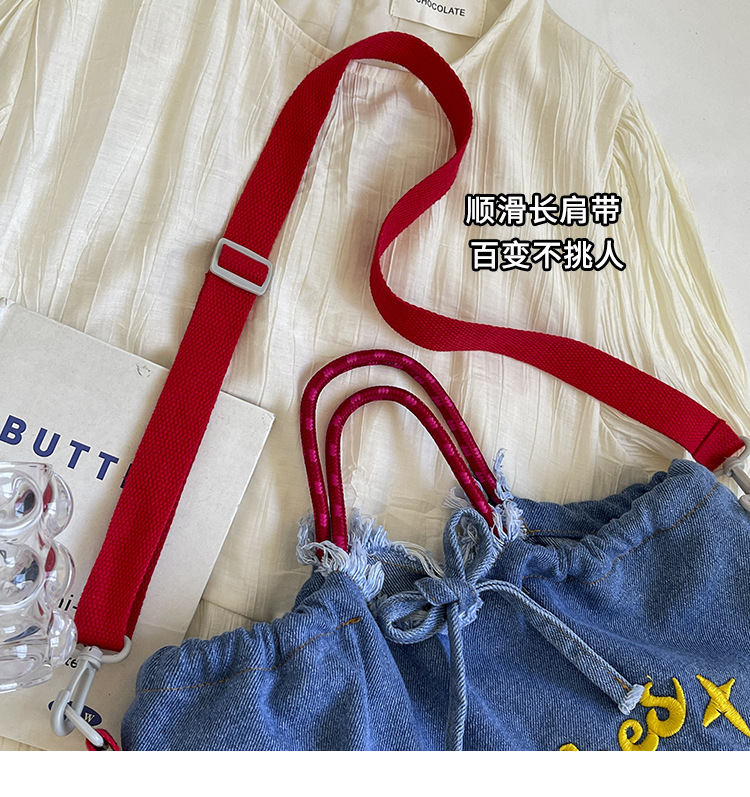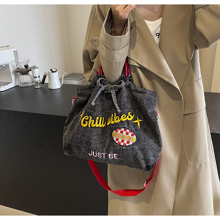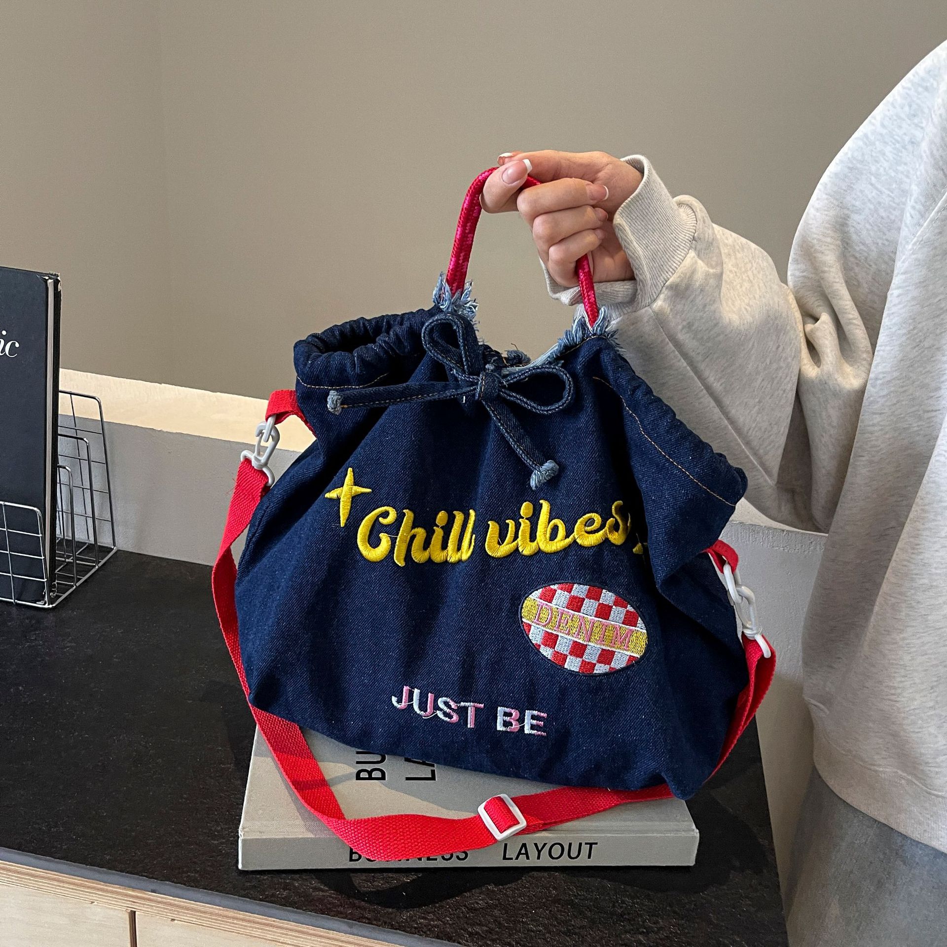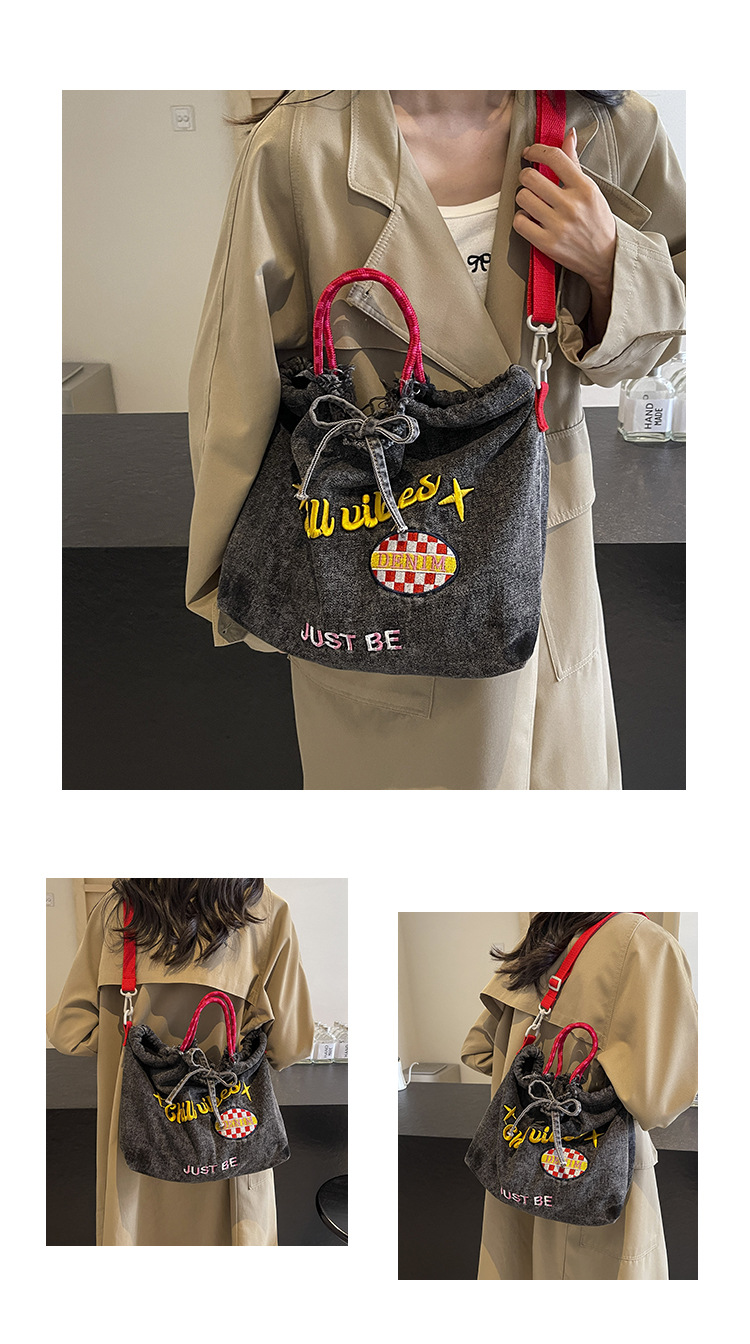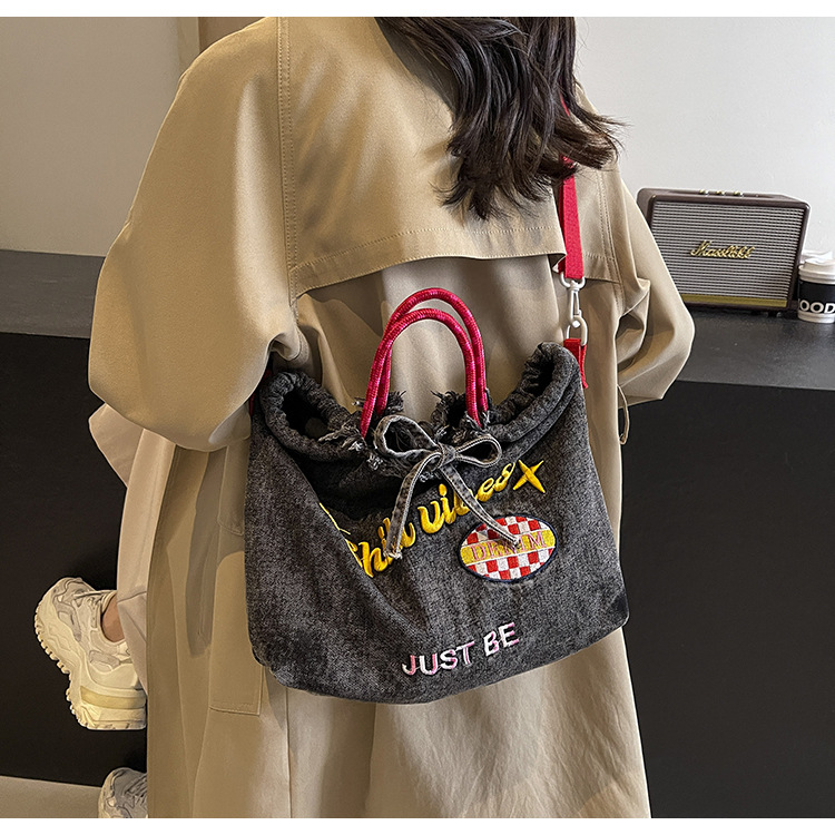일본과 한국 데님 자수 볼체인 휴대용 토트 백 대용량 숄더백 캐주얼 통근 크로스 바디 백