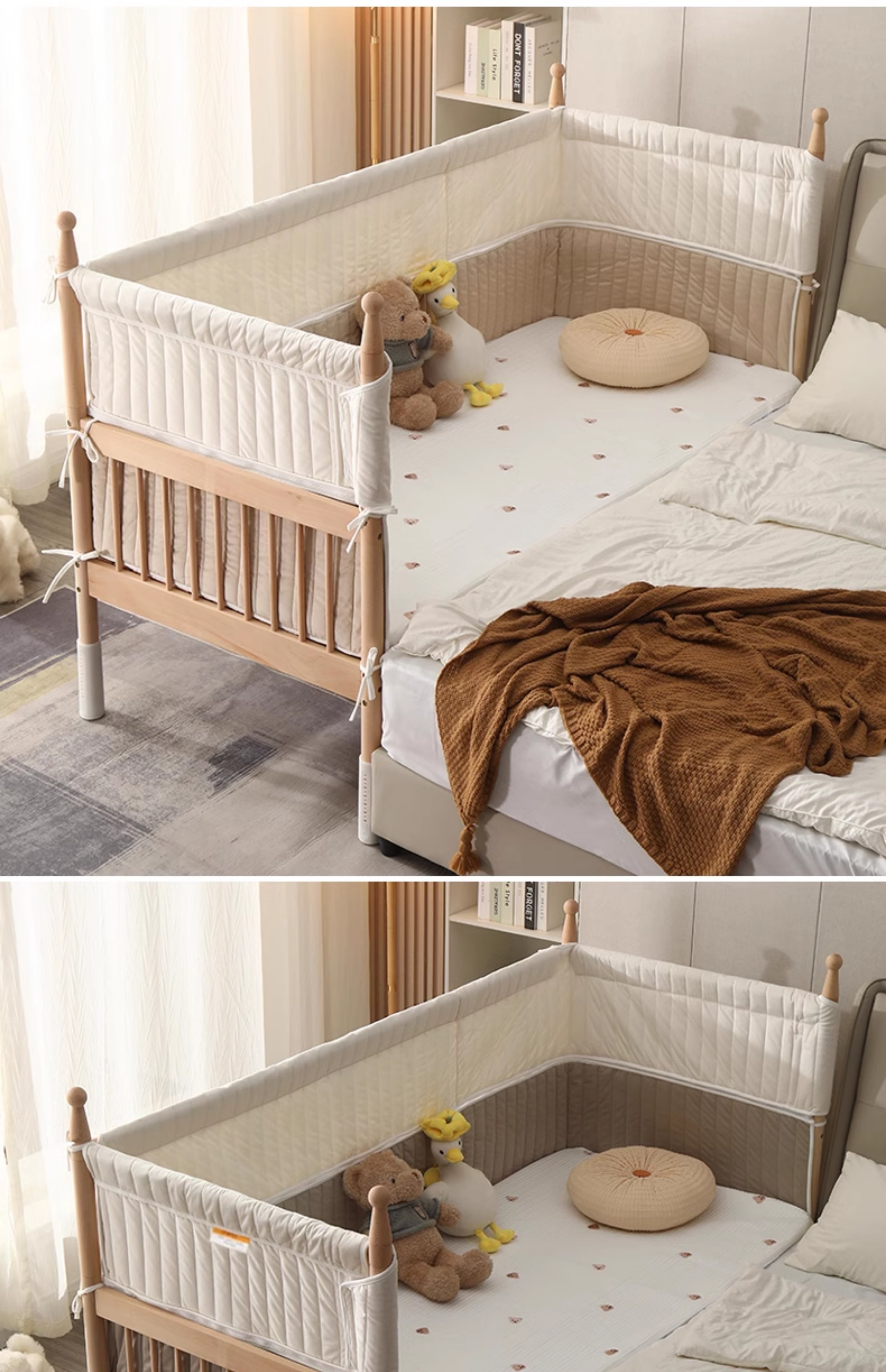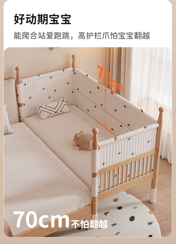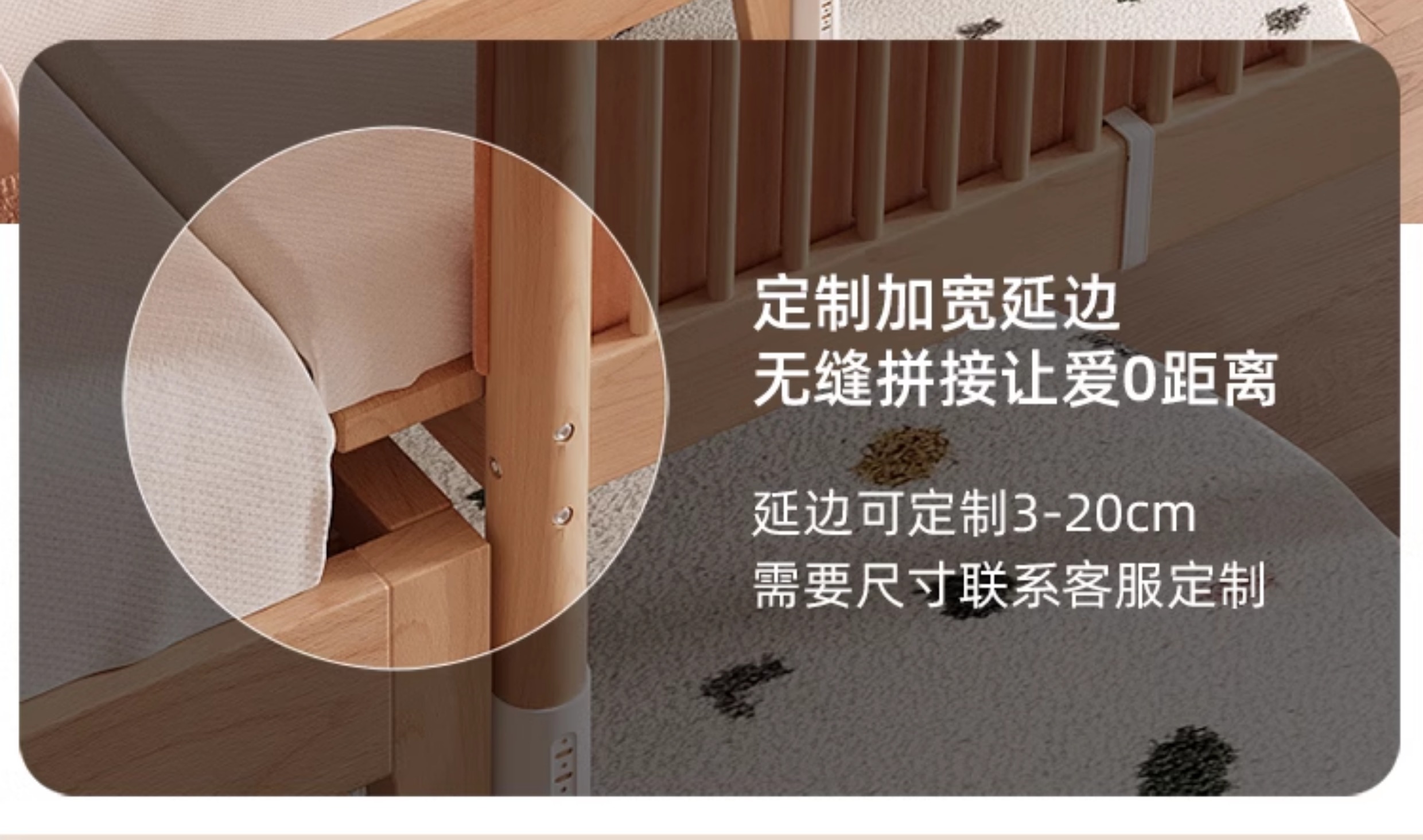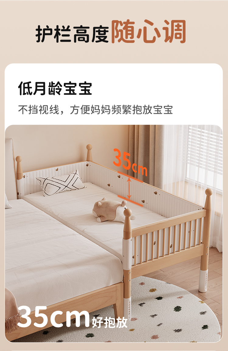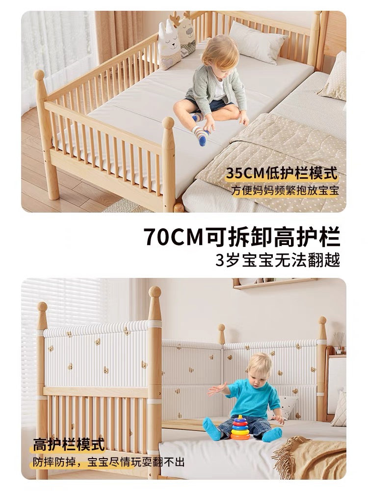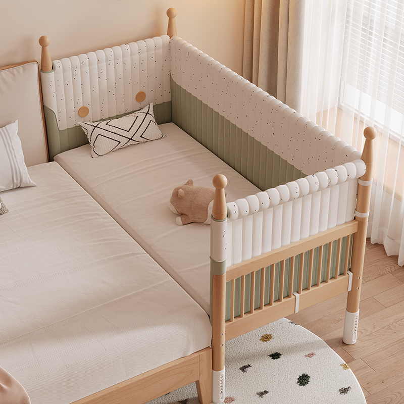 너도밤나무 아기 접합 대형 침대, 침대 옆 리프팅 높이가 조절 가능한 높은 가드레일이 있는 확장형 침대, 어린이 접합 침대