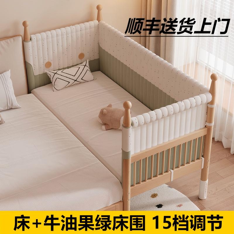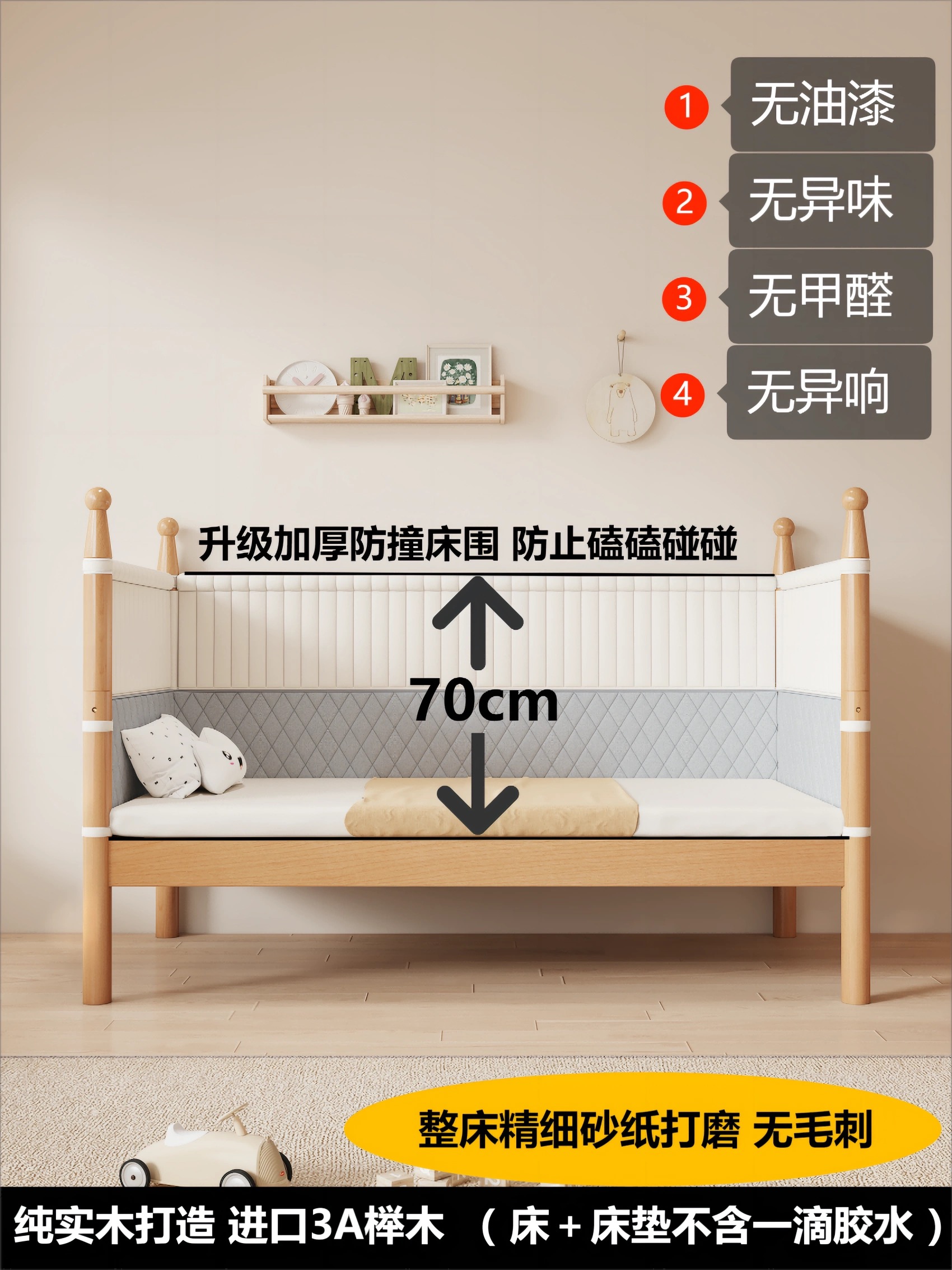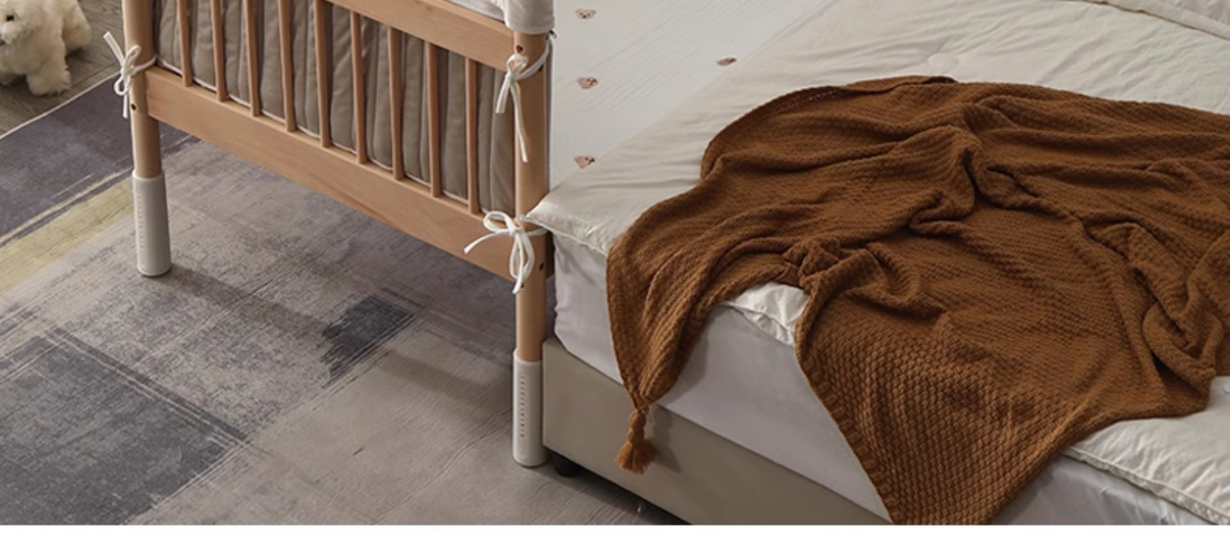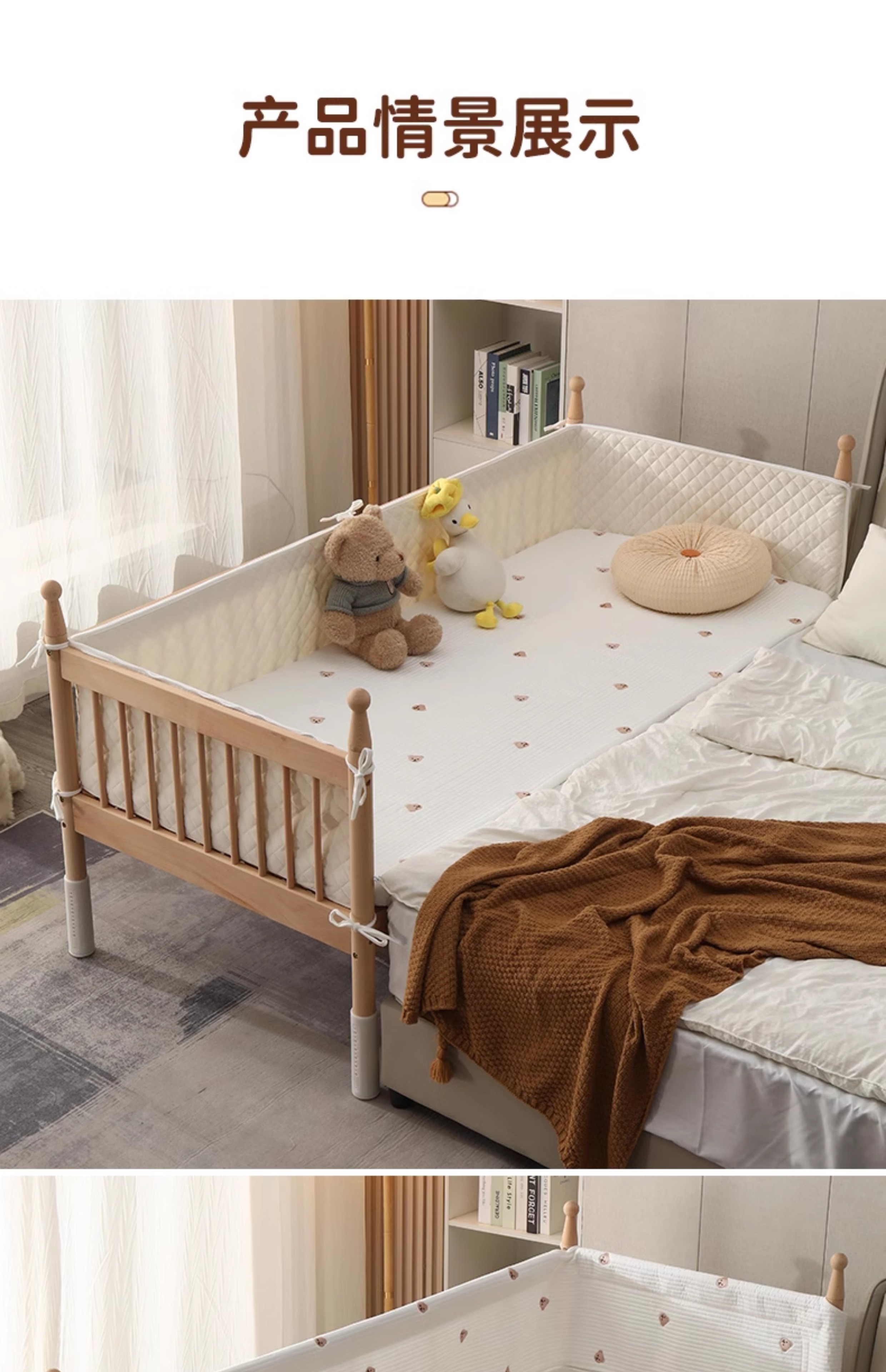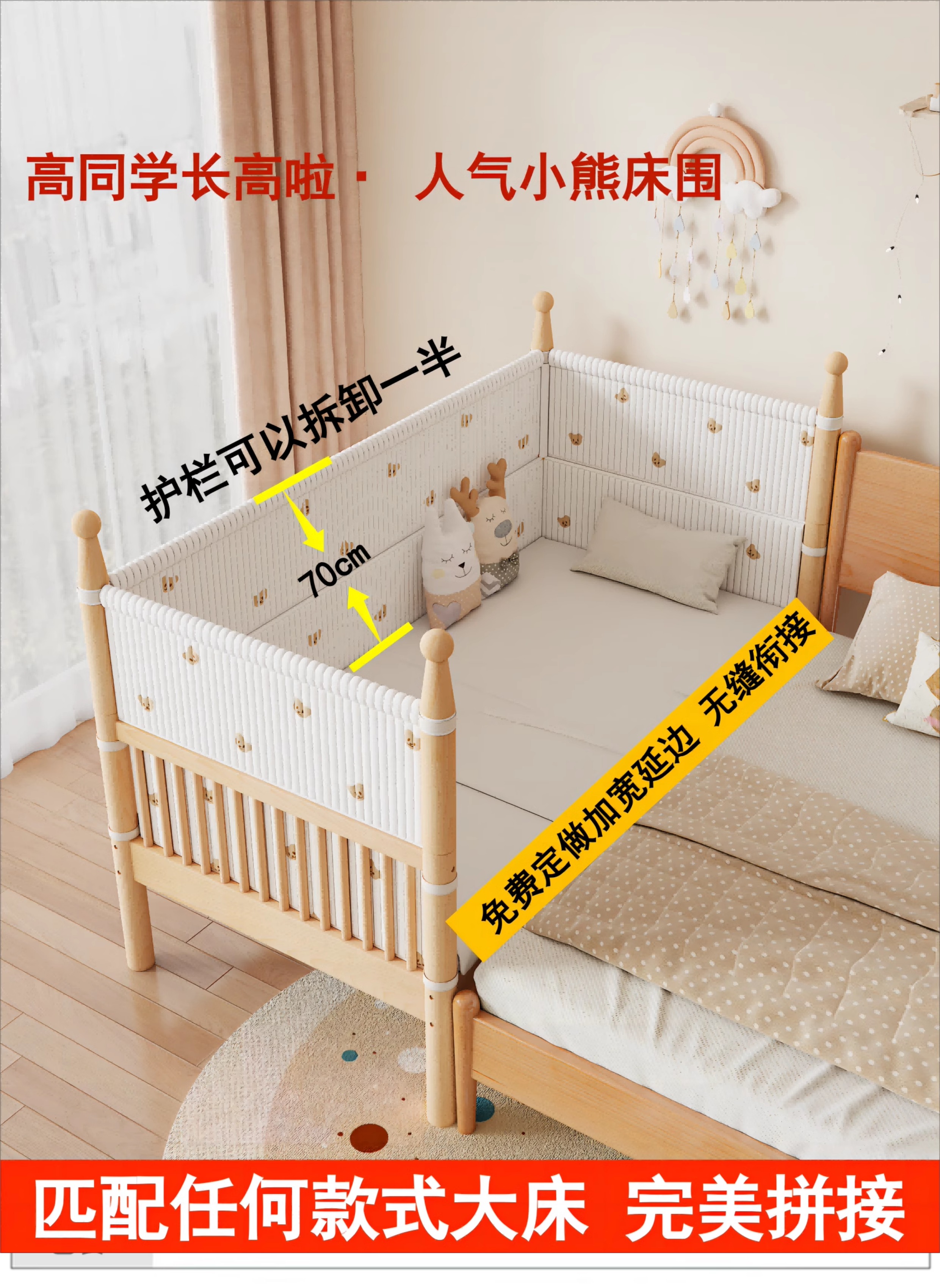 너도밤나무 아기 접합 대형 침대, 침대 옆 리프팅 높이가 조절 가능한 높은 가드레일이 있는 확장형 침대, 어린이 접합 침대