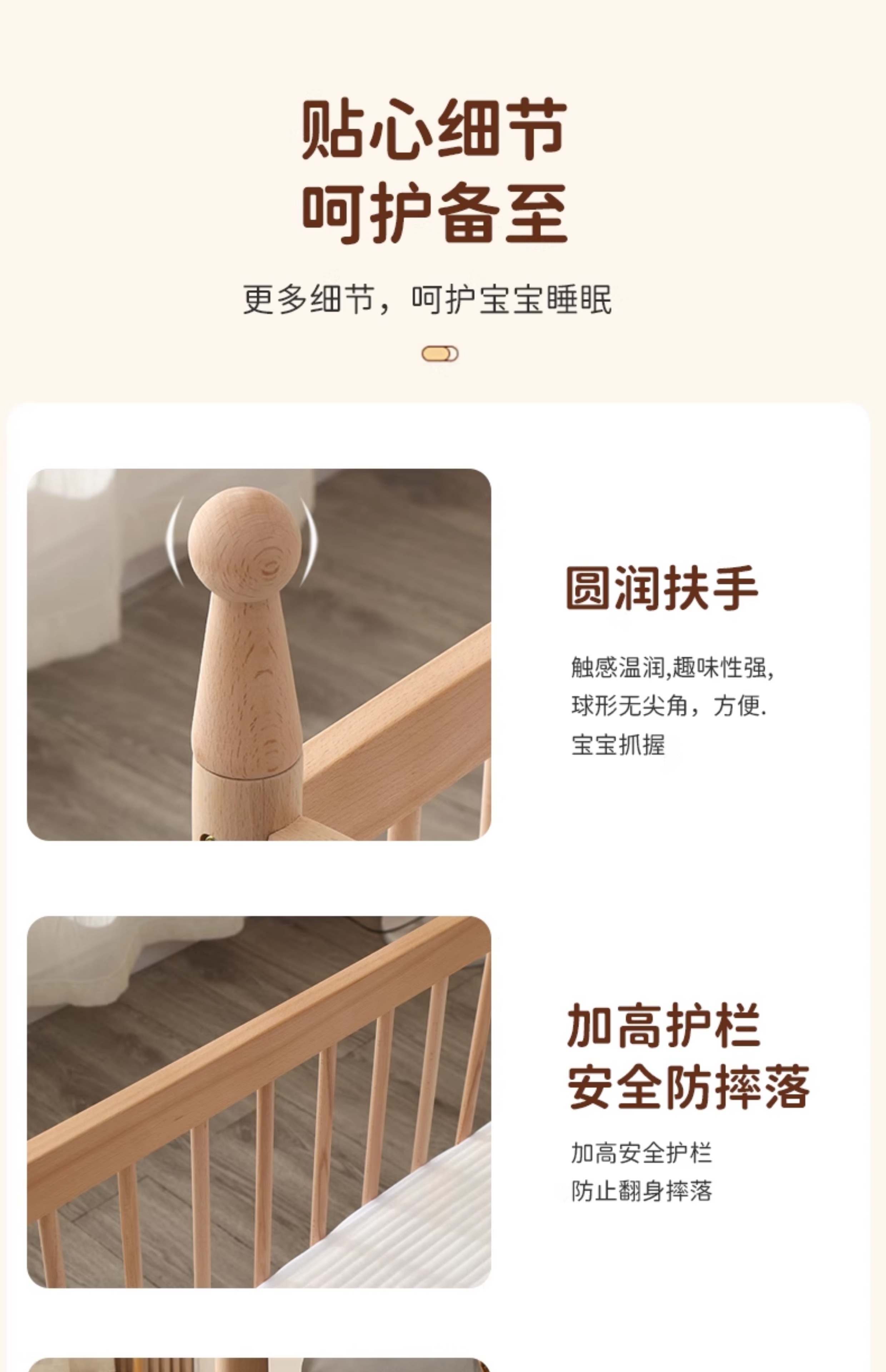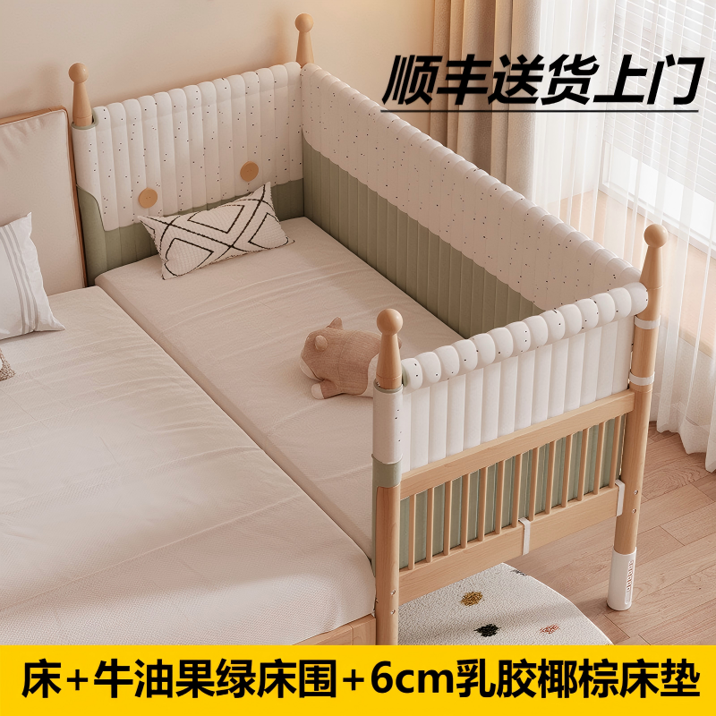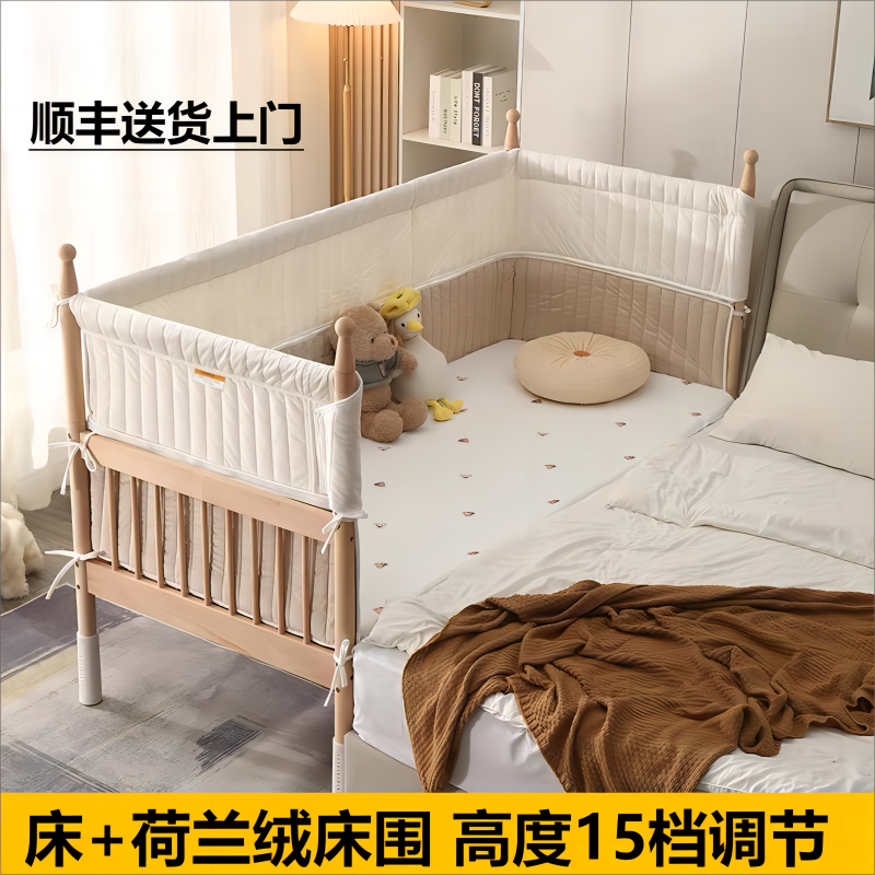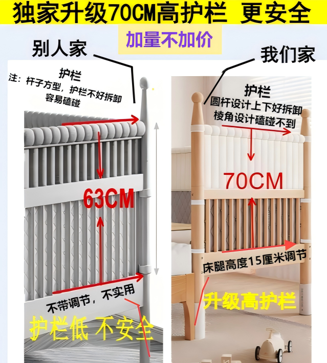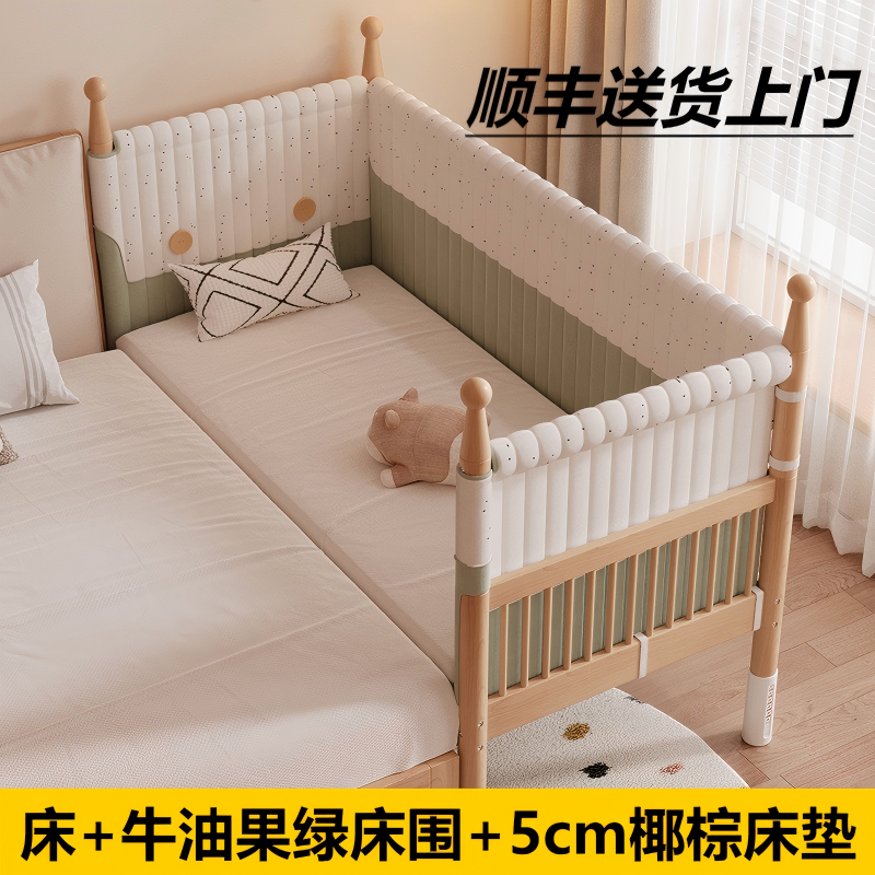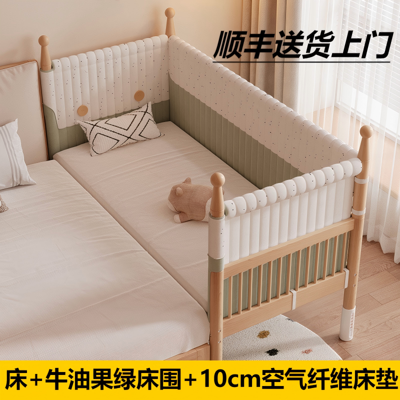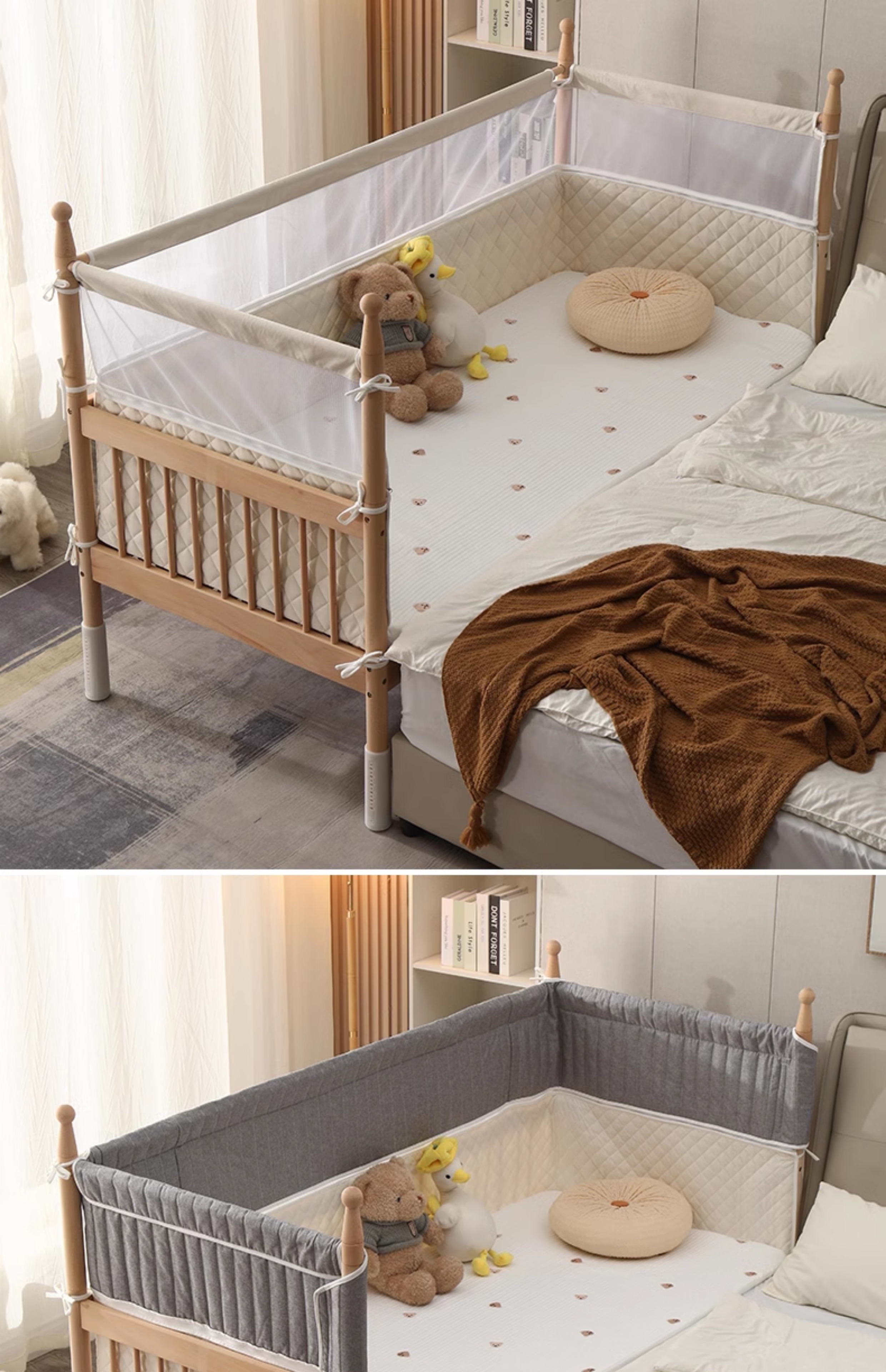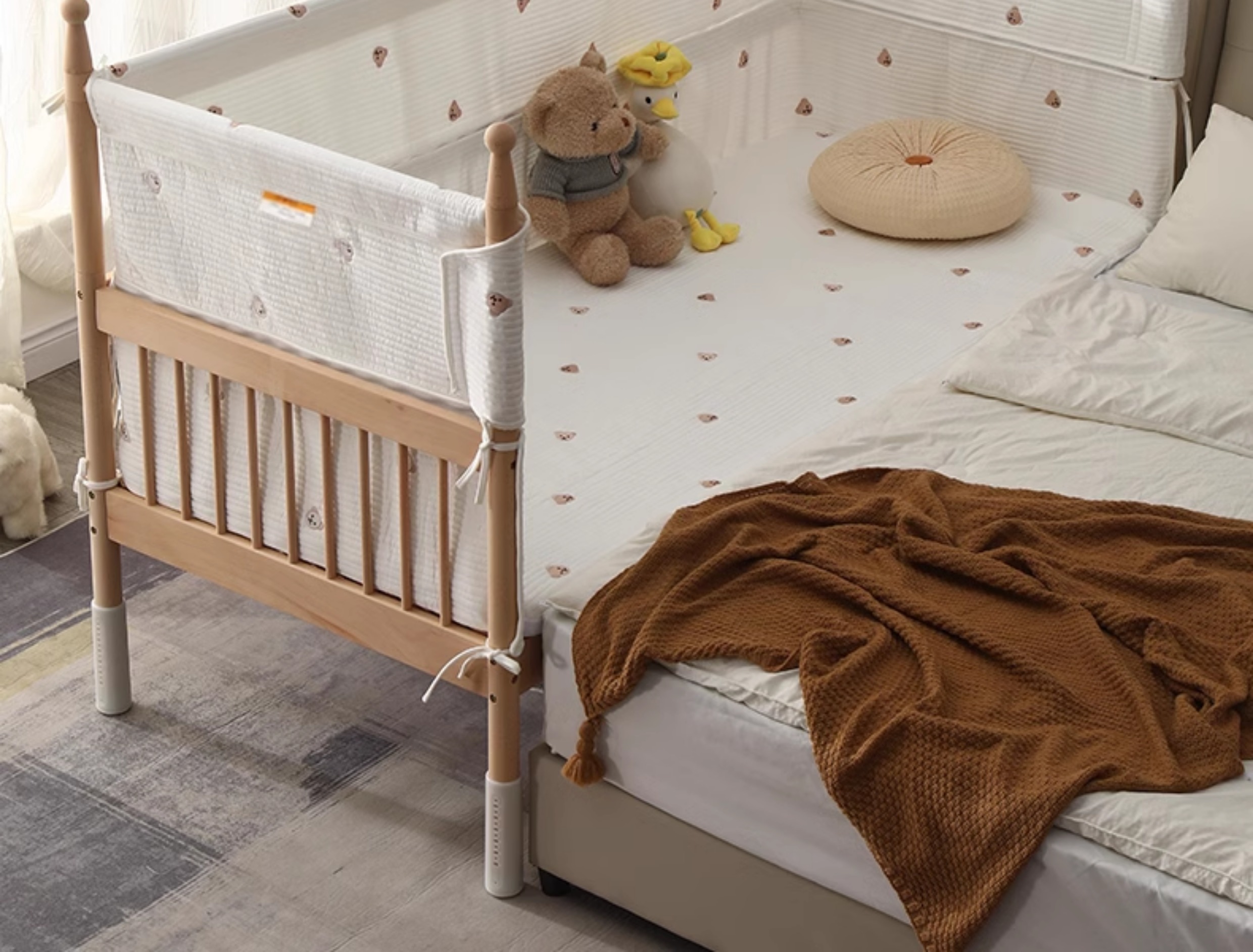 너도밤나무 아기 접합 대형 침대, 침대 옆 리프팅 높이가 조절 가능한 높은 가드레일이 있는 확장형 침대, 어린이 접합 침대