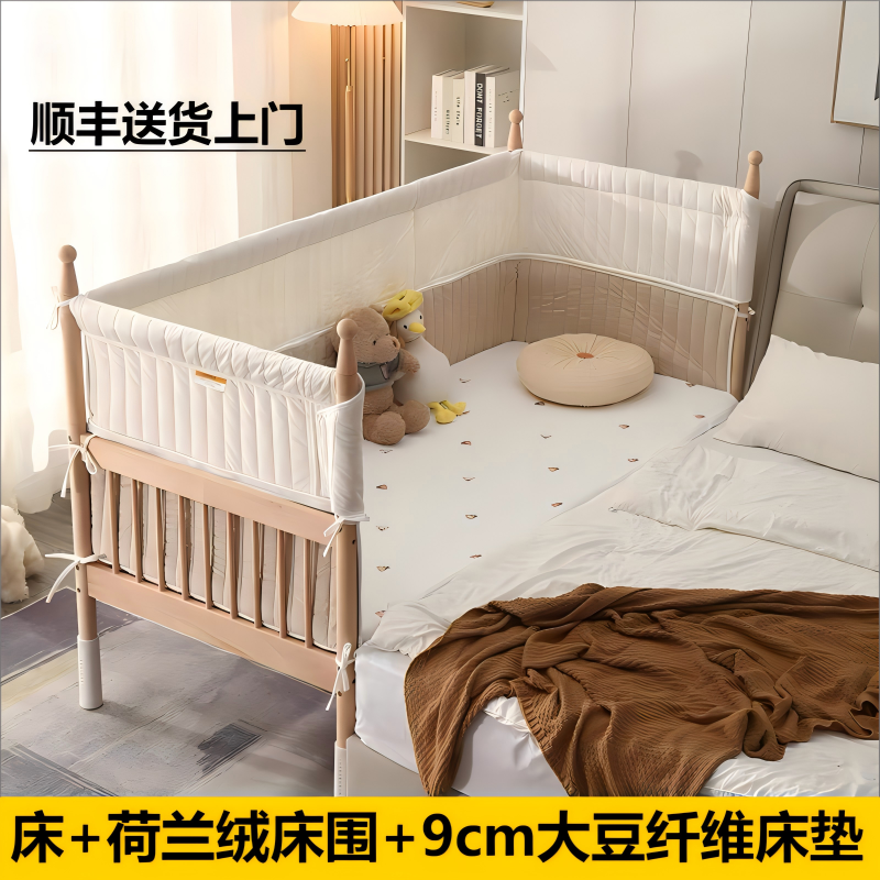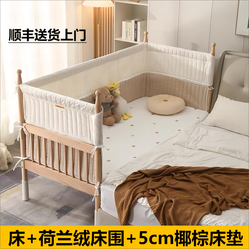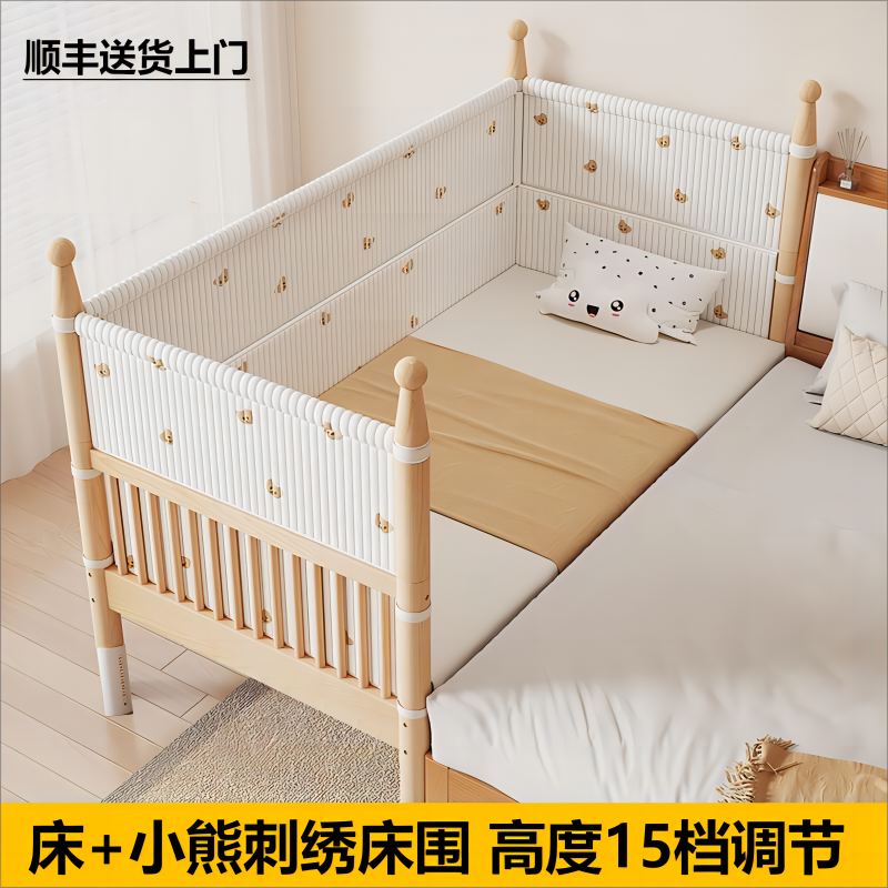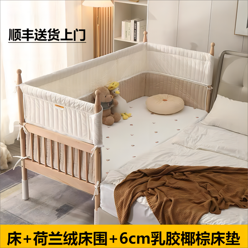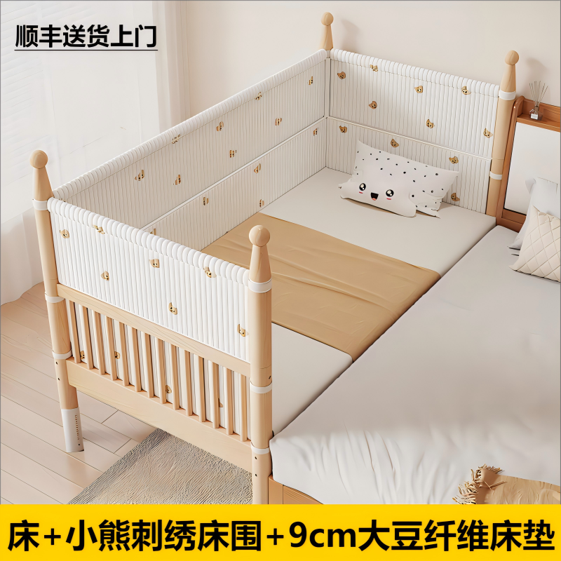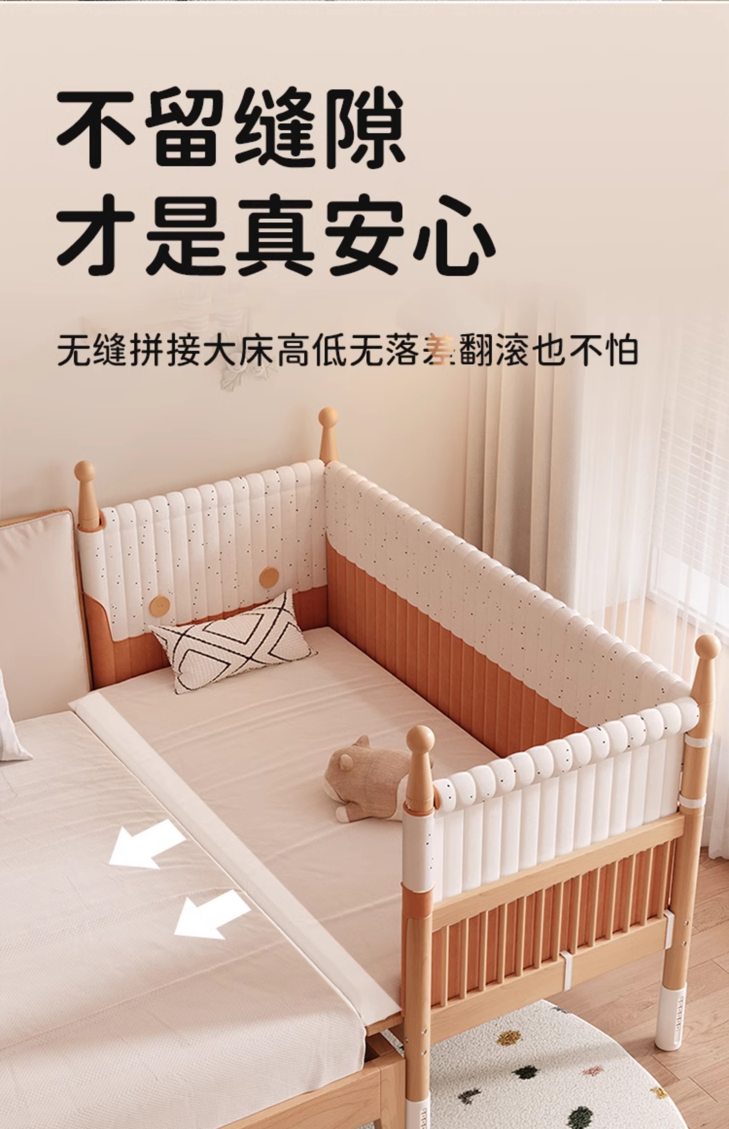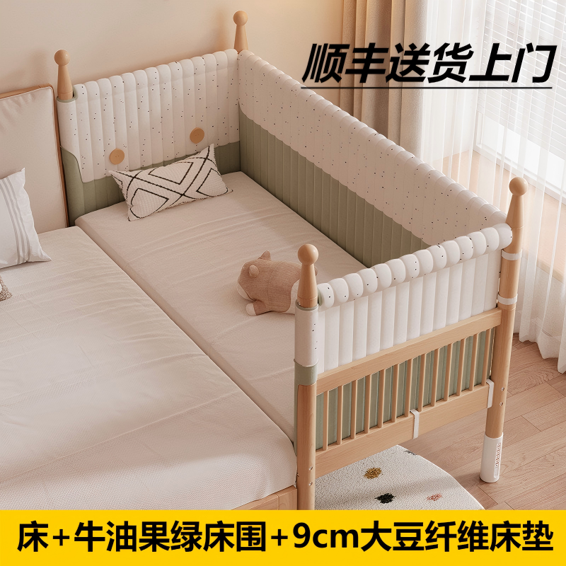너도밤나무 아기 접합 대형 침대, 침대 옆 리프팅 높이가 조절 가능한 높은 가드레일이 있는 확장형 침대, 어린이 접합 침대