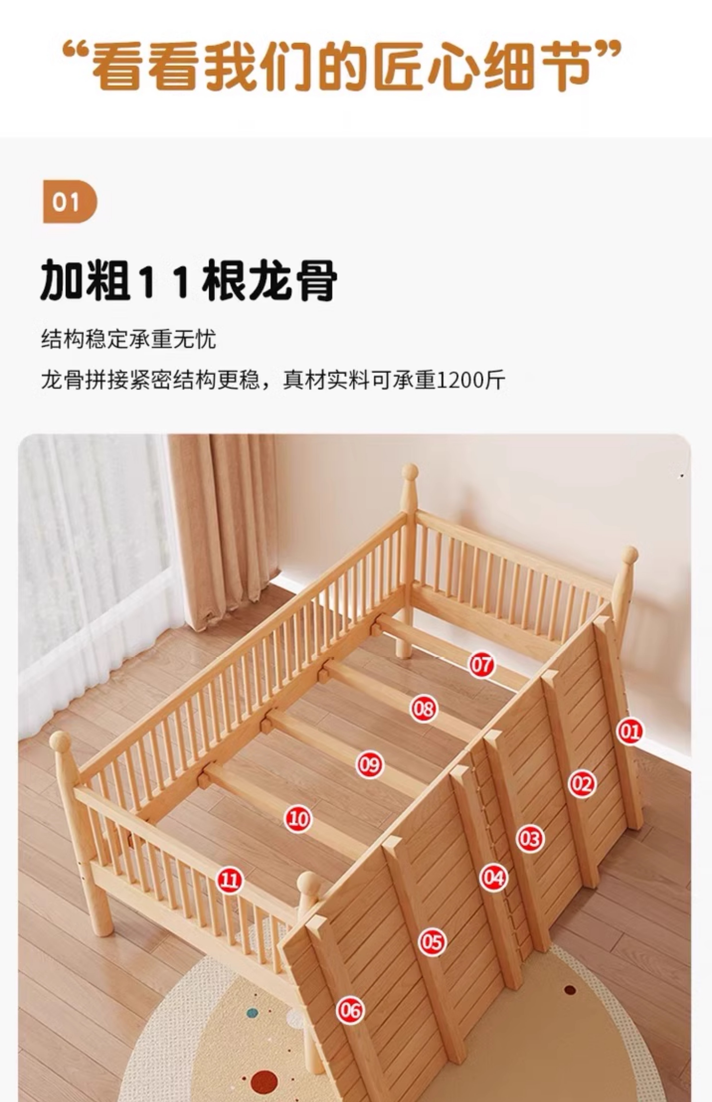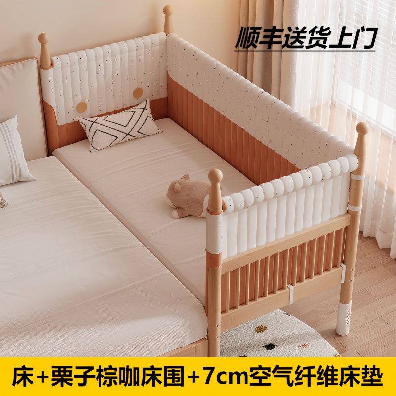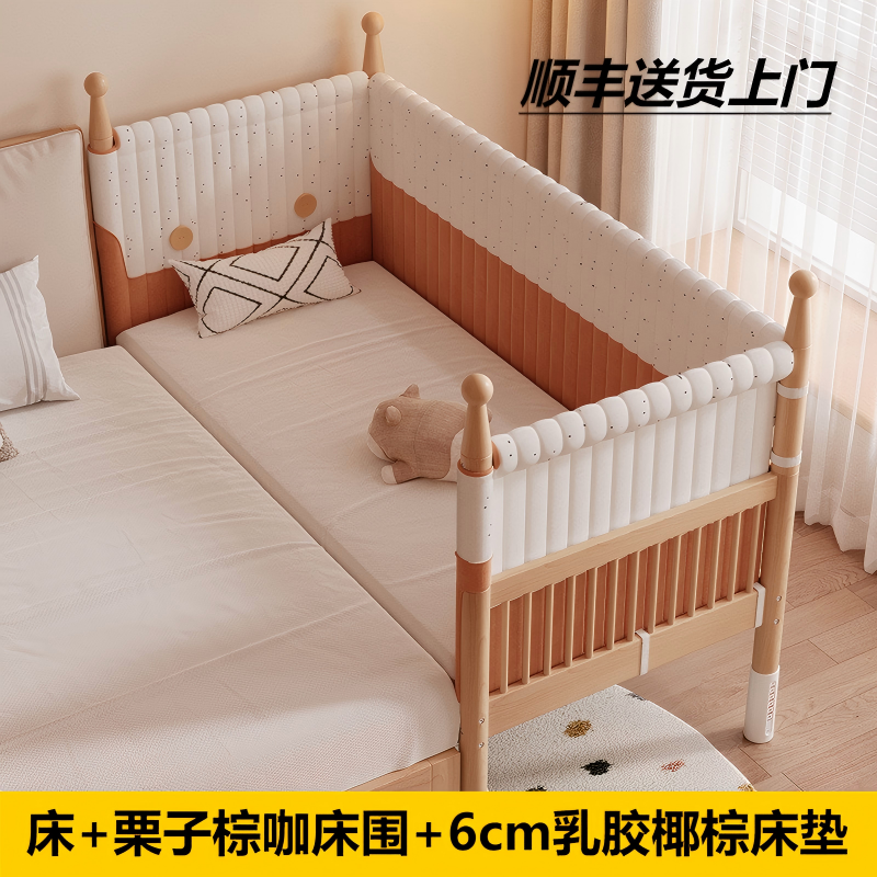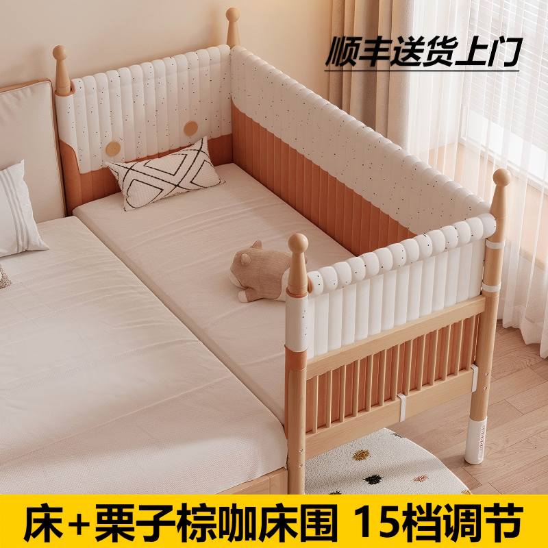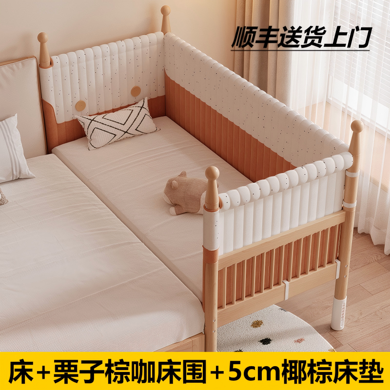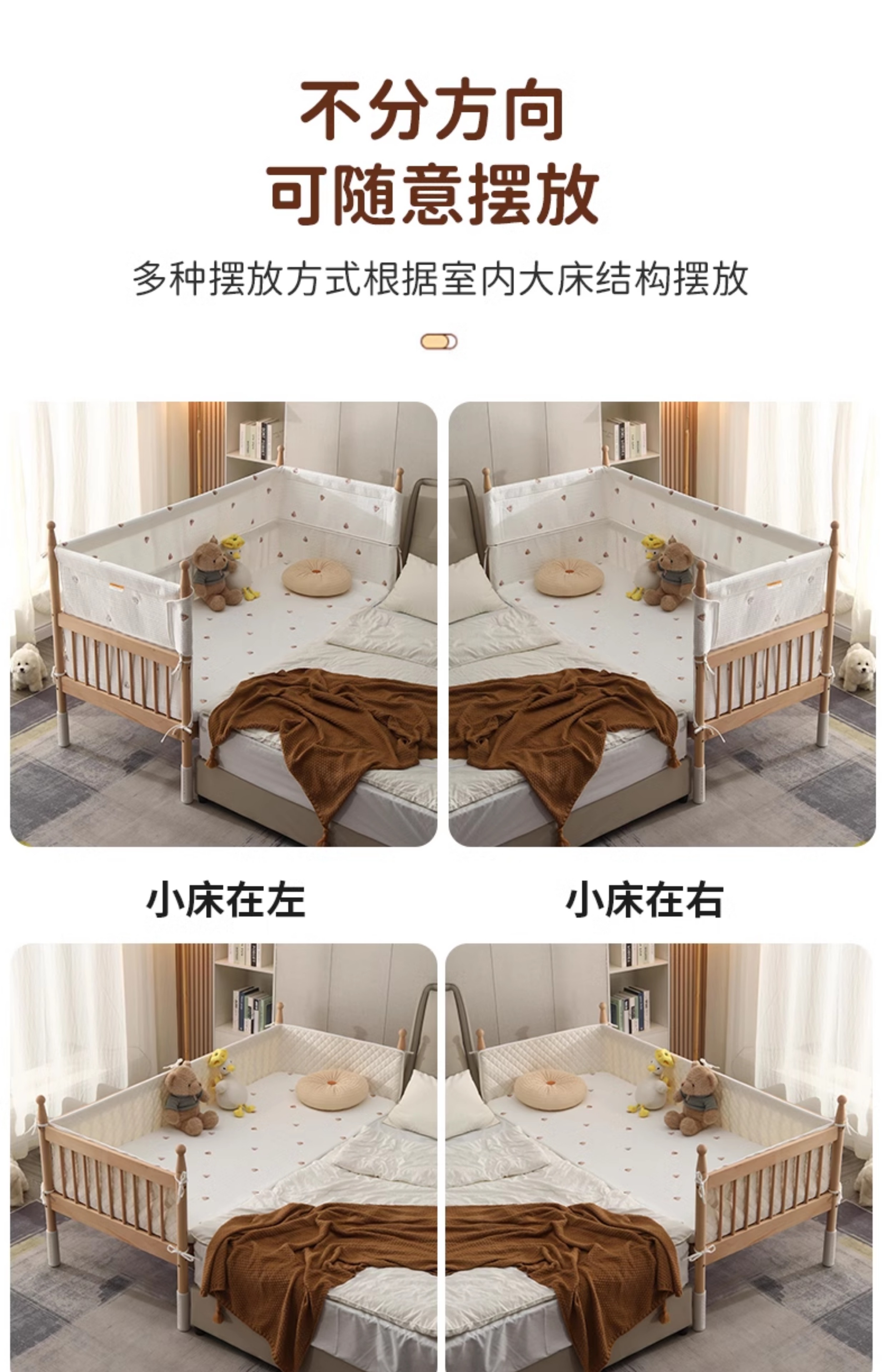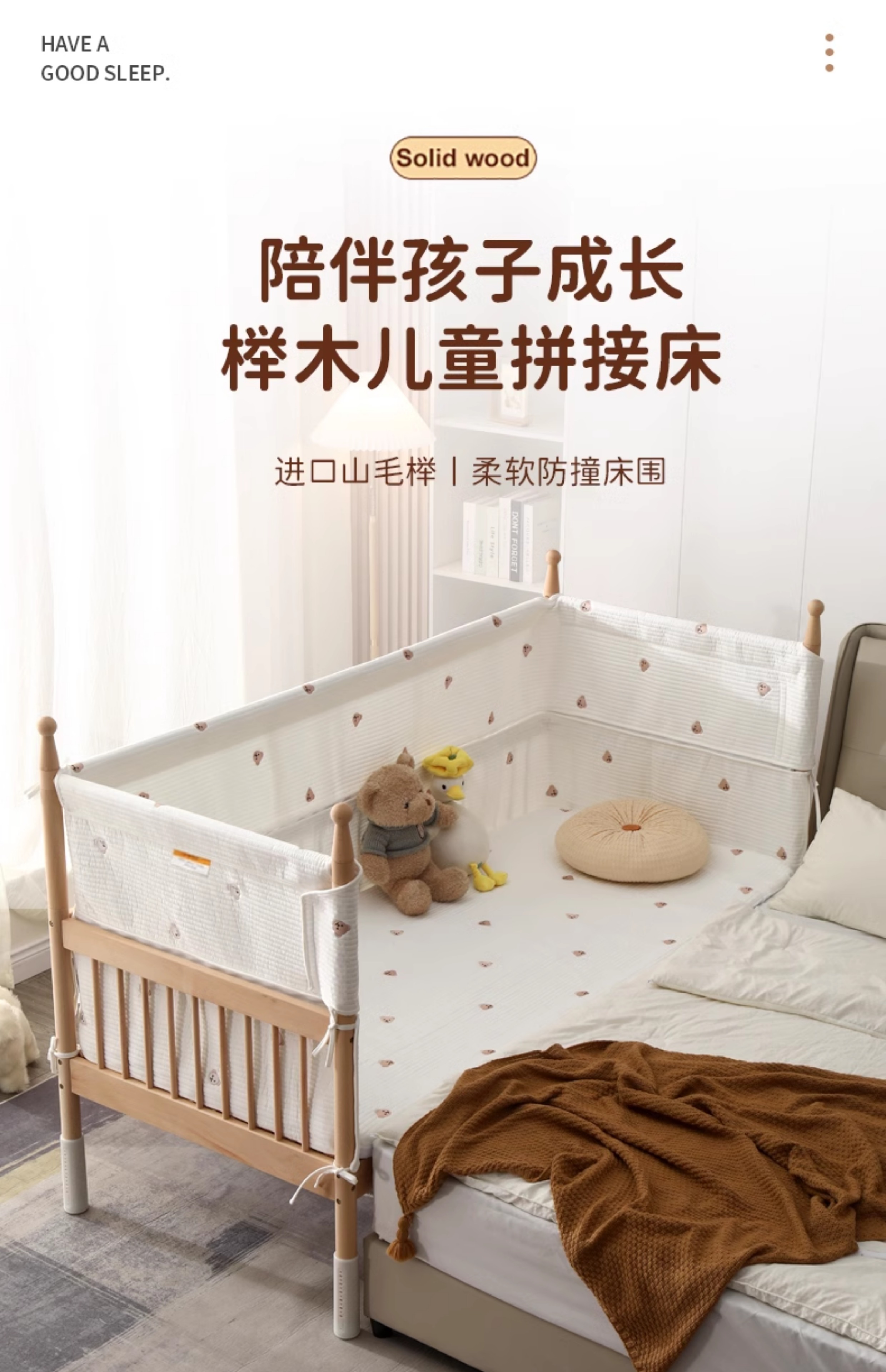 너도밤나무 아기 접합 대형 침대, 침대 옆 리프팅 높이가 조절 가능한 높은 가드레일이 있는 확장형 침대, 어린이 접합 침대스토어 가기