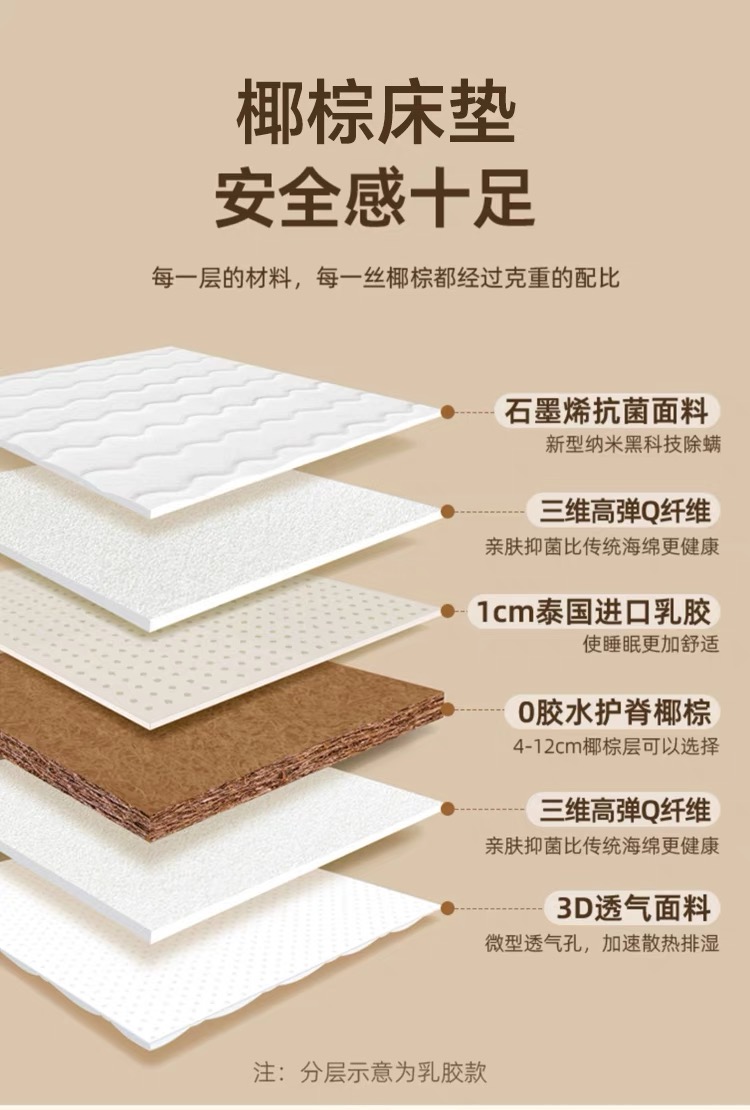 • 침대 + 밤색 갈색 침대 옆 + 5cm 코코넛 야자 매트리스