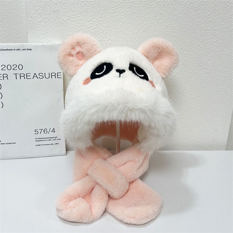 남녀 아기 어린이 모자와 스카프 일체형 가을 겨울 여성용 귀여운 플러시 베어 귀마개 모자