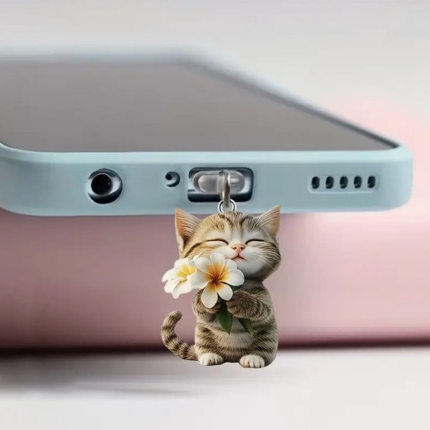 아마존의 새로운 만화 캐릭터 고양이 롤리팝 이미지 아크릴 소재 방수 및 내마모성 휴대폰 먼지 플러그