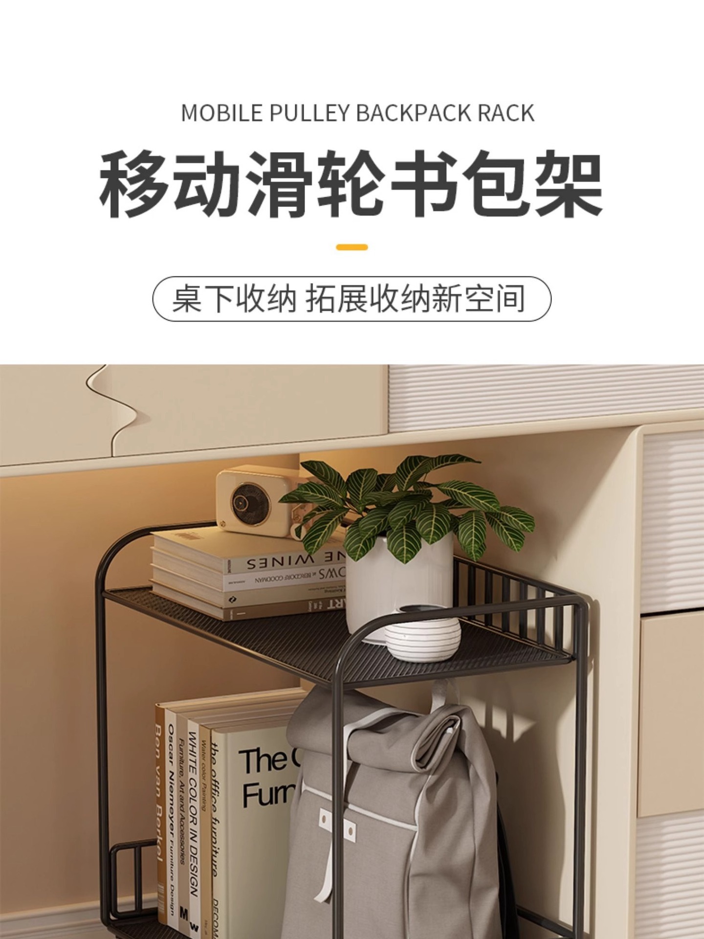 책상 아래에 보관할 수 있는 이동식 책가방 랙, 가정용 책상 보관함, 바퀴 달린 트롤리 책장 보관함