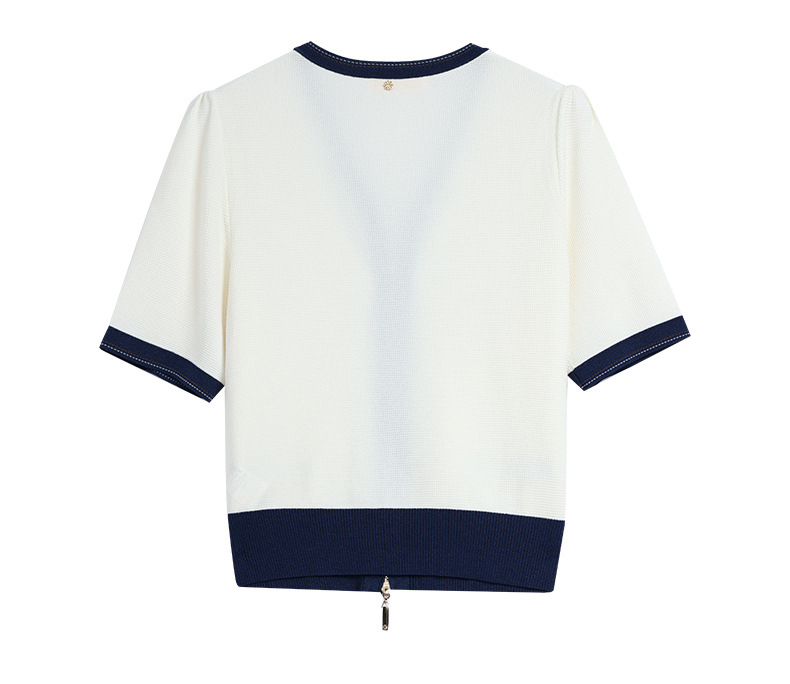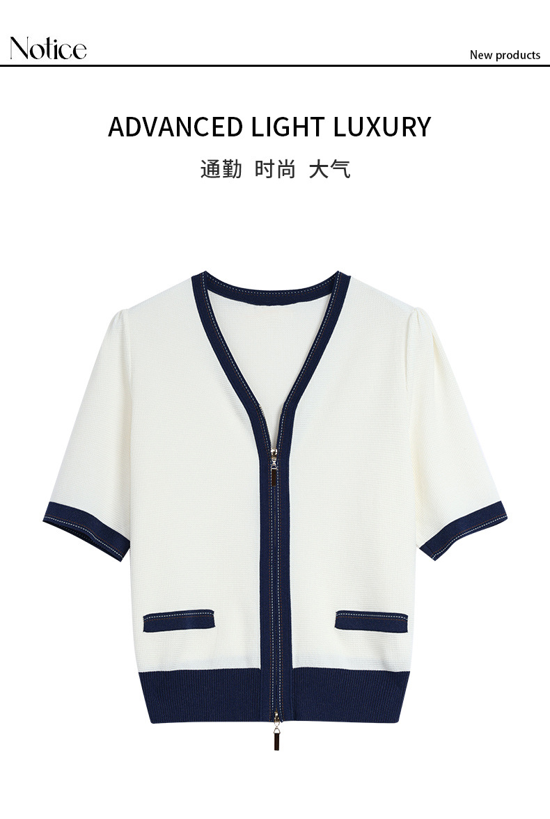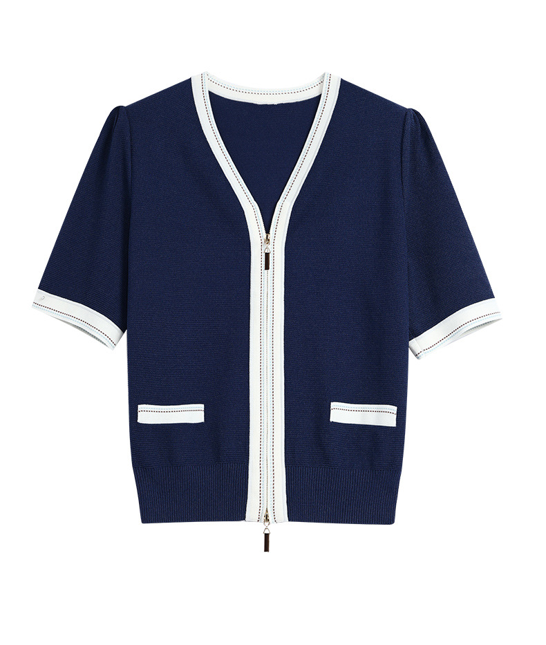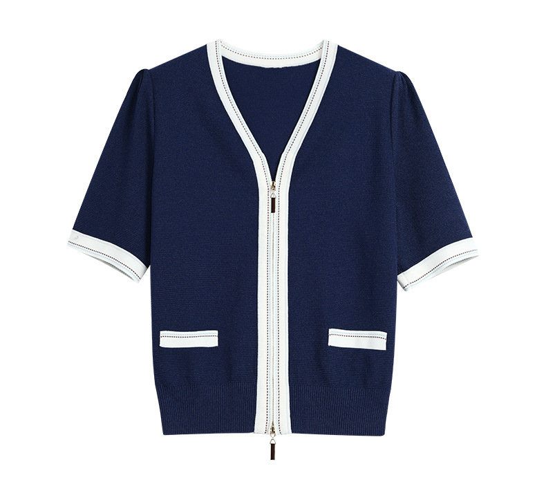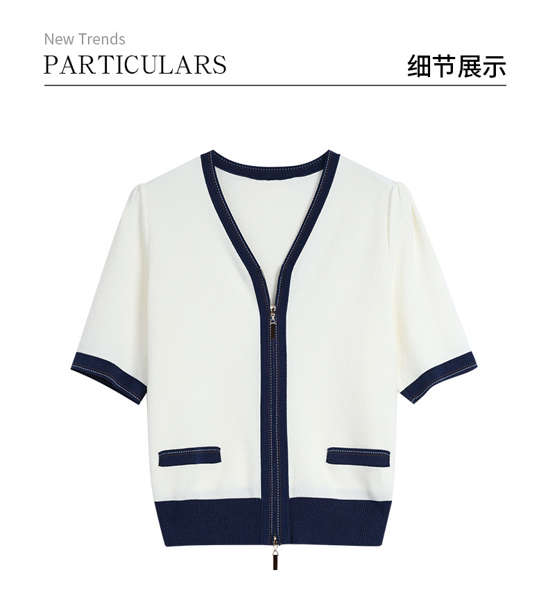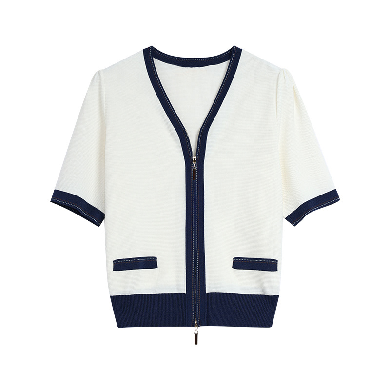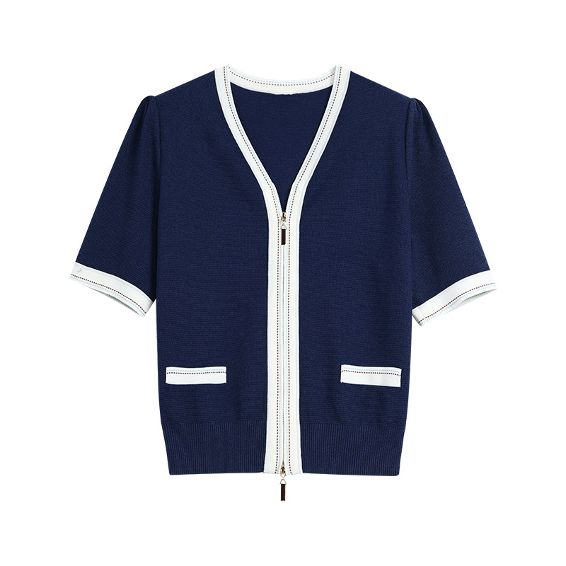 2025 여름 새로운 v 넥 반팔 니트 카디건 여성 프랑스 복고풍 디자인 더블 지퍼 패션 탑