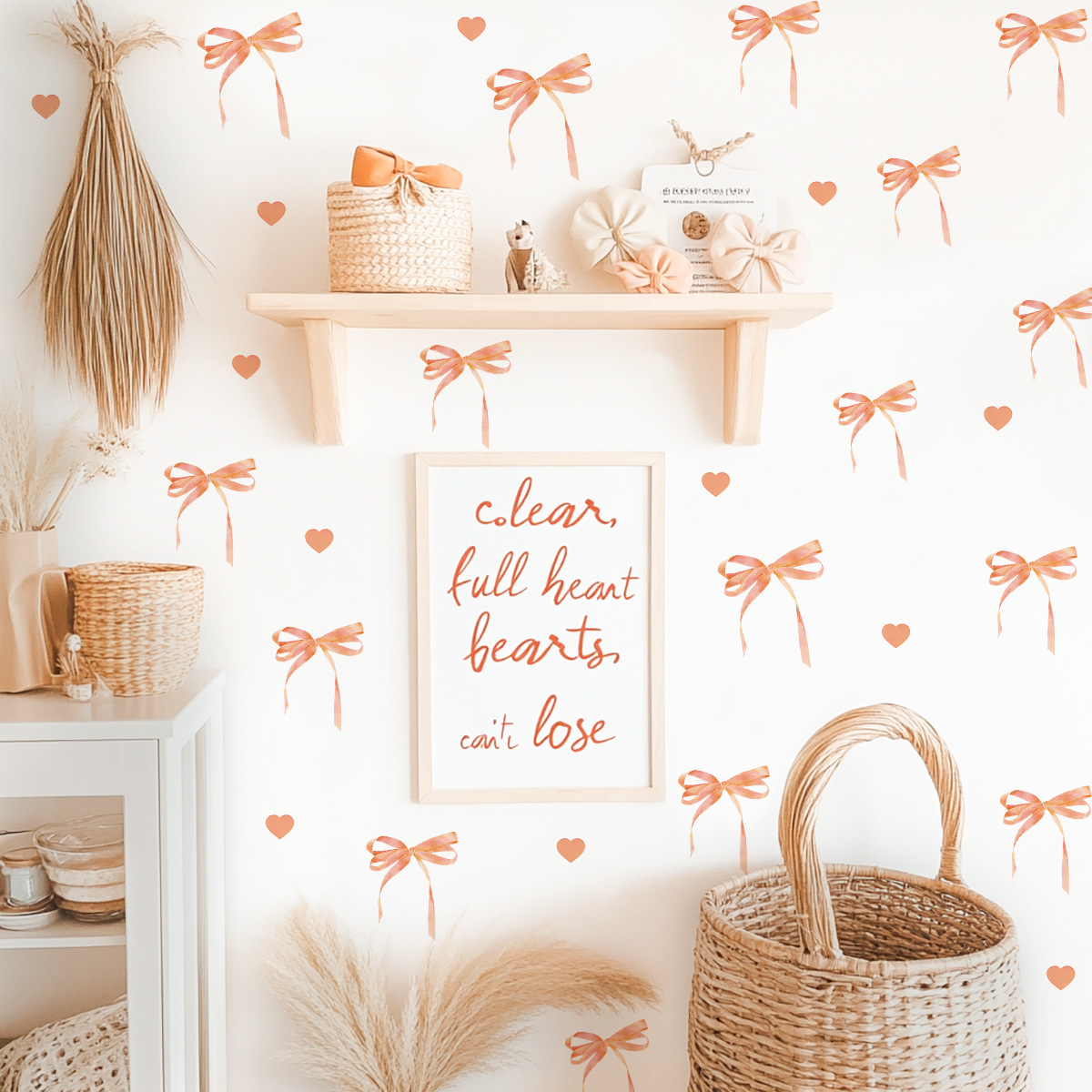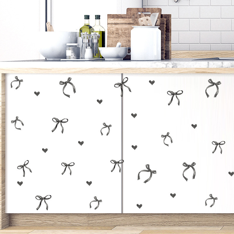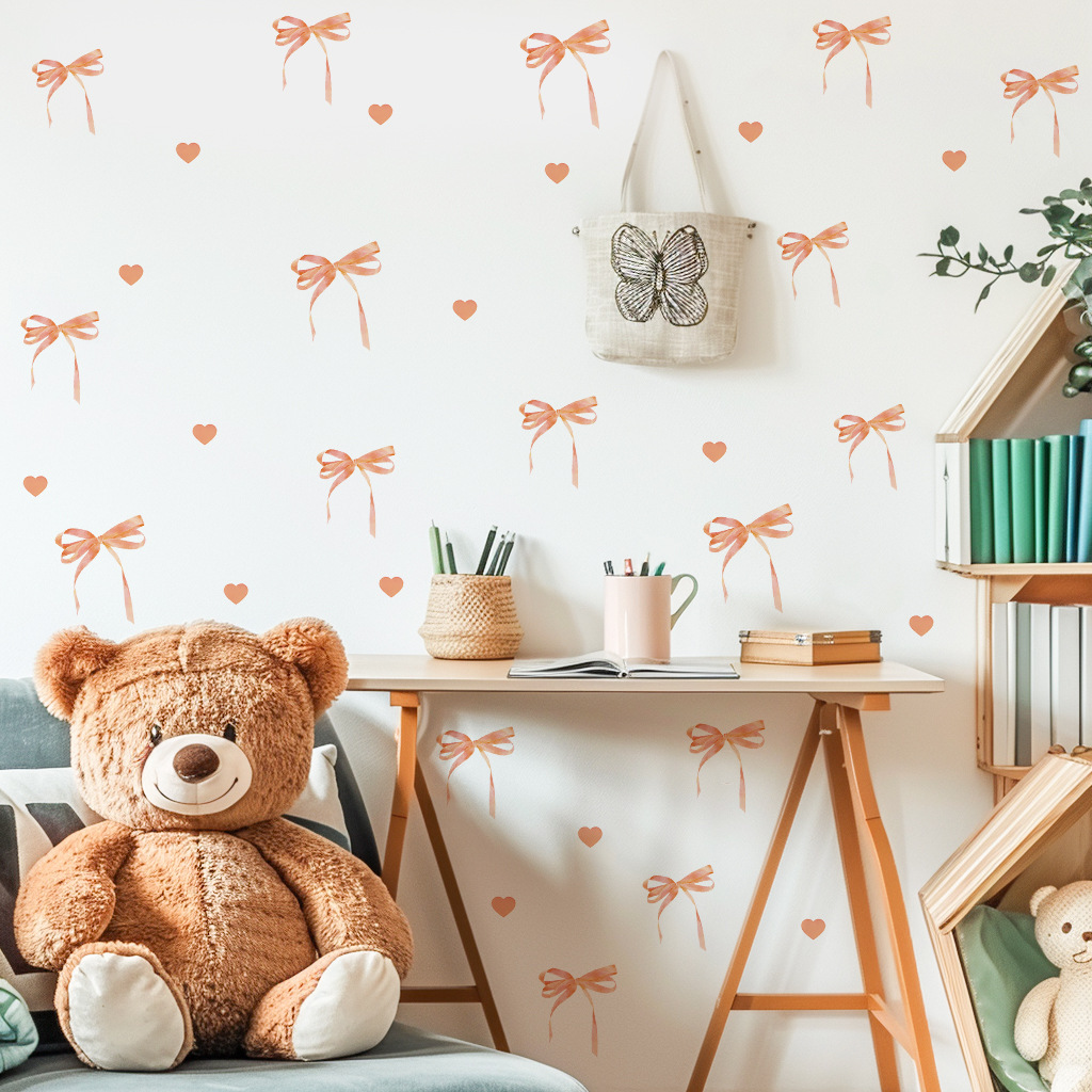 새로운 ACC32127 창의적인 맞춤형 핑크 나비 리본 옷장 스티커 소녀 하트 침실 벽 스티커스토어 가기
