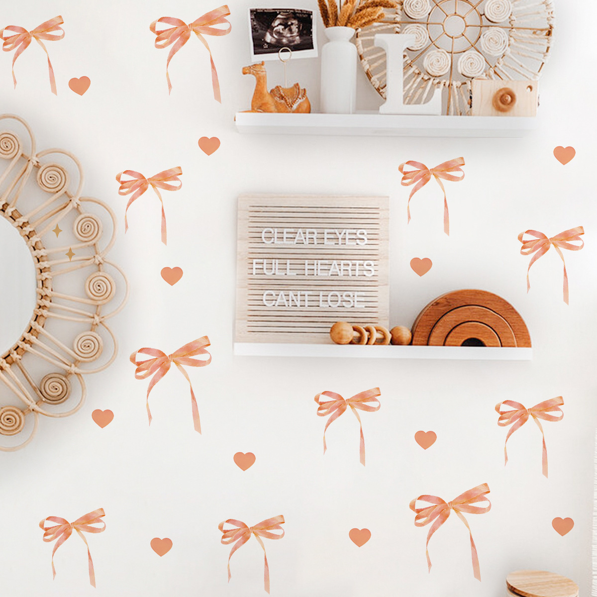 새로운 ACC32127 창의적인 맞춤형 핑크 나비 리본 옷장 스티커 소녀 하트 침실 벽 스티커