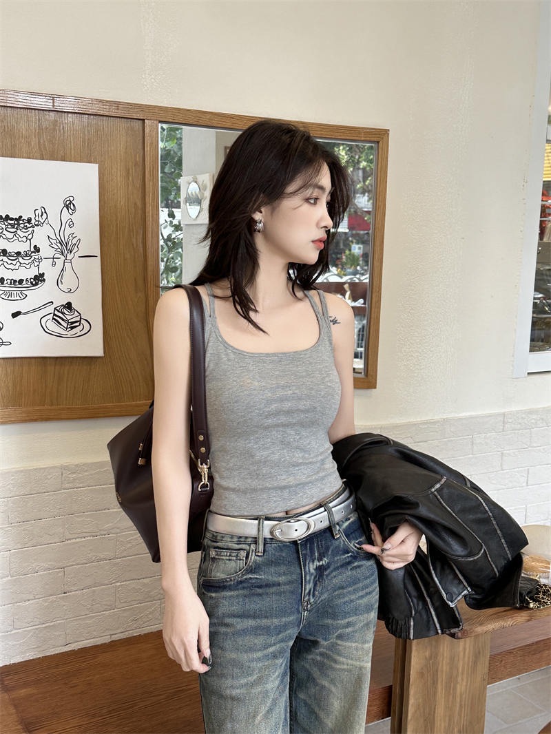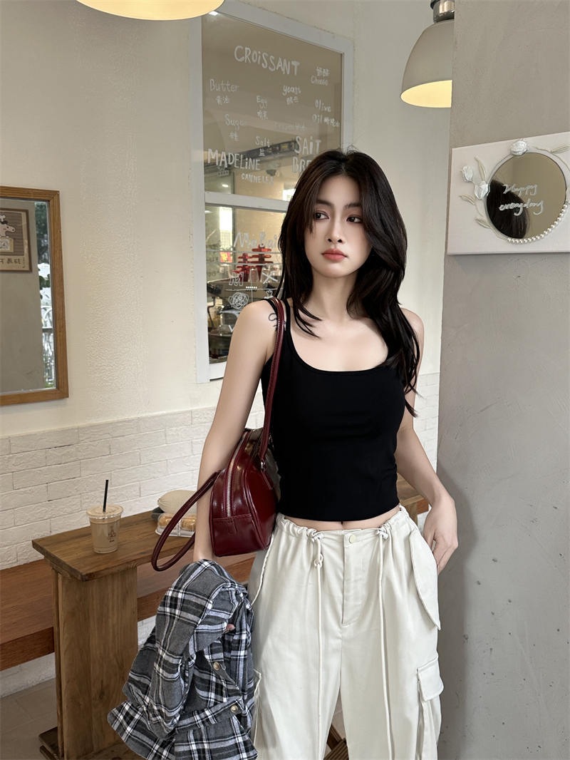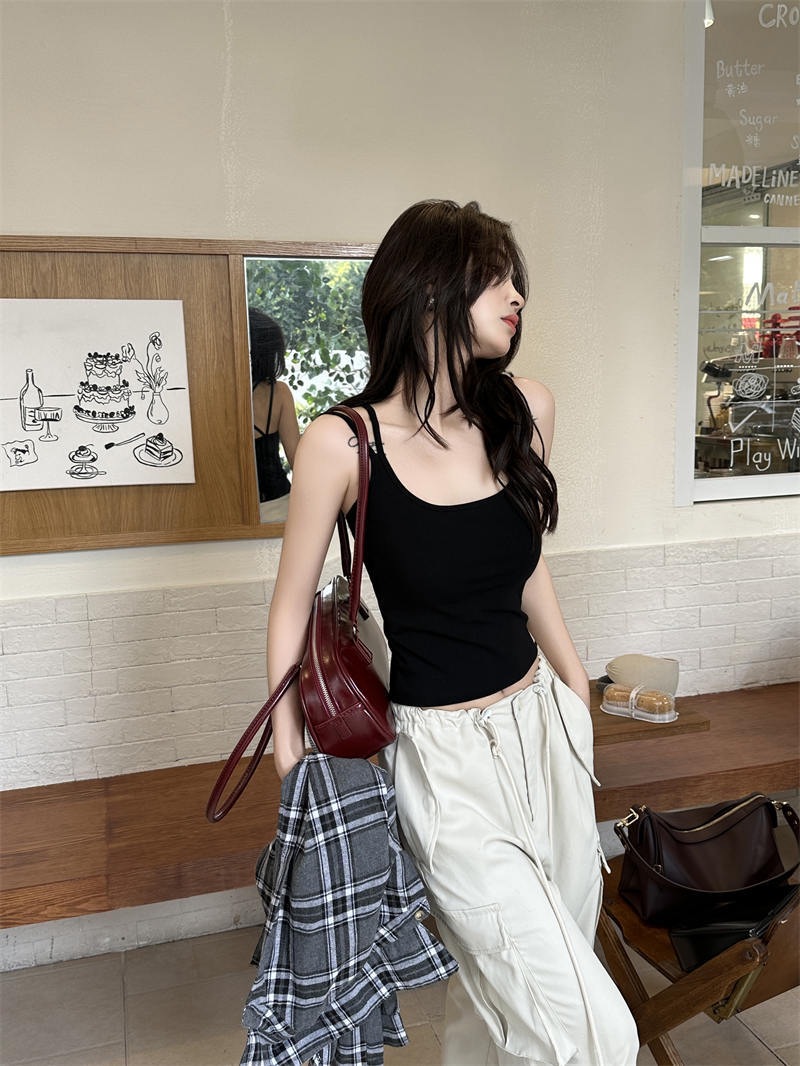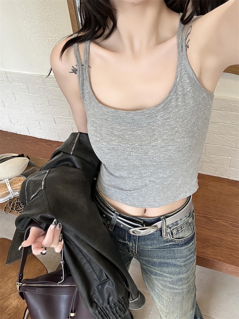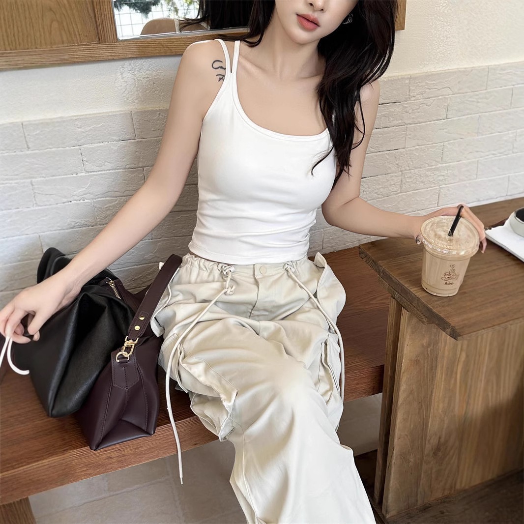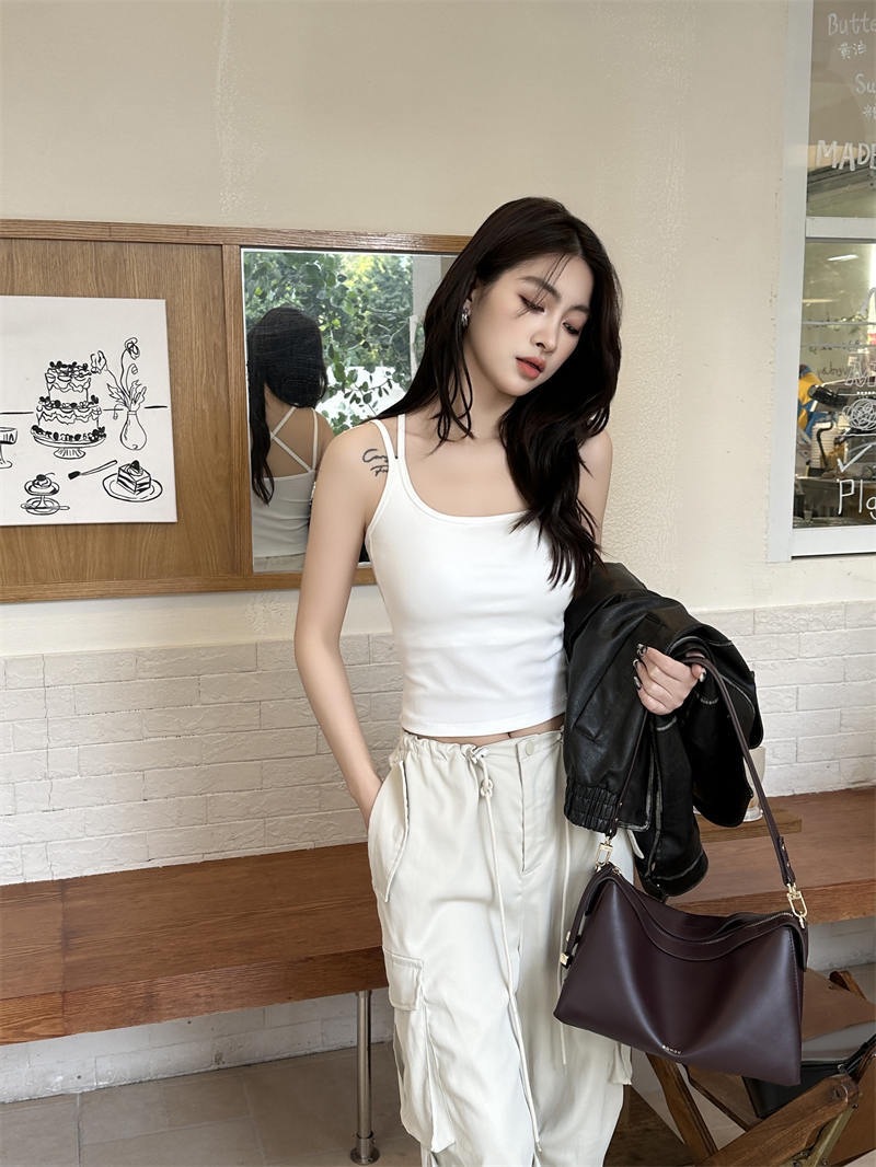 1006 # RC 코튼 캐주얼 다용도 더블 숄더 스트랩 캐미솔 여성용 이너웨어 가슴 패드 포함 아우터웨어 슬림핏 탑스토어 가기