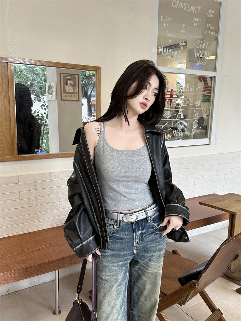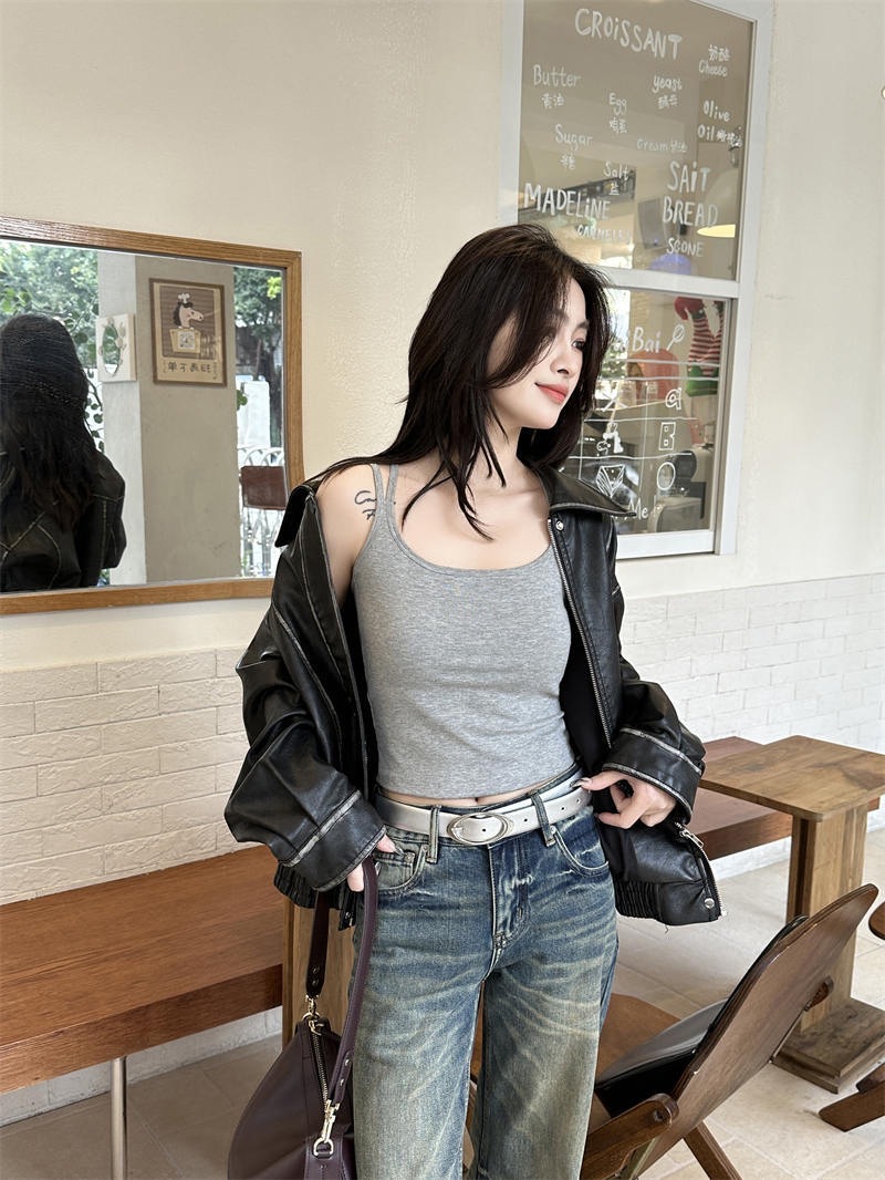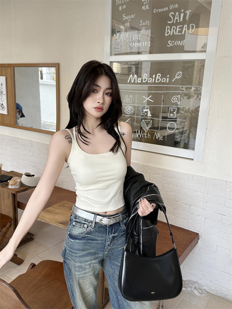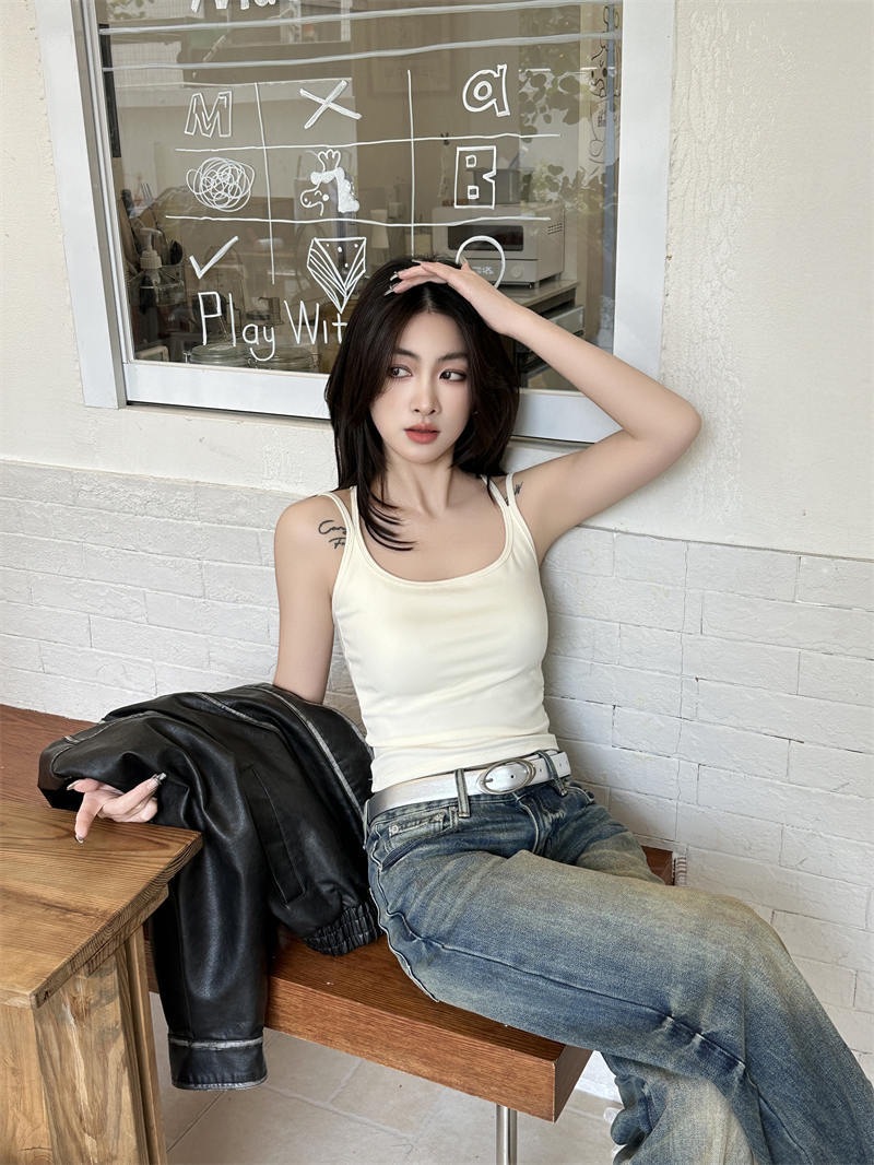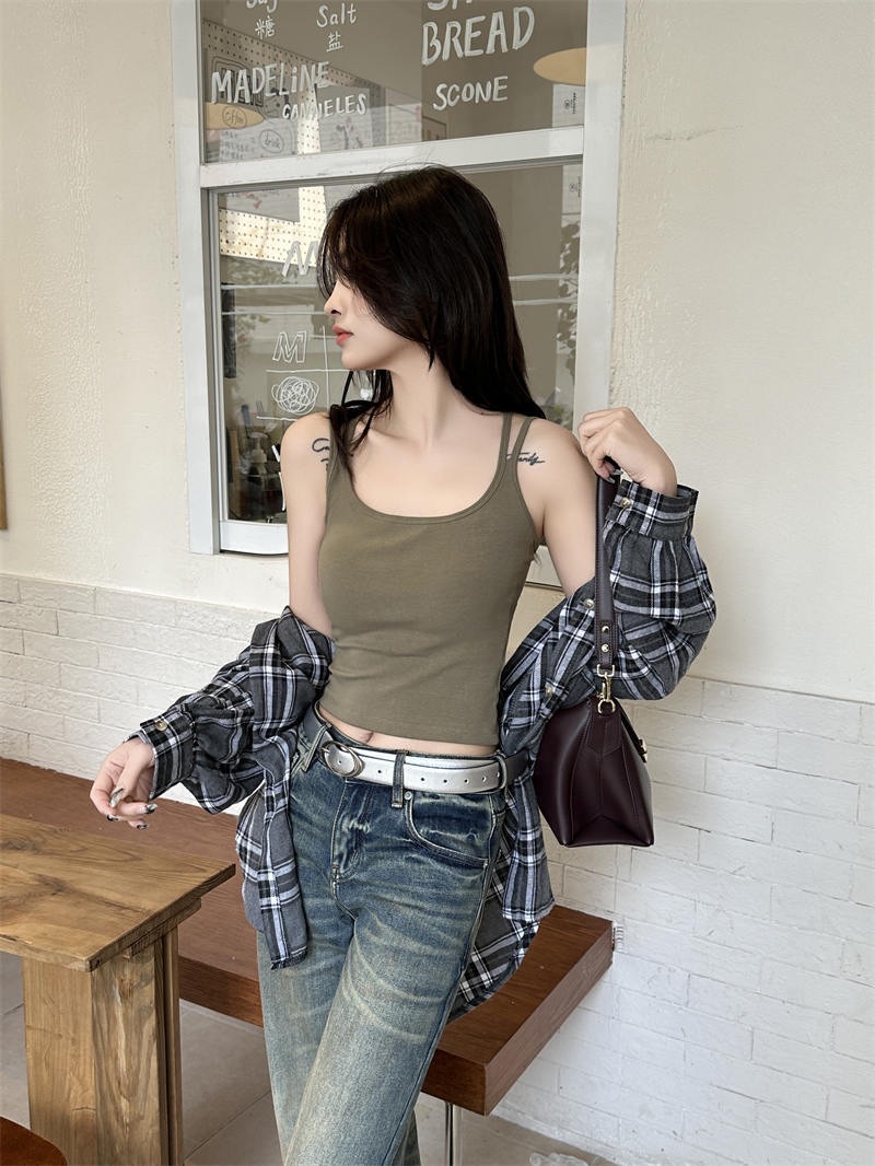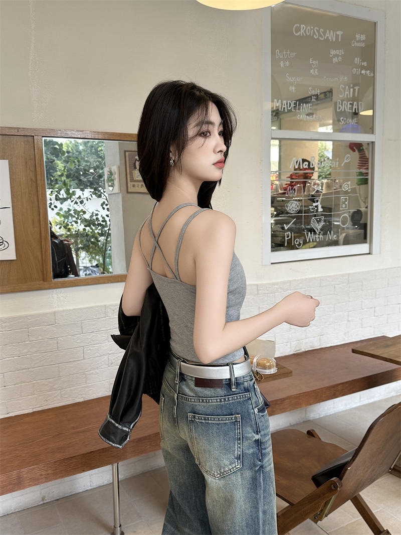 1006 # RC 코튼 캐주얼 다용도 더블 숄더 스트랩 캐미솔 여성용 이너웨어 가슴 패드 포함 아우터웨어 슬림핏 탑스토어 가기