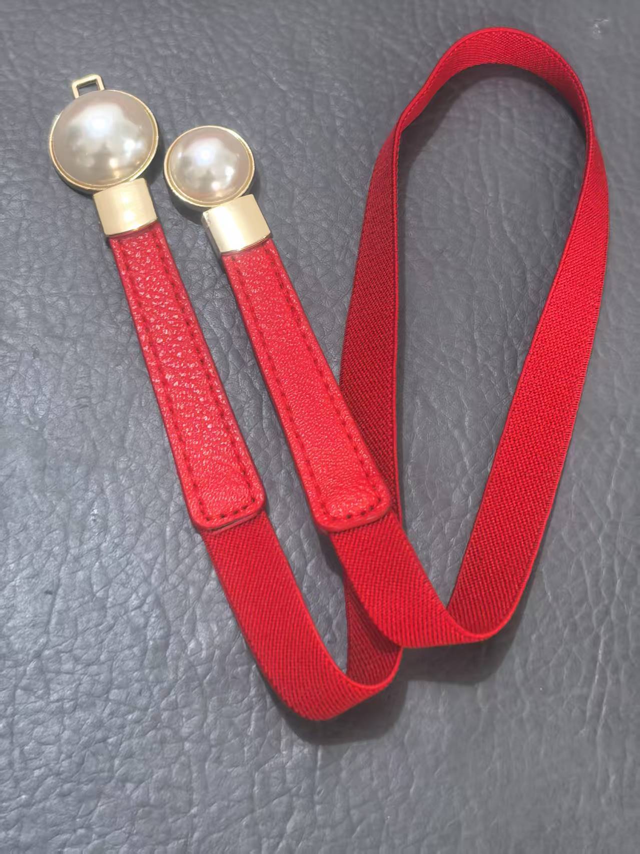 진주 버클 여성용 신축성 허리띠 패션 얇은 스타일 허리끈 다섯 가지 색상 선택 가능 한국 스타일 허리 조임띠