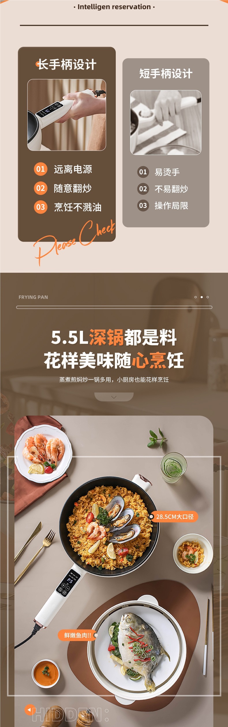• 5.6L 따뜻한 커피색 [스마트 터치 버전] + 찜기 4~8인용