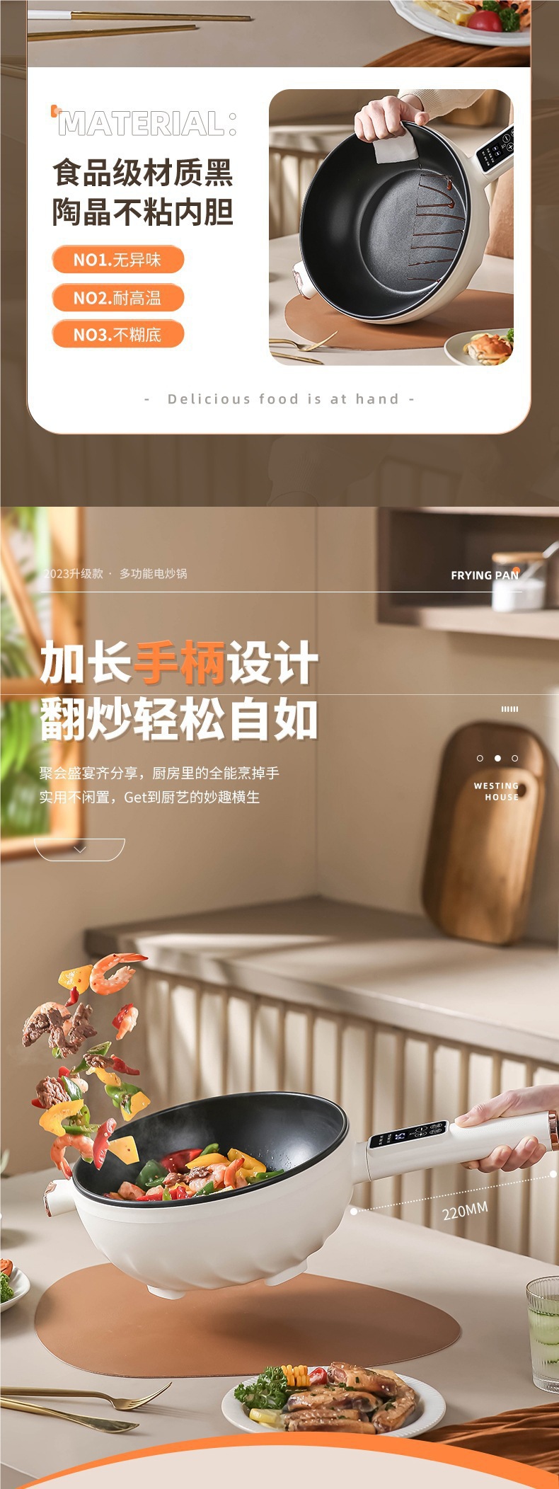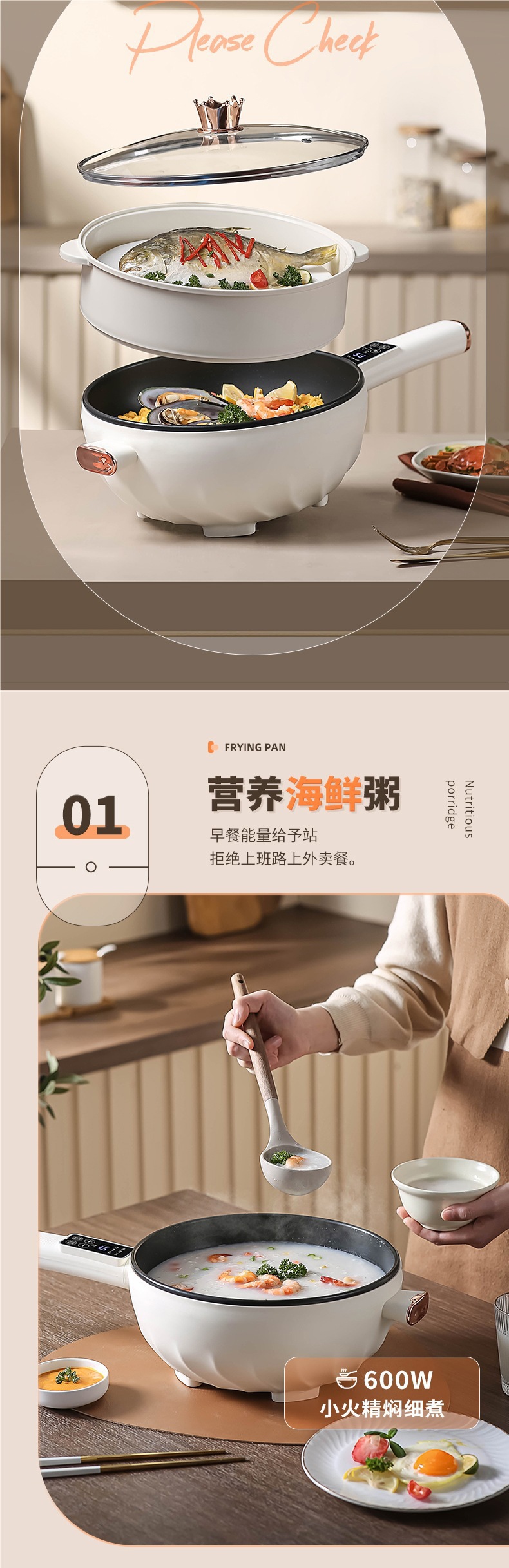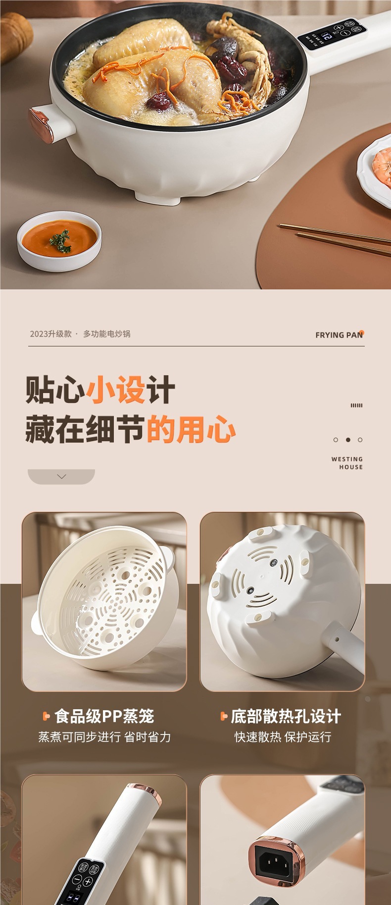 인기 판매 전기 요리 냄비 다기능 가정용 찜, 튀김 및 볶음 올인원 전기 냄비 기숙사 소형 전기 요리 냄비