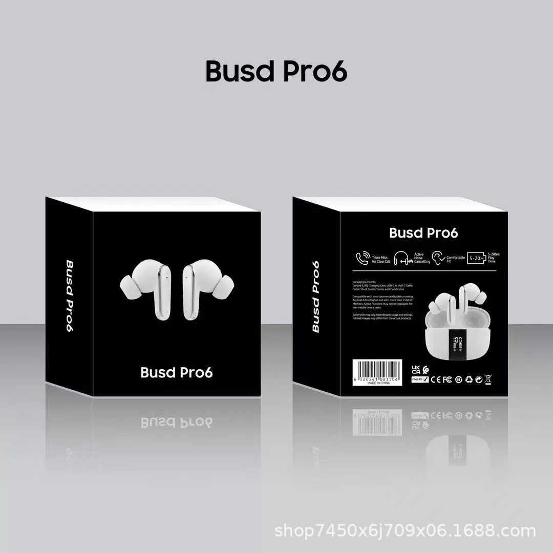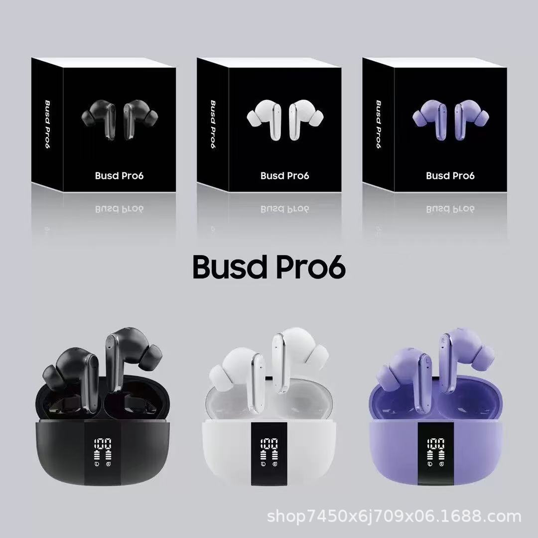 새로운 Busd Pro6 블루투스 헤드셋 스테레오 디지털 디스플레이 스포츠 패션 TWS 무선 이어 버드 공장 도매스토어 가기