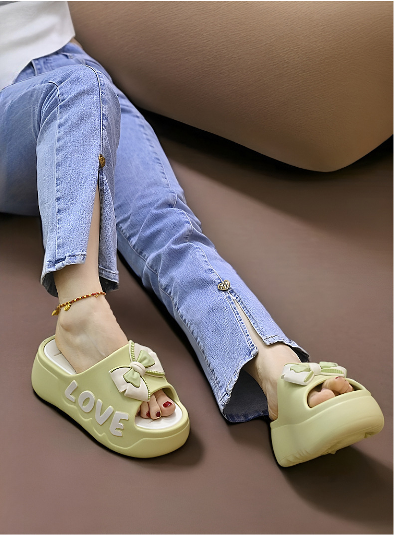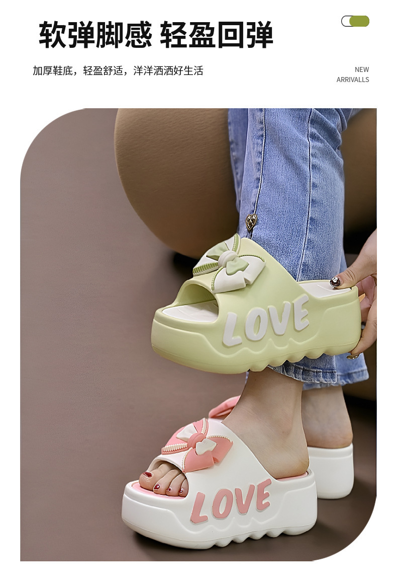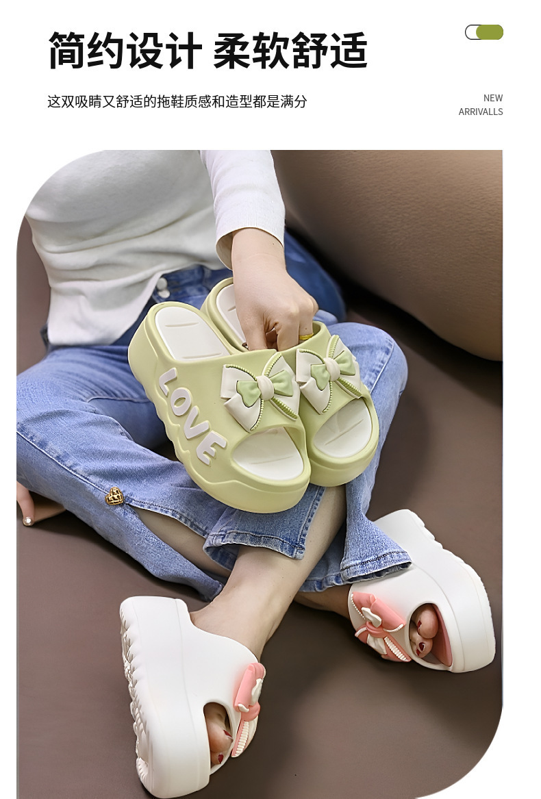 여성용 두꺼운 밑창 슬리퍼, 여름 하이힐, 실내 홈 패션, 리본 다용도 샌들, 여름 키높이, 미끄럼 방지 아우터웨어