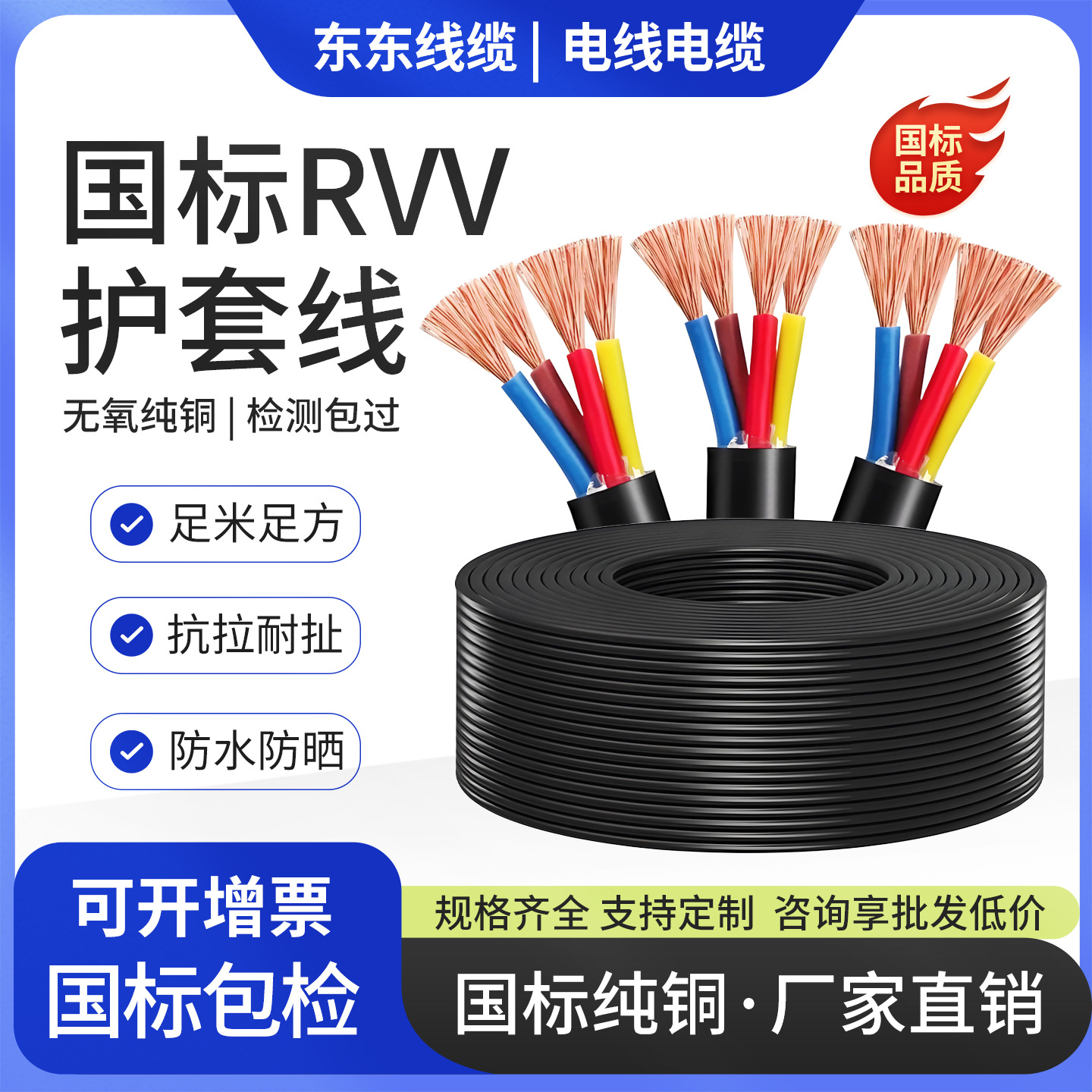 국가 표준 RVV 구리 코어 케이블 2 3 4 코어 * 1 1.5 2.5 4 평방 전원 외장 와이어 방수 제어 와이어스토어 가기