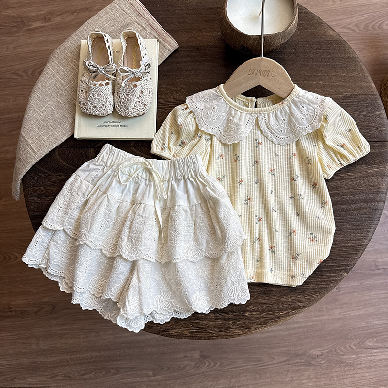 숲 소녀 정장 여름 2025 새로운 아기 소녀 반바지 얇은 어린이 여름 옷 소녀 반팔 티셔츠