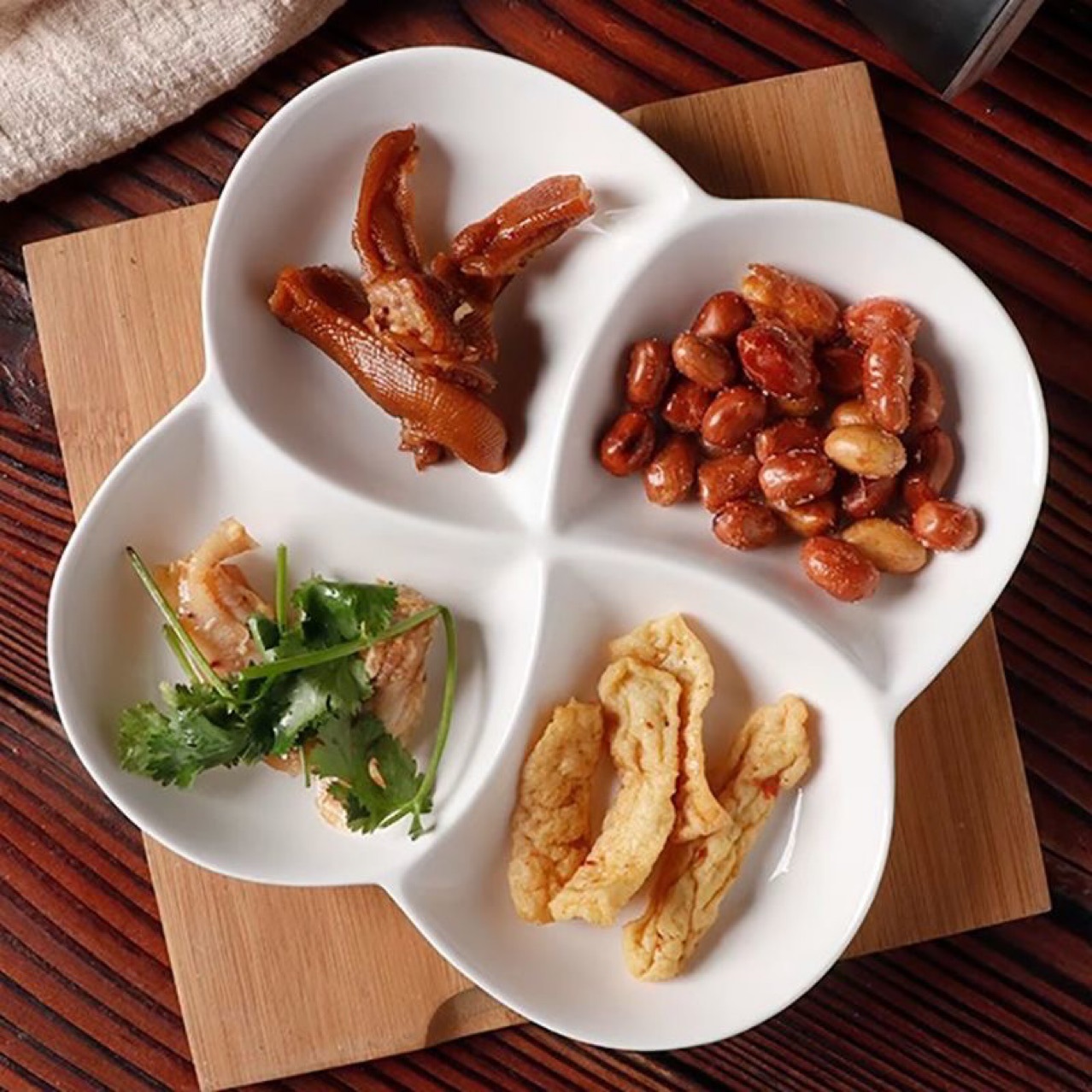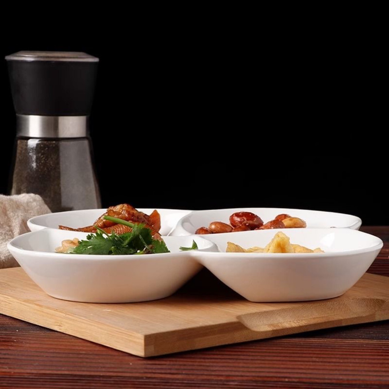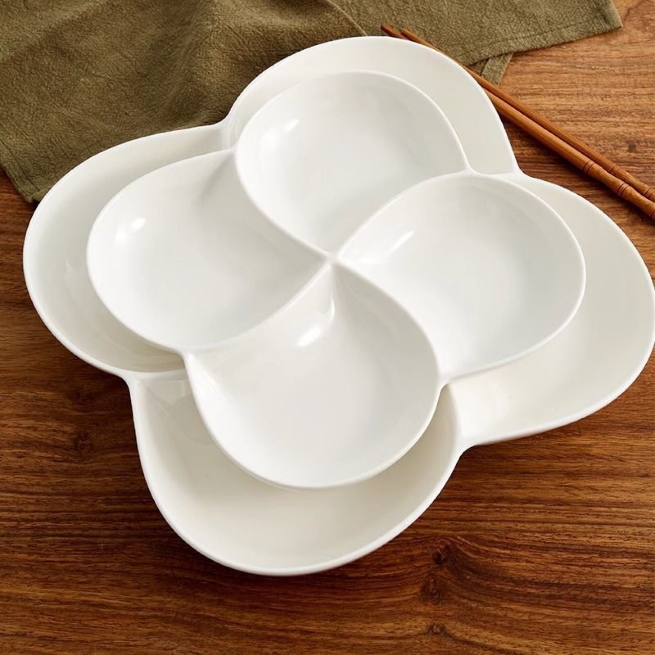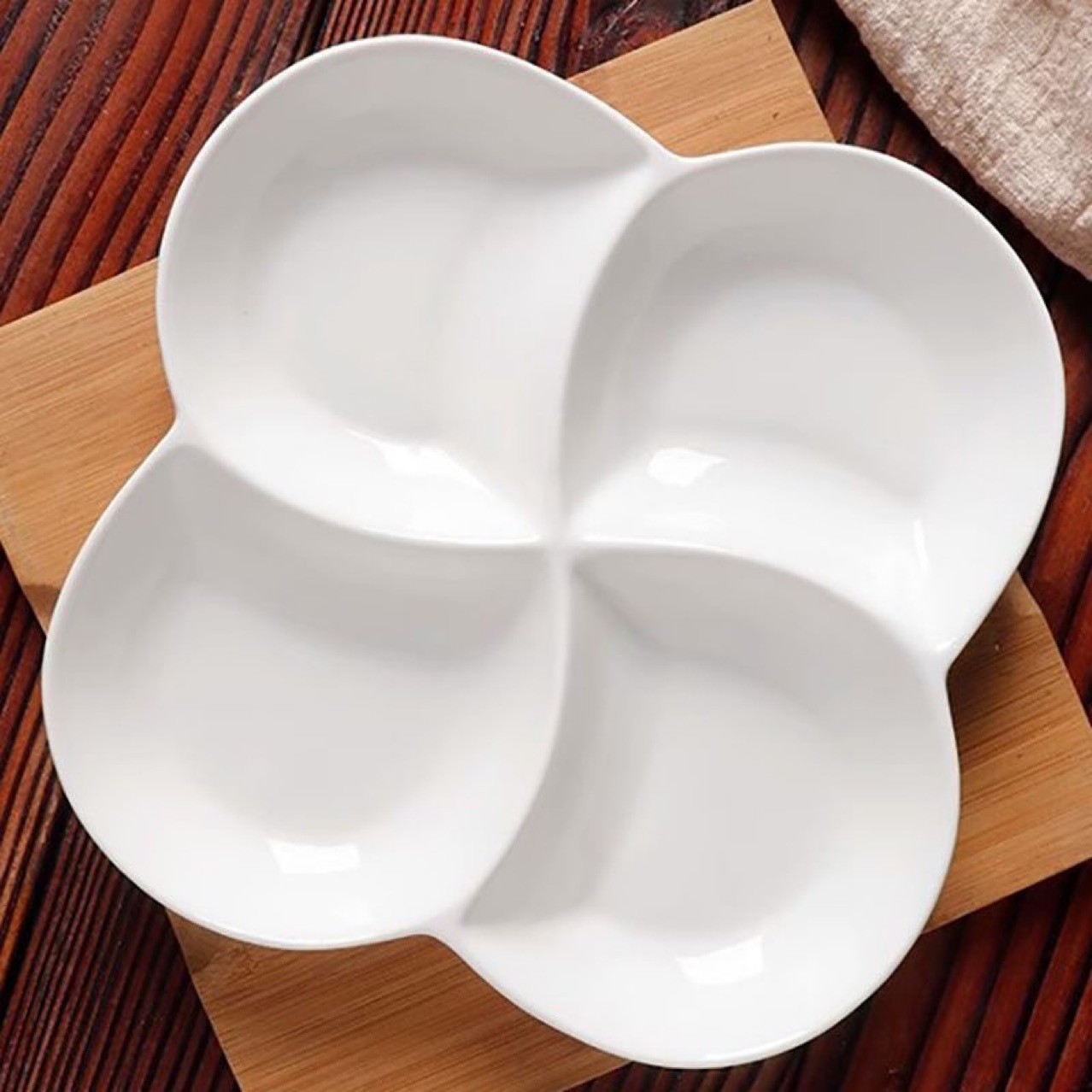 칸막이가 있는 순백색 세라믹 디너 플레이트, 창의적인 플래터, 아침 식사, 4칸 건과일, 과일, 지방 감량, 가정용 식기, 스낵스토어 가기