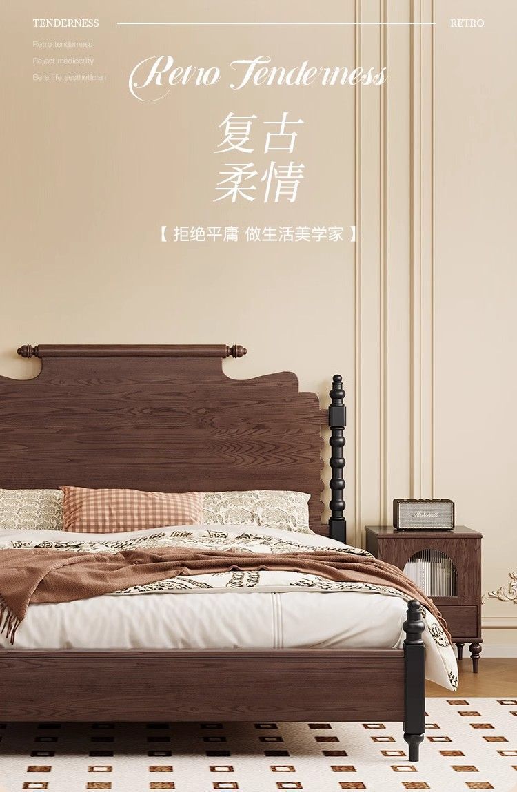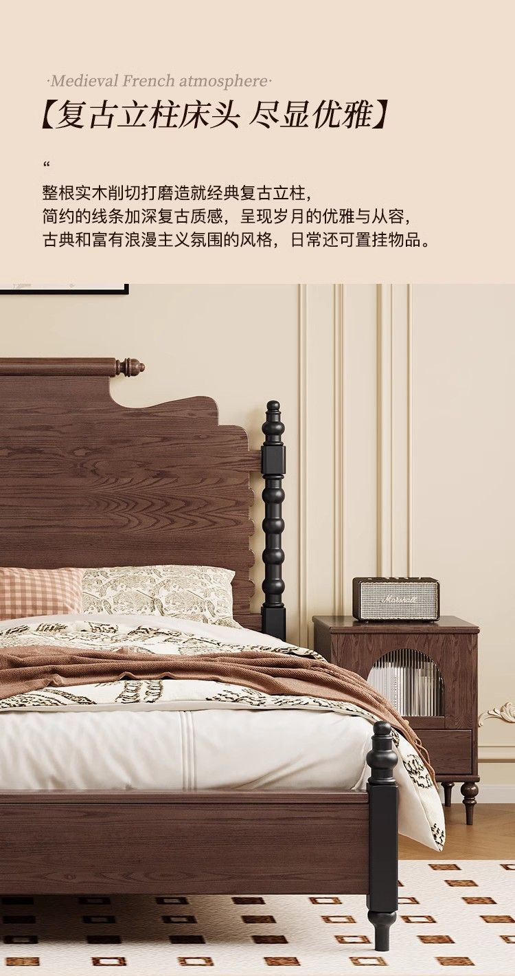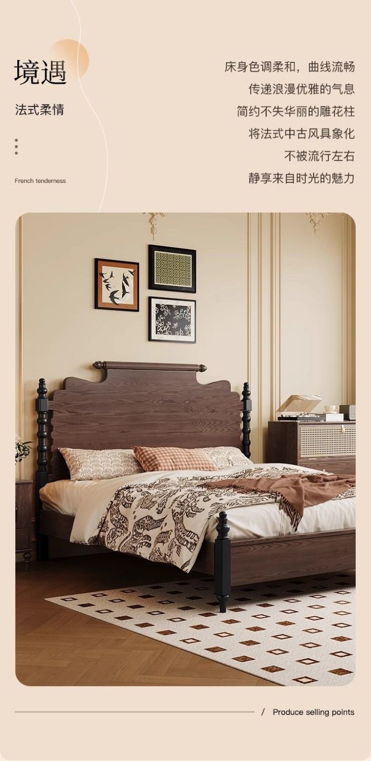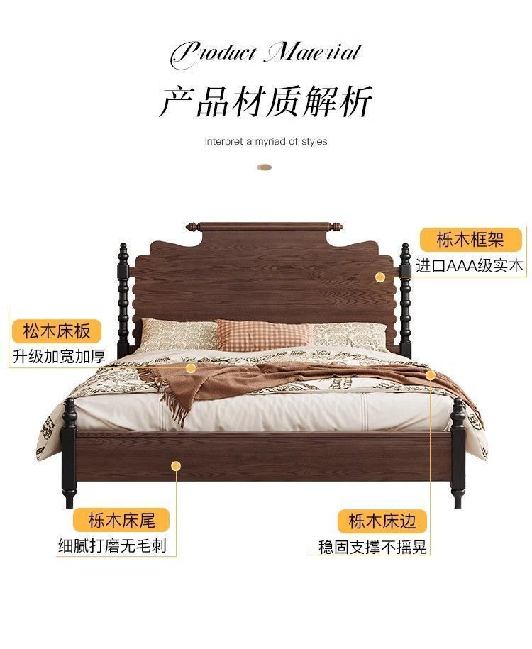 중세풍 원목 침대 모던 1.8 마스터 침실 더블 침대 1. 작은 아파트 5 심플한 고대 스타일 미국식 웨딩 침대 프렌치 레트로스토어 가기