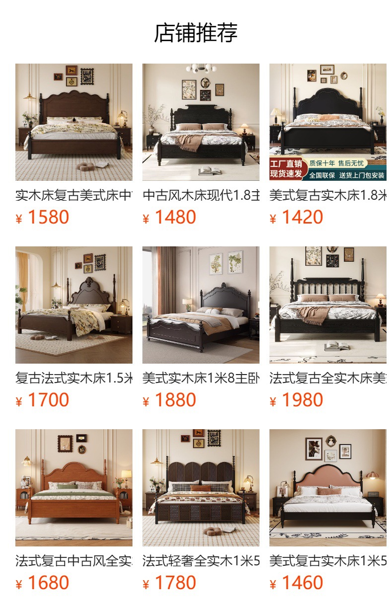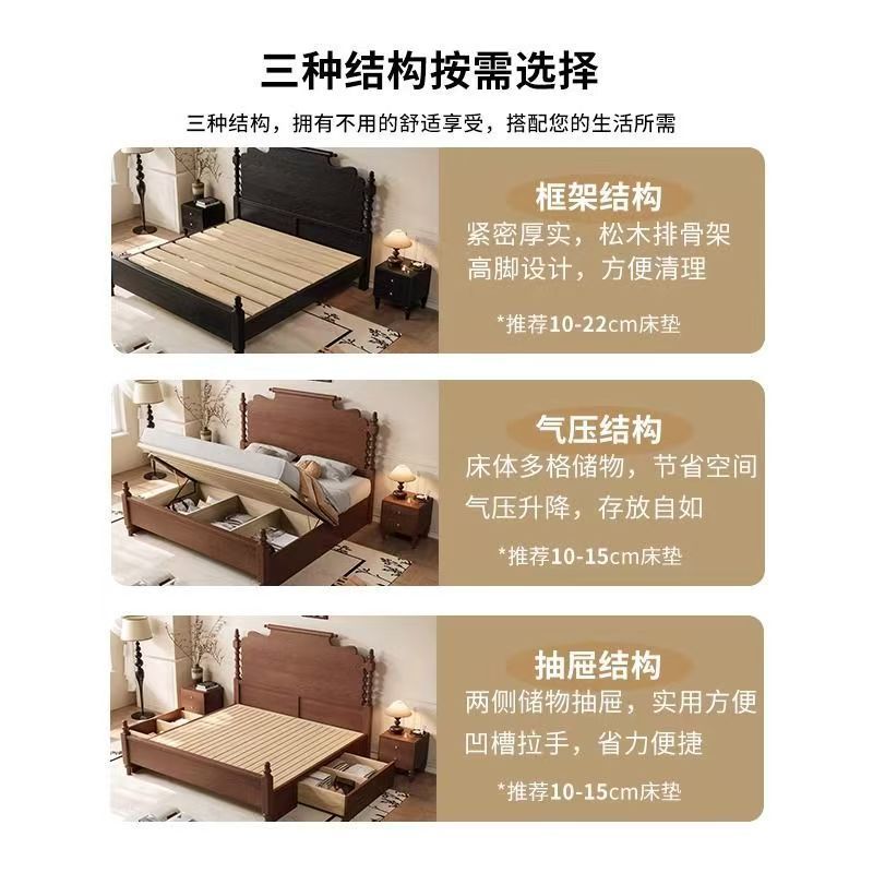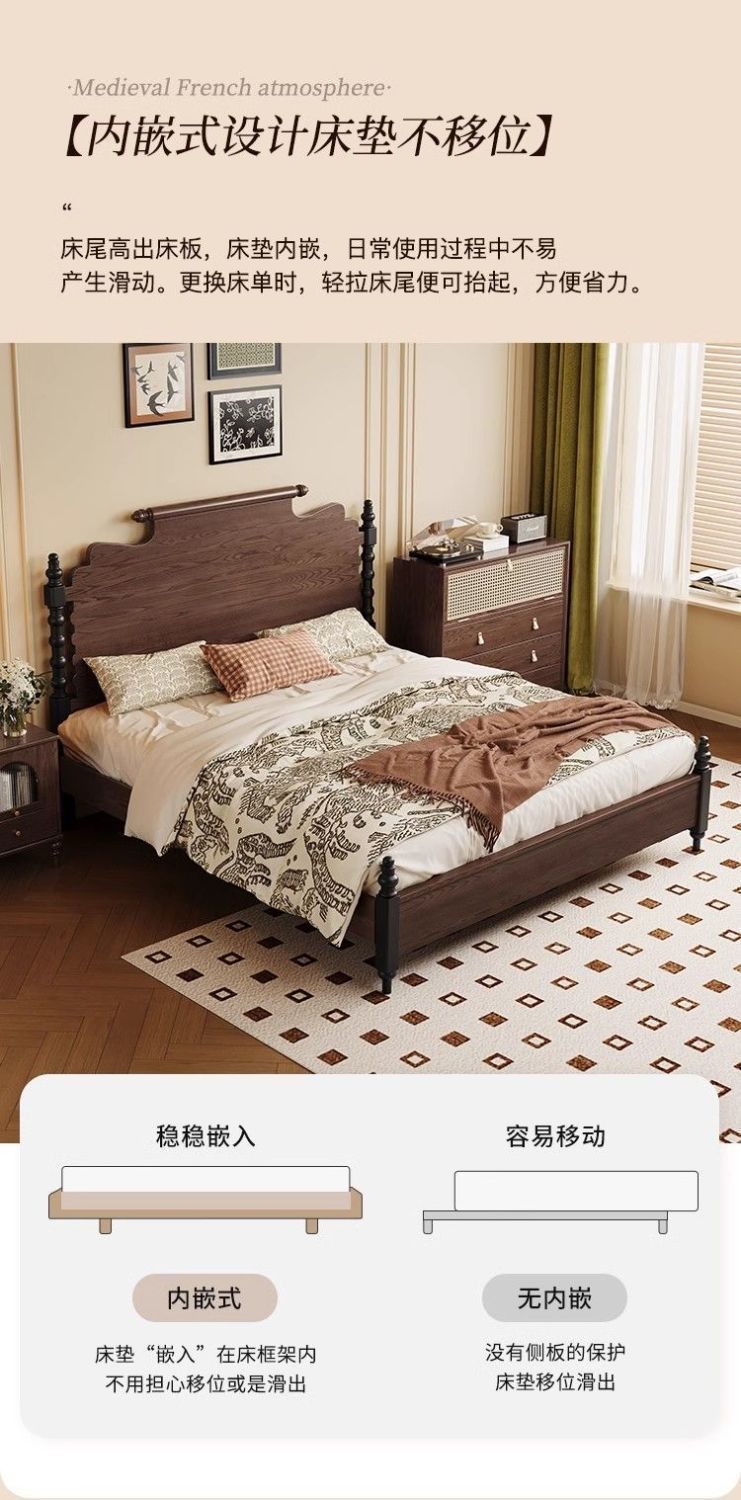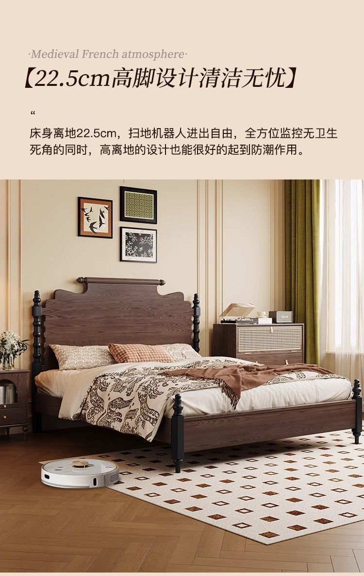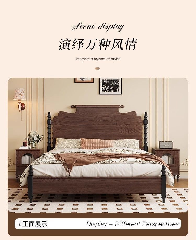 중세풍 원목 침대 모던 1.8 마스터 침실 더블 침대 1. 작은 아파트 5 심플한 고대 스타일 미국식 웨딩 침대 프렌치 레트로스토어 가기