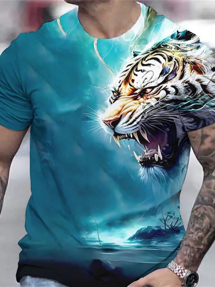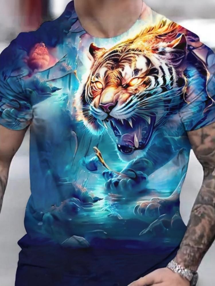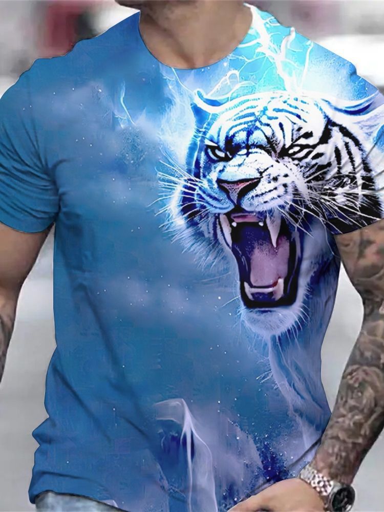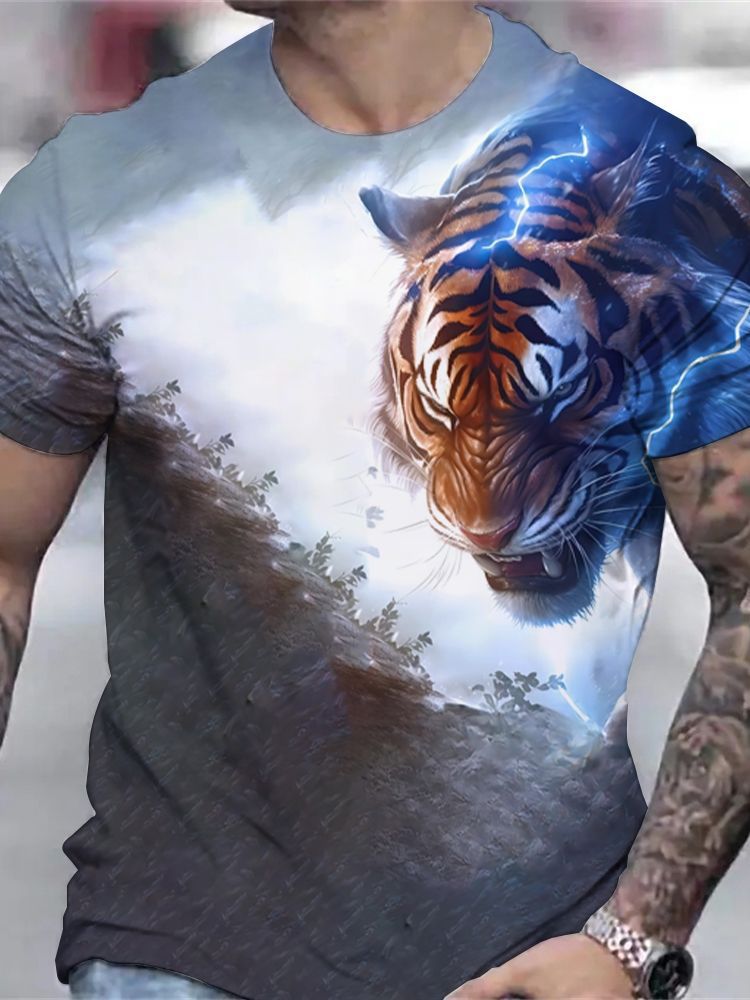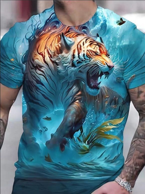 국경 간 핫 판매 OzonTK Shopee 독립 스테이션 3D 프린트 남성 캐주얼 루즈 반팔 티셔츠 드롭 배송스토어 가기