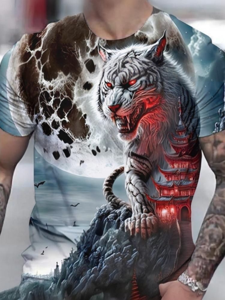 국경 간 핫 판매 OzonTK Shopee 독립 스테이션 3D 프린트 남성 캐주얼 루즈 반팔 티셔츠 드롭 배송