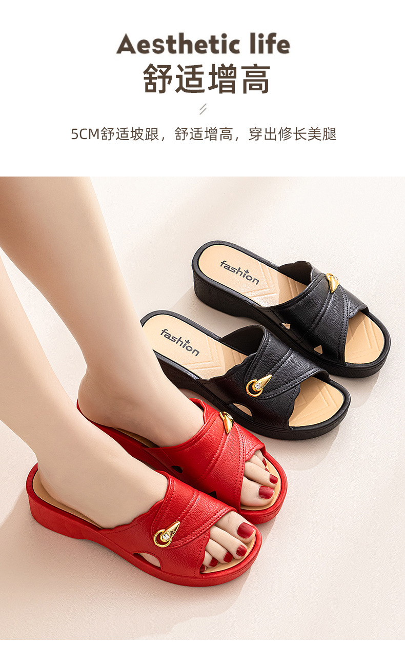여성용 여름 미끄럼 방지 웨지힐 슬리퍼, 내마모성 두꺼운 밑창 2025 새로운 스타일, 집에서 신는 슬리퍼, 엄마 신발스토어 가기