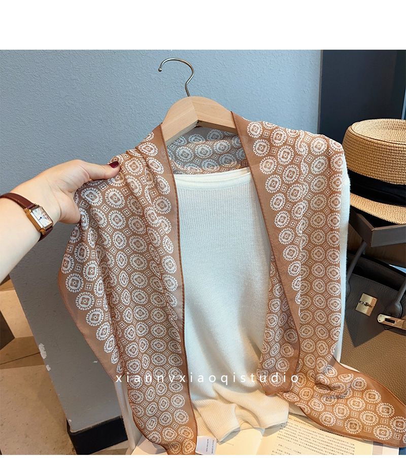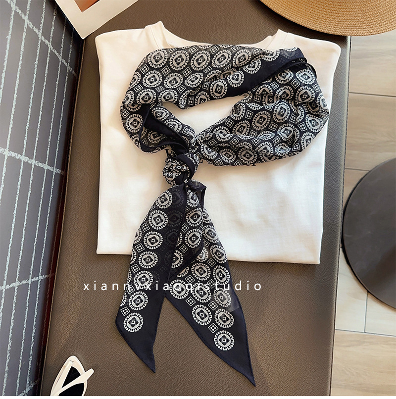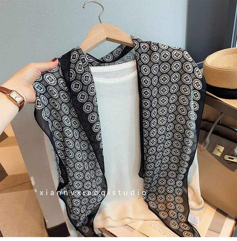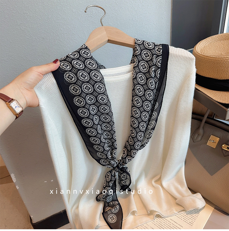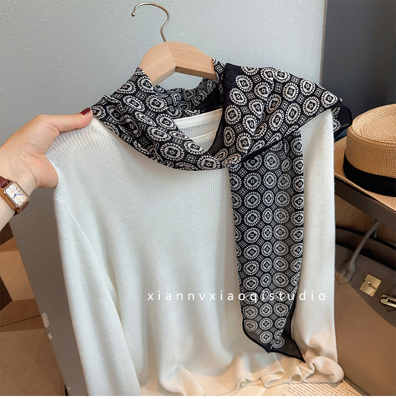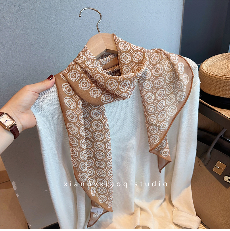 여름에 에어컨이 있는 방에서 목을 보호하는 여성용 세련된 기하학적 긴 스카프, 벨트가 달린 얇은 작은 숄 스카프