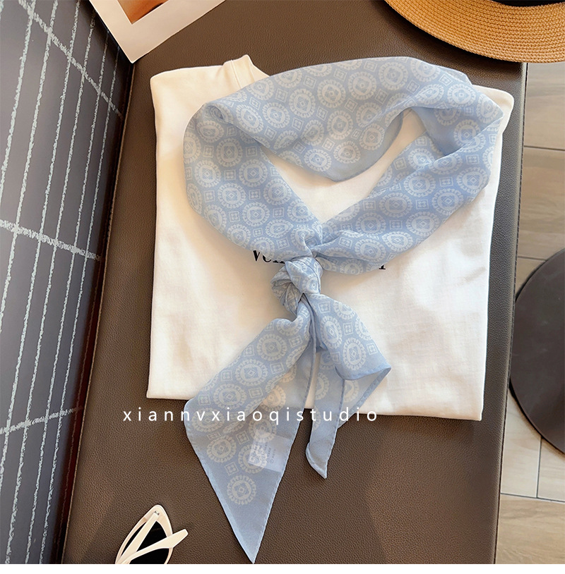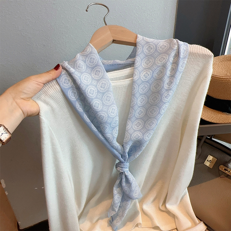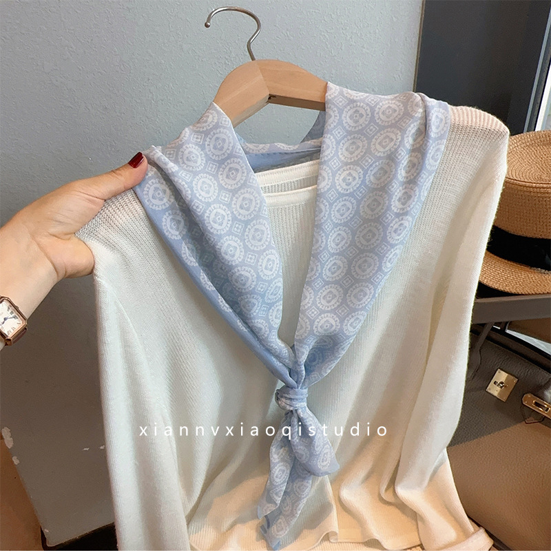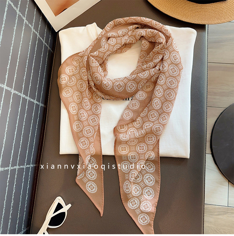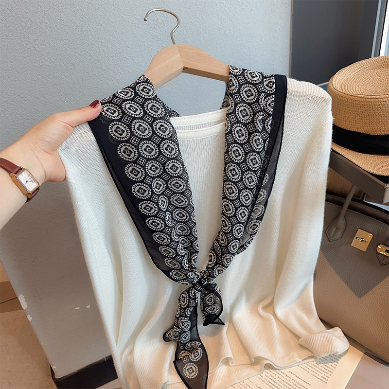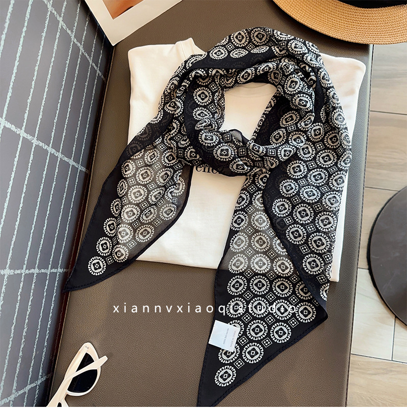 여름에 에어컨이 있는 방에서 목을 보호하는 여성용 세련된 기하학적 긴 스카프, 벨트가 달린 얇은 작은 숄 스카프