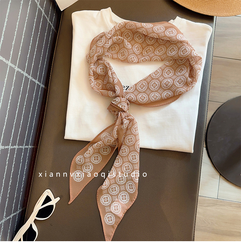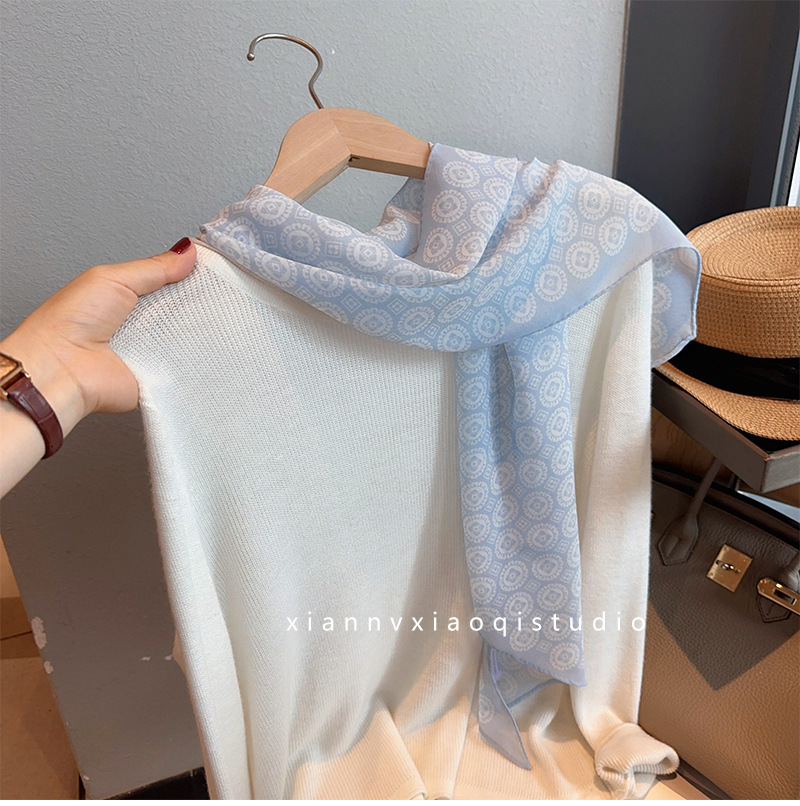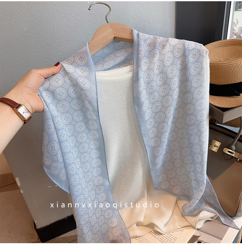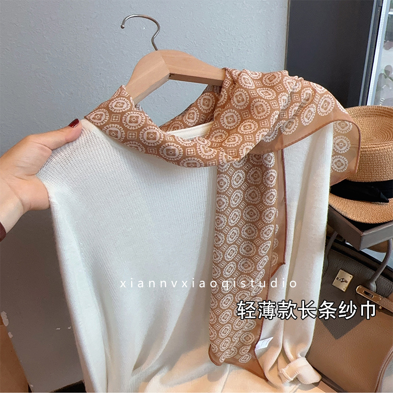 여름에 에어컨이 있는 방에서 목을 보호하는 여성용 세련된 기하학적 긴 스카프, 벨트가 달린 얇은 작은 숄 스카프스토어 가기