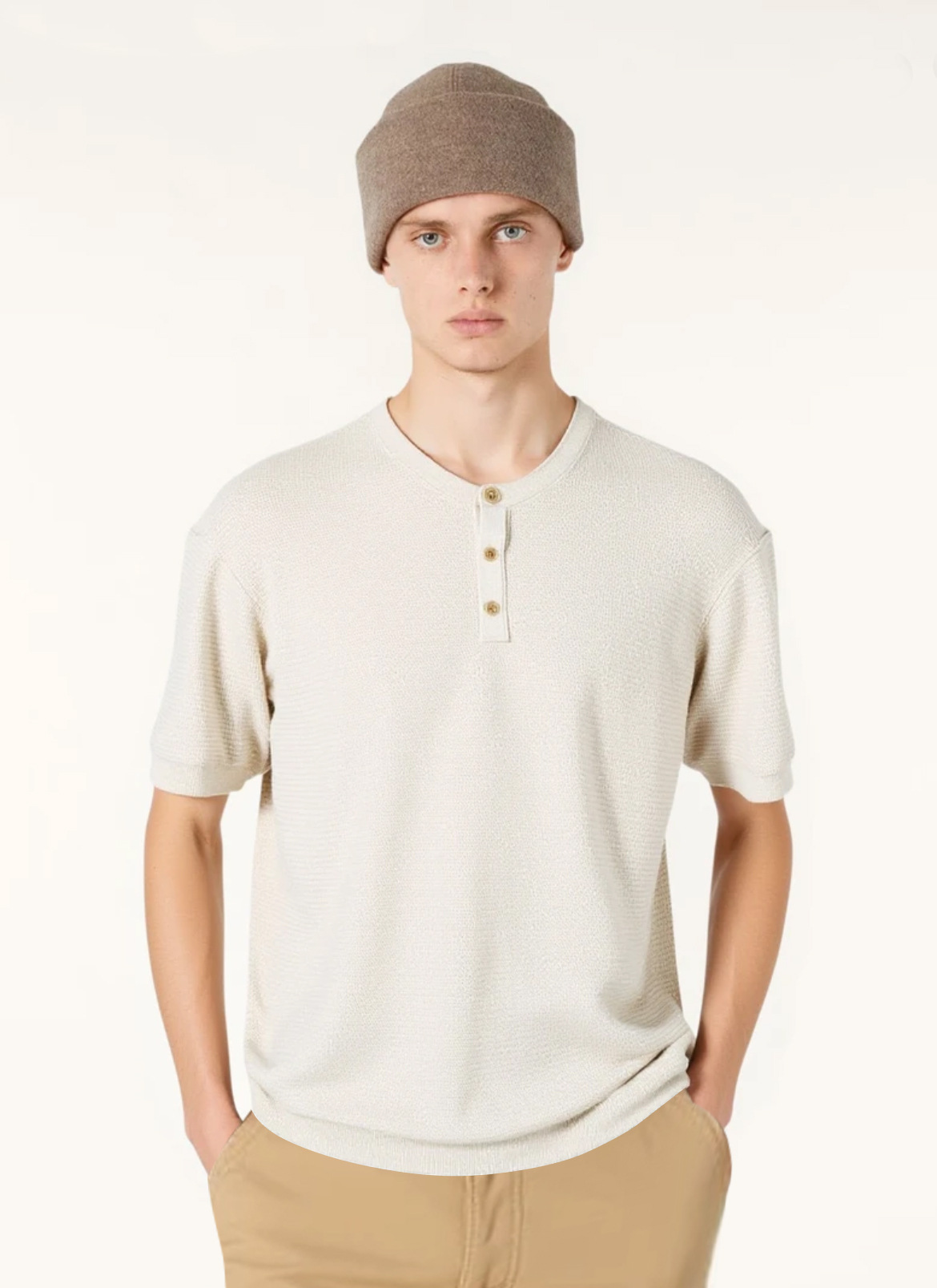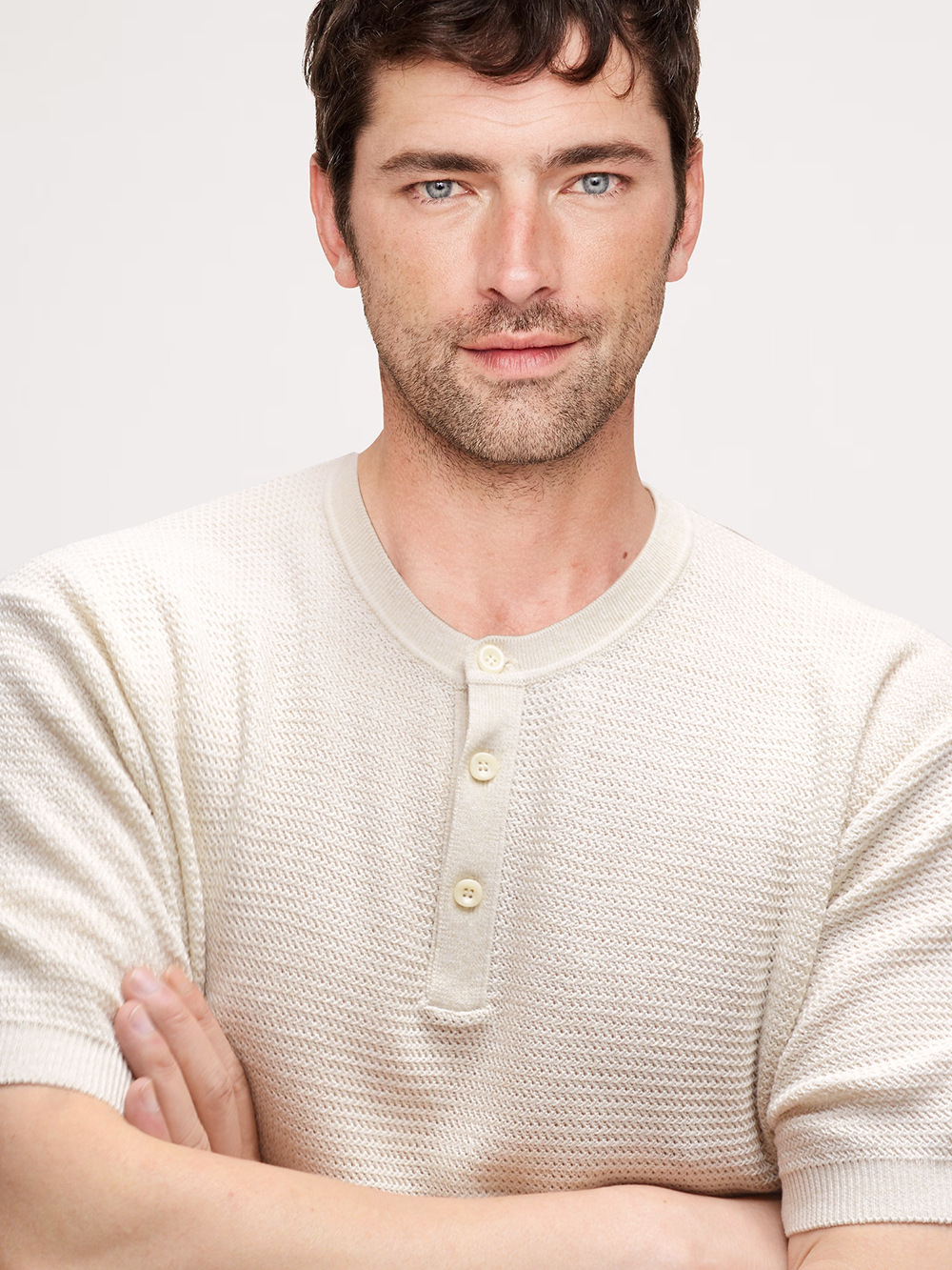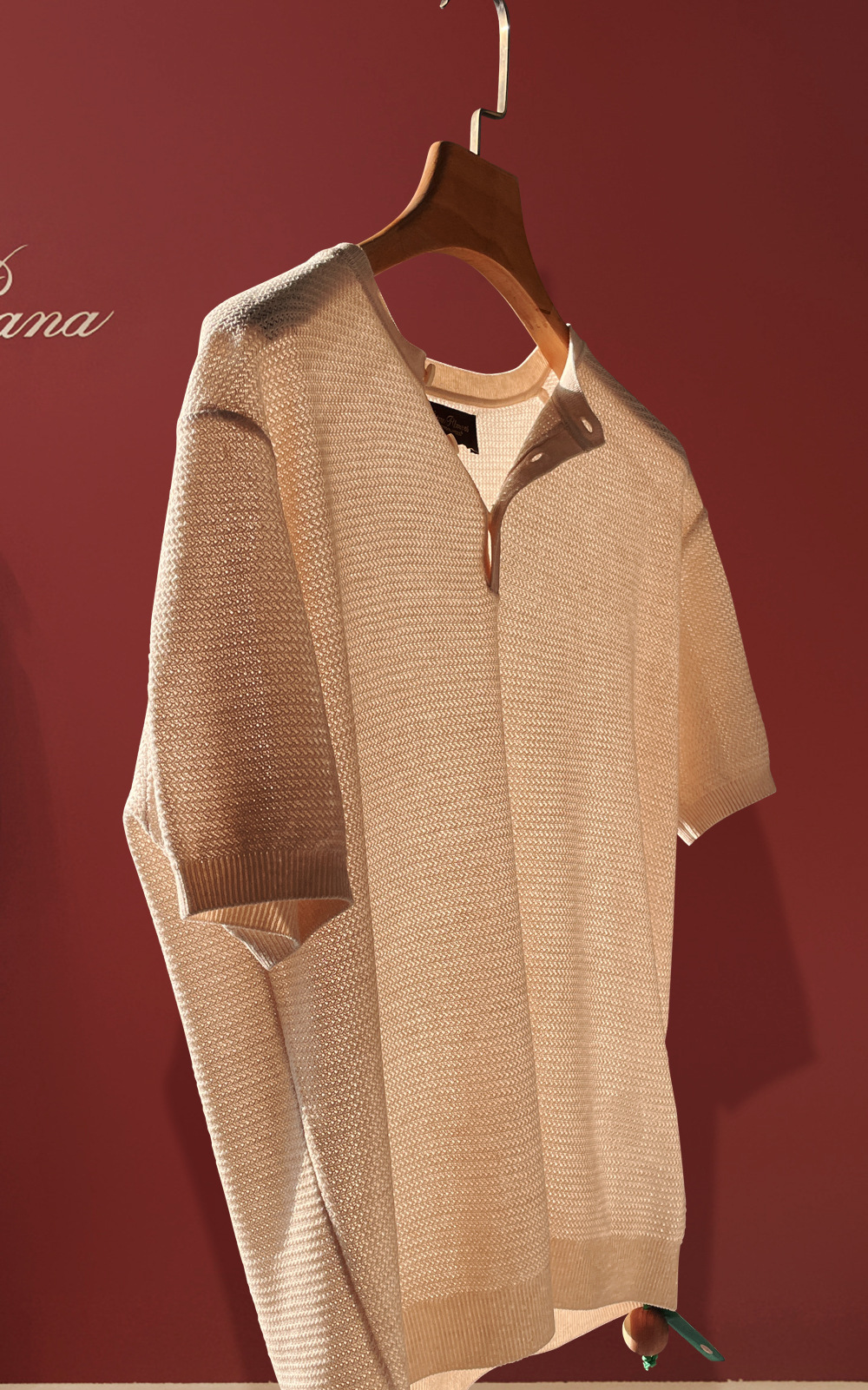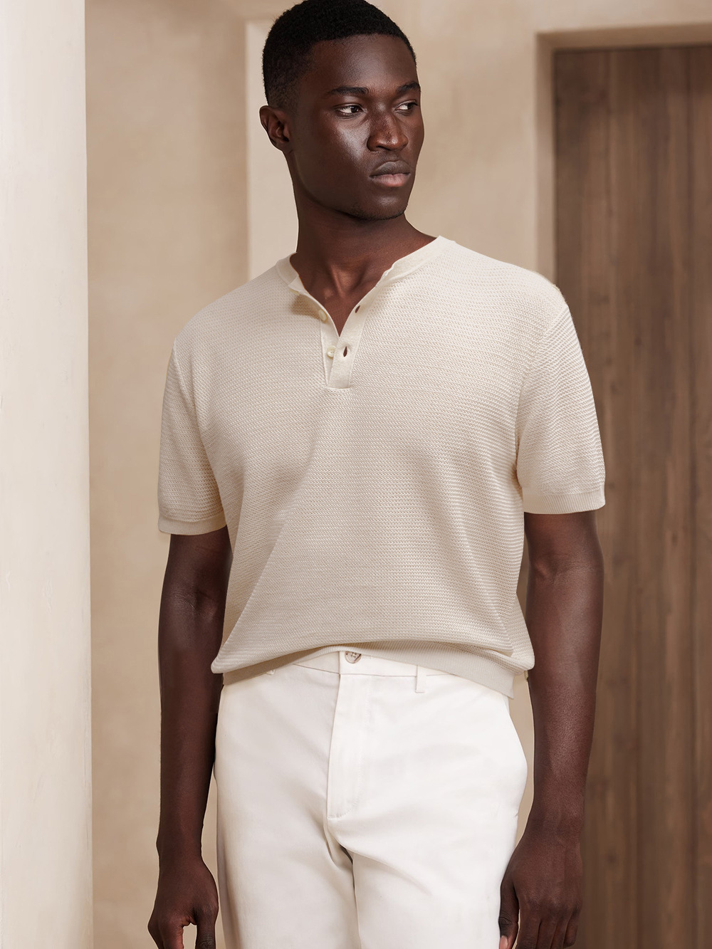 亨利领亚麻提花T恤!慵懒风的亚麻质感轻奢品