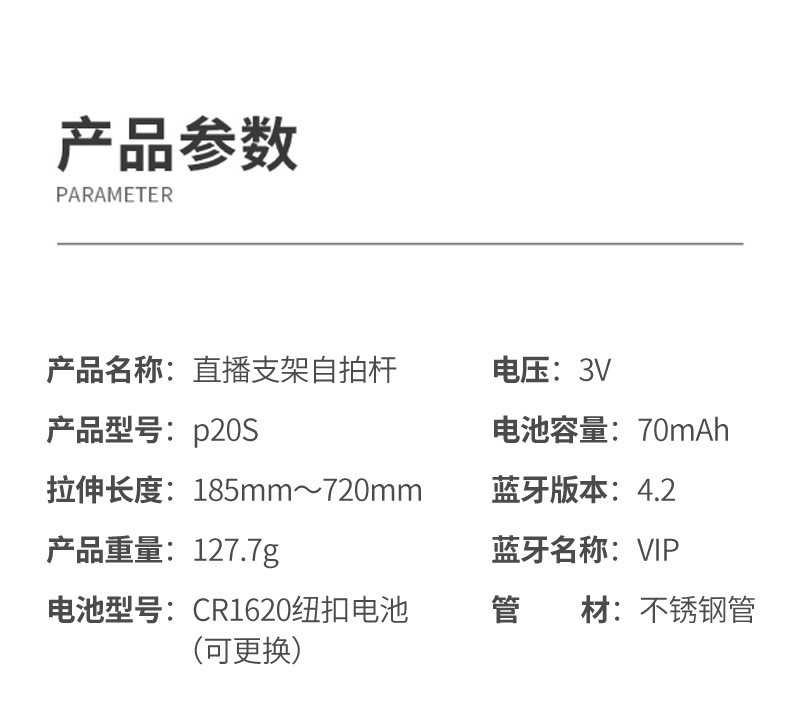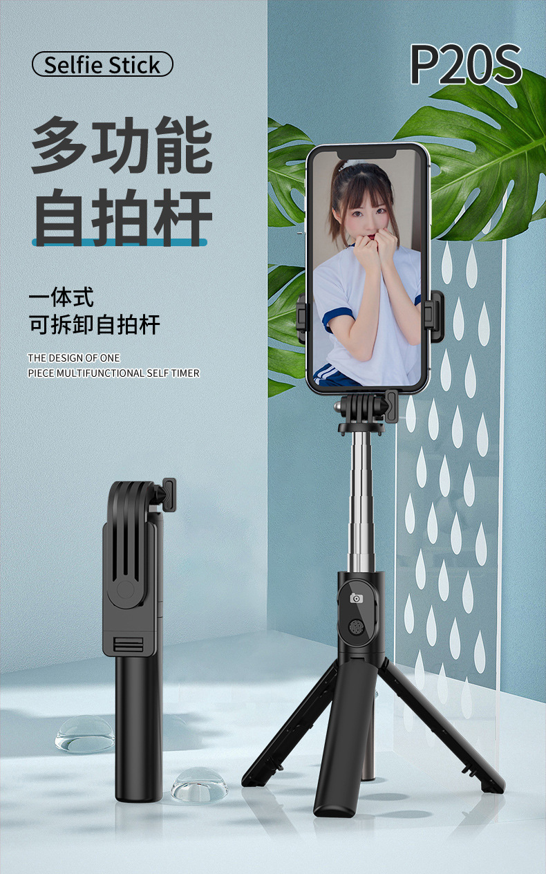 새로운 올인원 라이브 방송 다기능 셀카 스틱 P20S 블루투스 무선 원격 제어 휴대용 야외 여행 스탠드