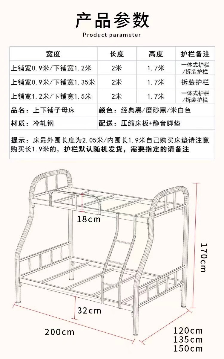 • 클래식 블랙 ❀ 상부 침대 폭 120cm, 하부 침대 폭 150cm/침대판 + 매트리스 포함