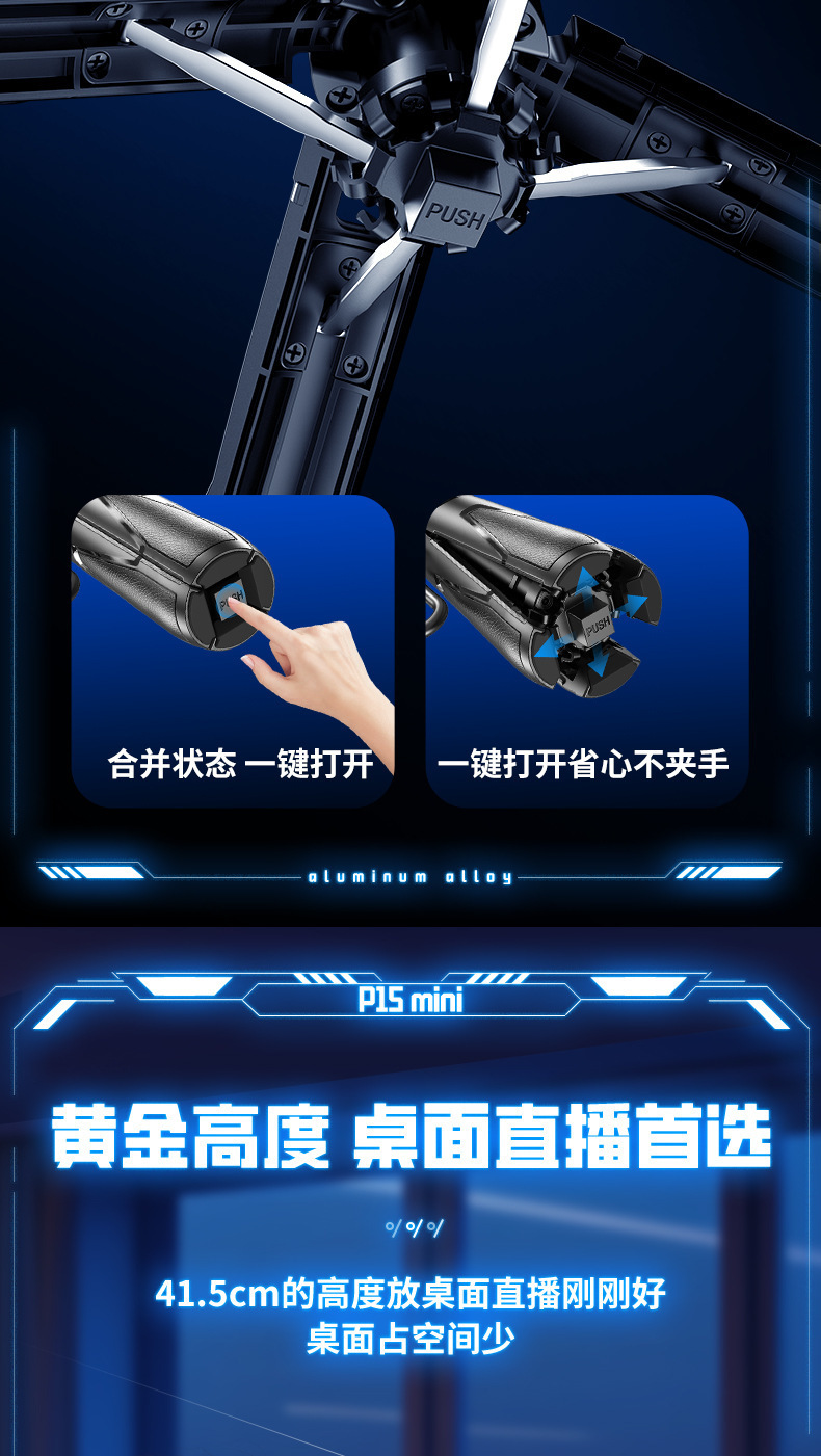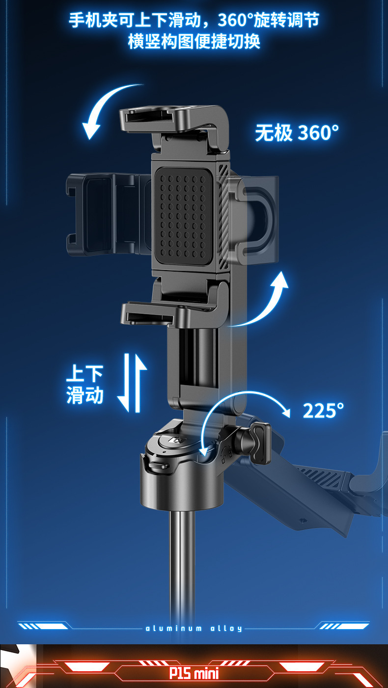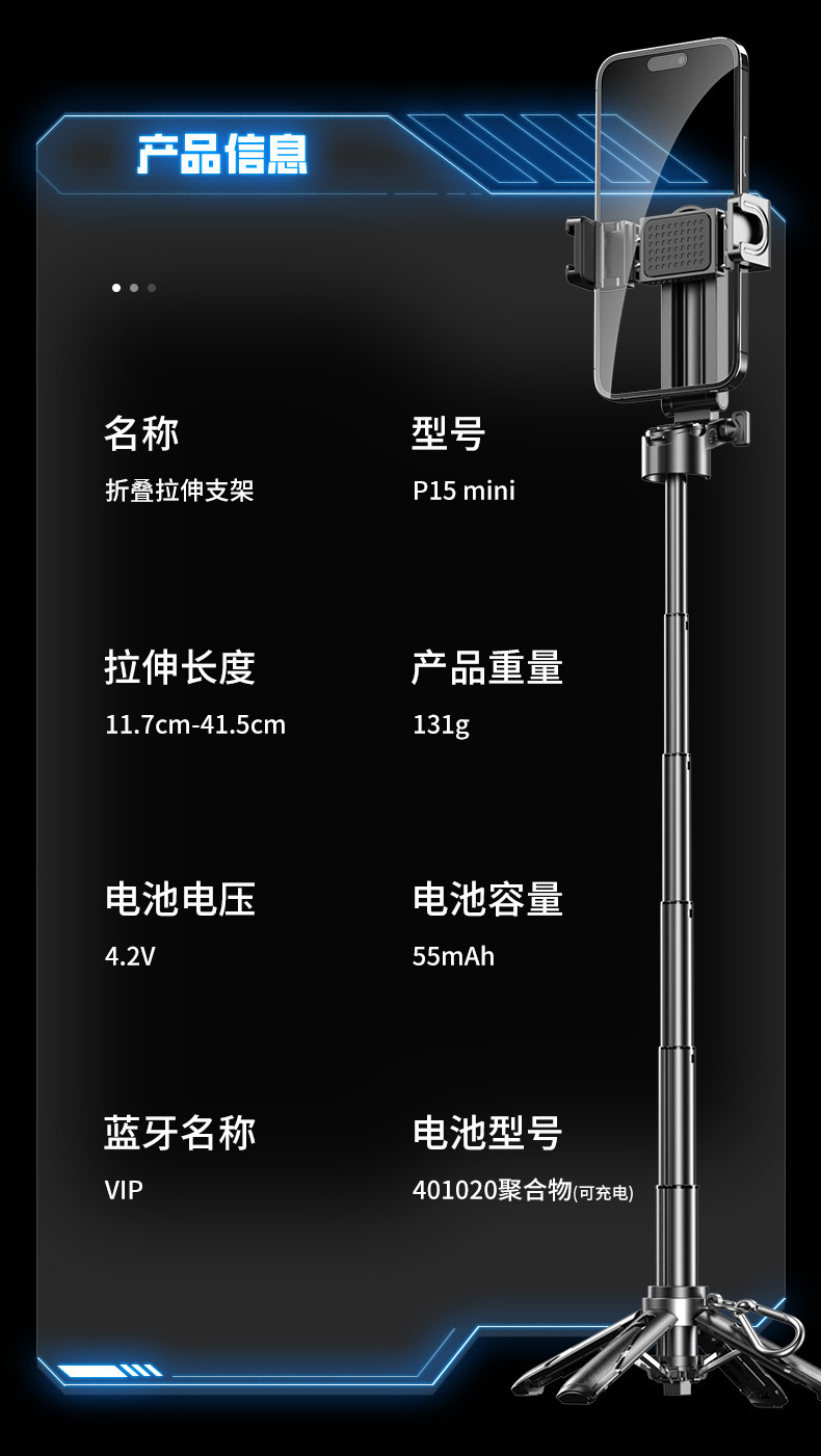 새로운 P15 미니 블루투스 셀카 스틱 텔레스코픽 스토리지 포켓 휴대용 여행 사진 촬영 보조 장치