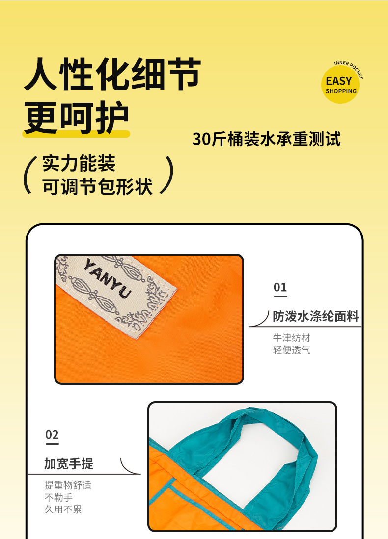 단색 접이식 쇼핑백 방수 수납 가방 휴대용 슈퍼마켓 장바구니 대용량 조임끈 친환경 핸드백스토어 가기