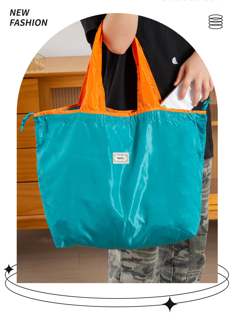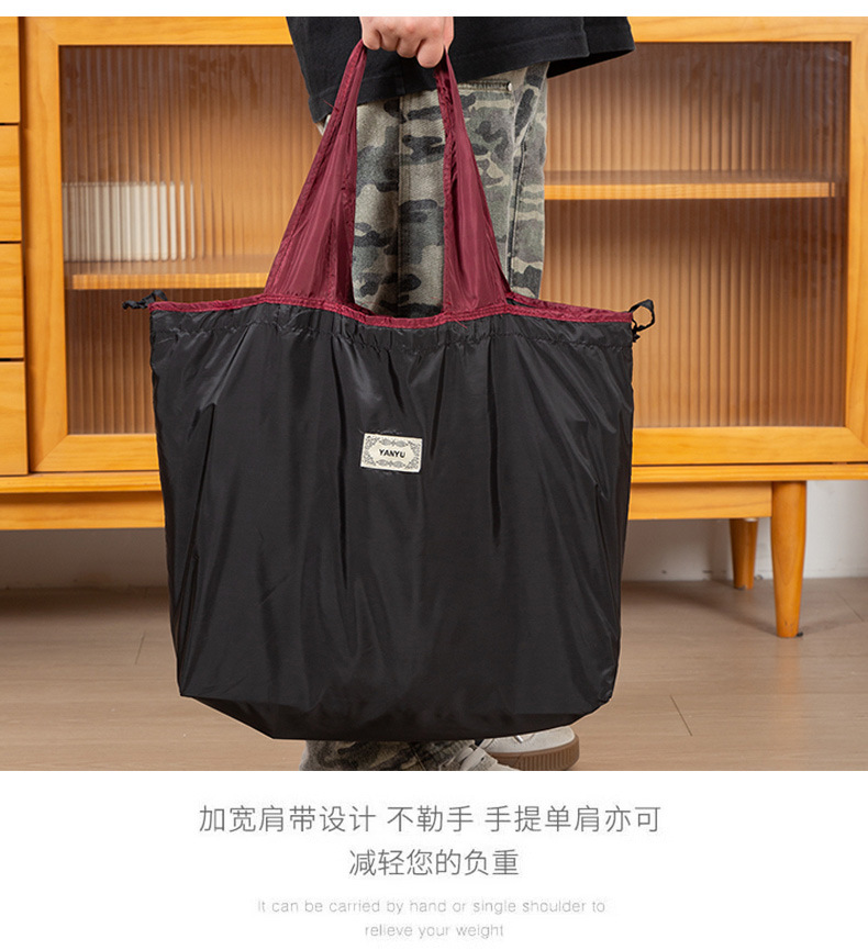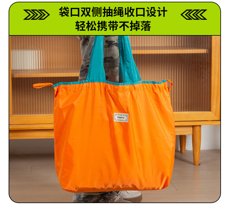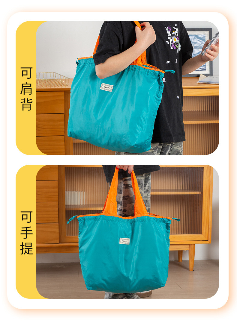 단색 접이식 쇼핑백 방수 수납 가방 휴대용 슈퍼마켓 장바구니 대용량 조임끈 친환경 핸드백